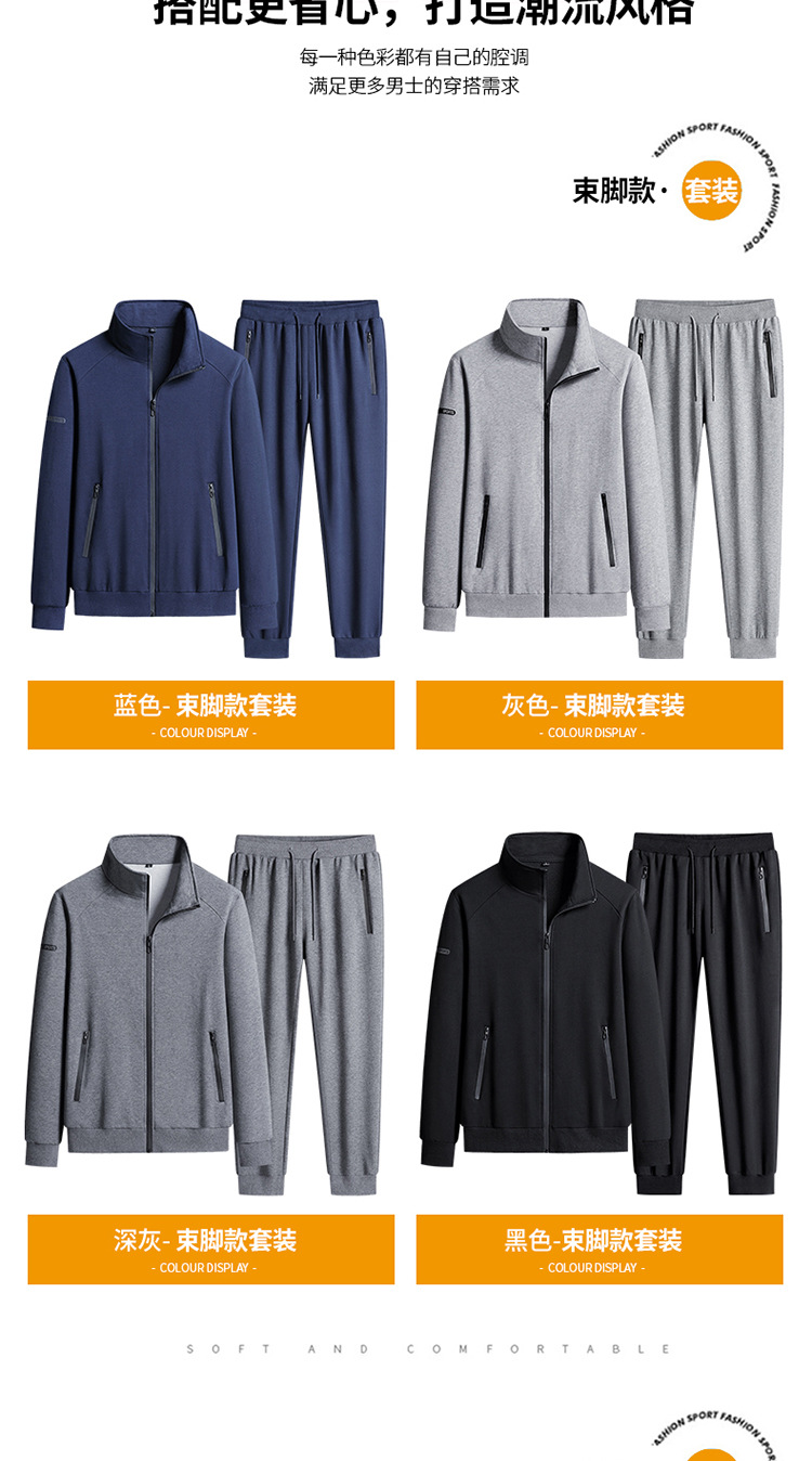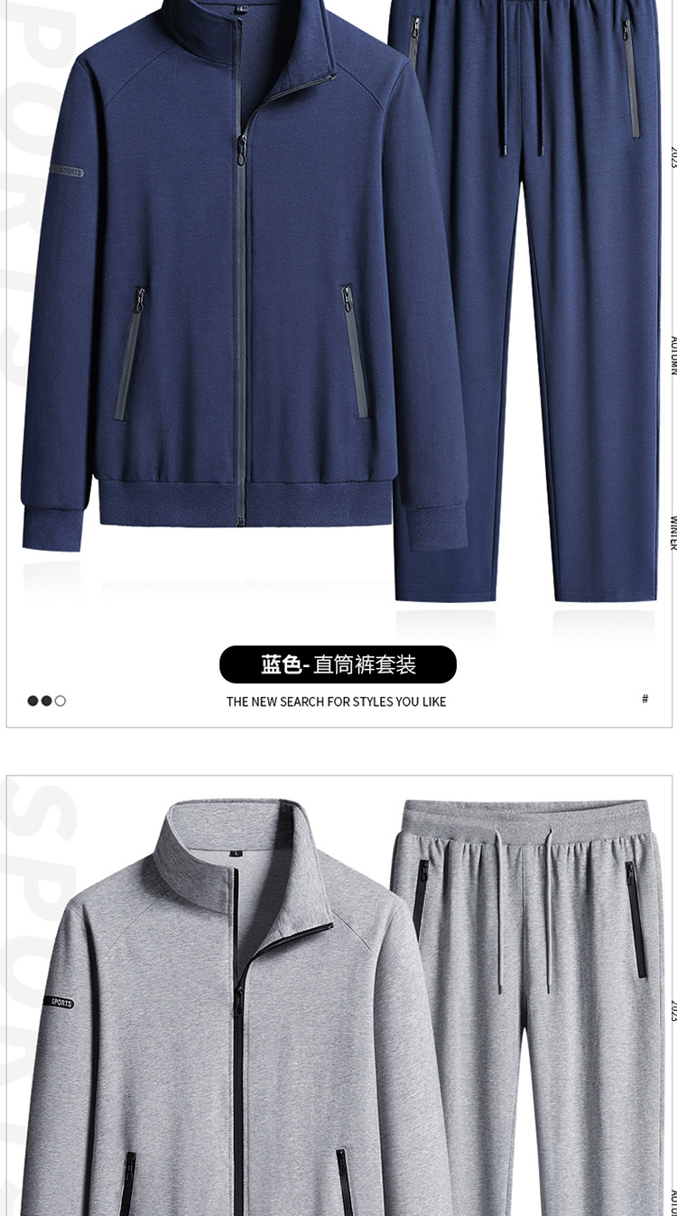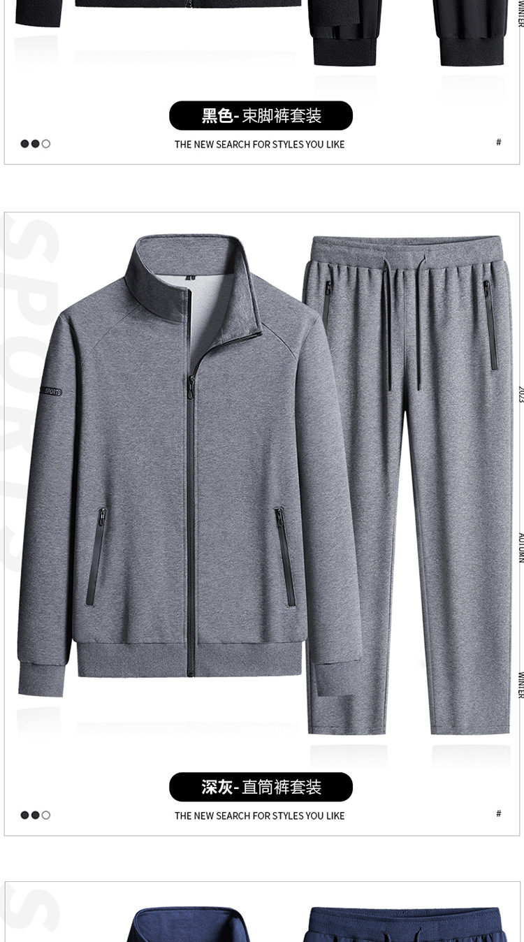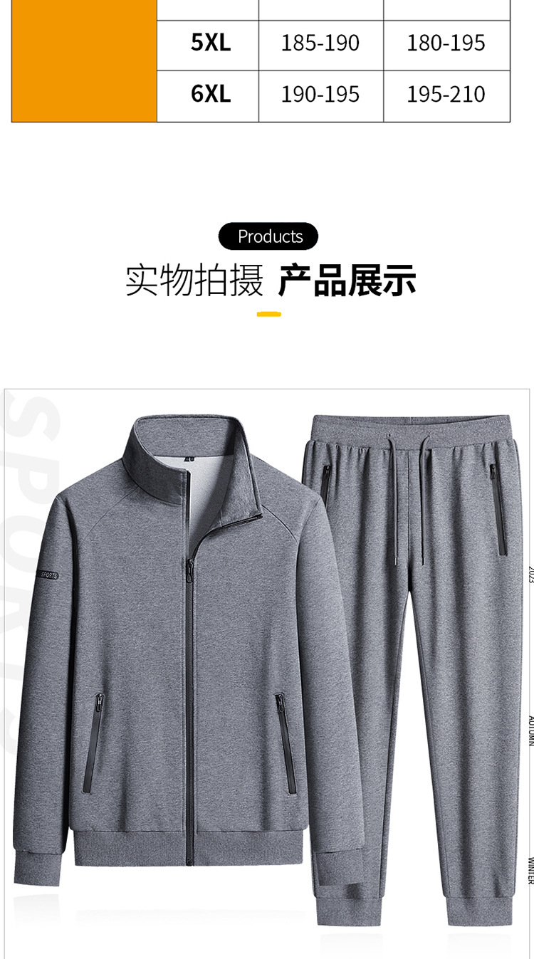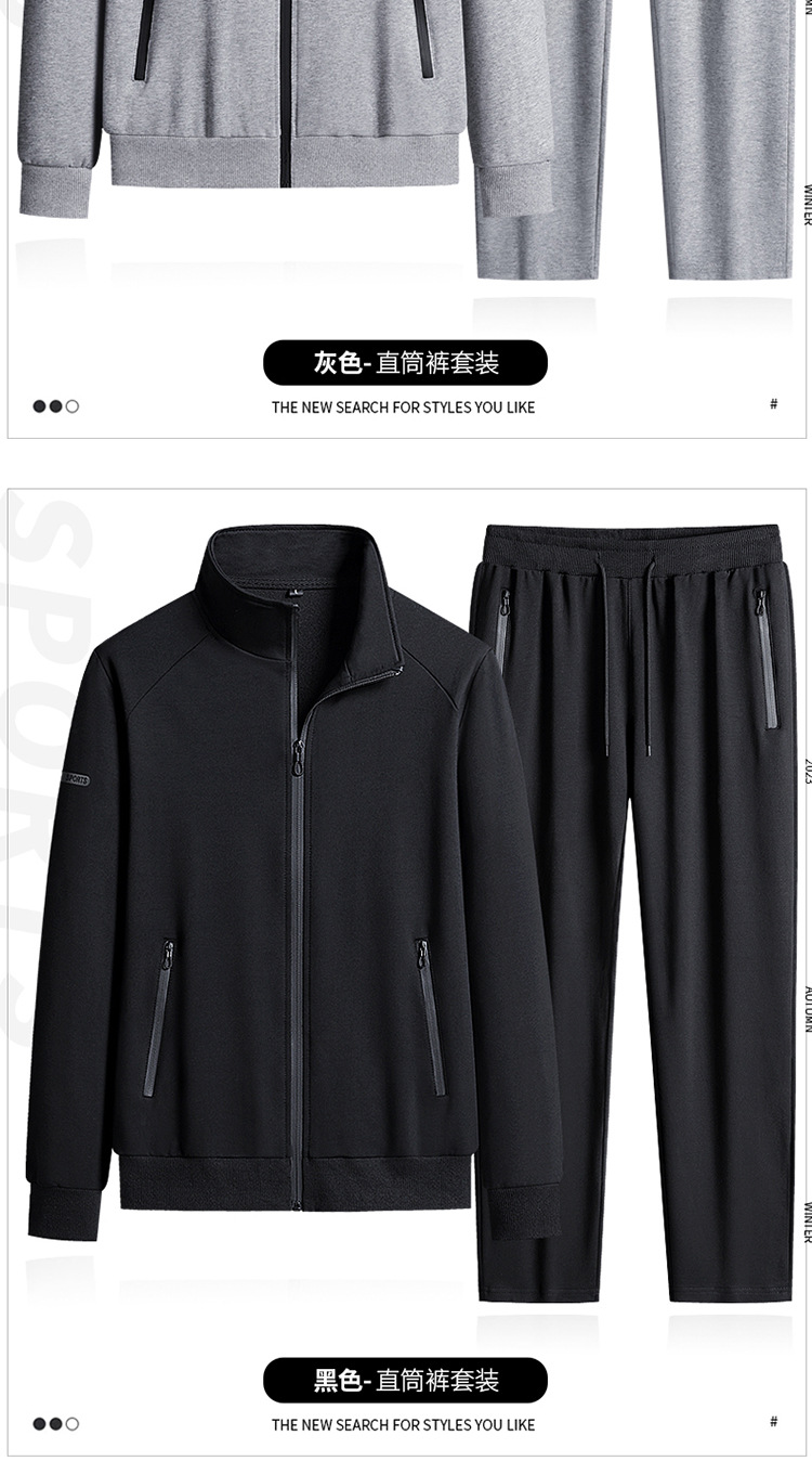 크로스보더 순면 스포츠 슈트 남성용 대형 루즈 캐주얼 슈트 스탠드 칼라 카디건 스웨트 셔츠 대외 무역 스포츠 스트레이트 팬츠스토어 가기