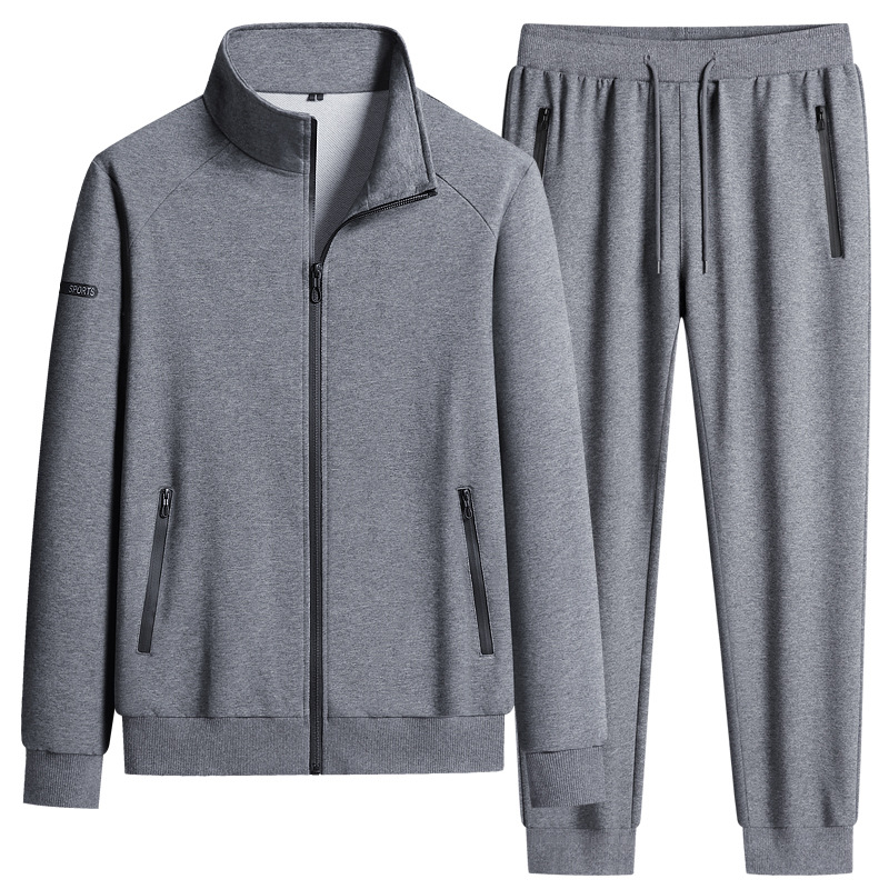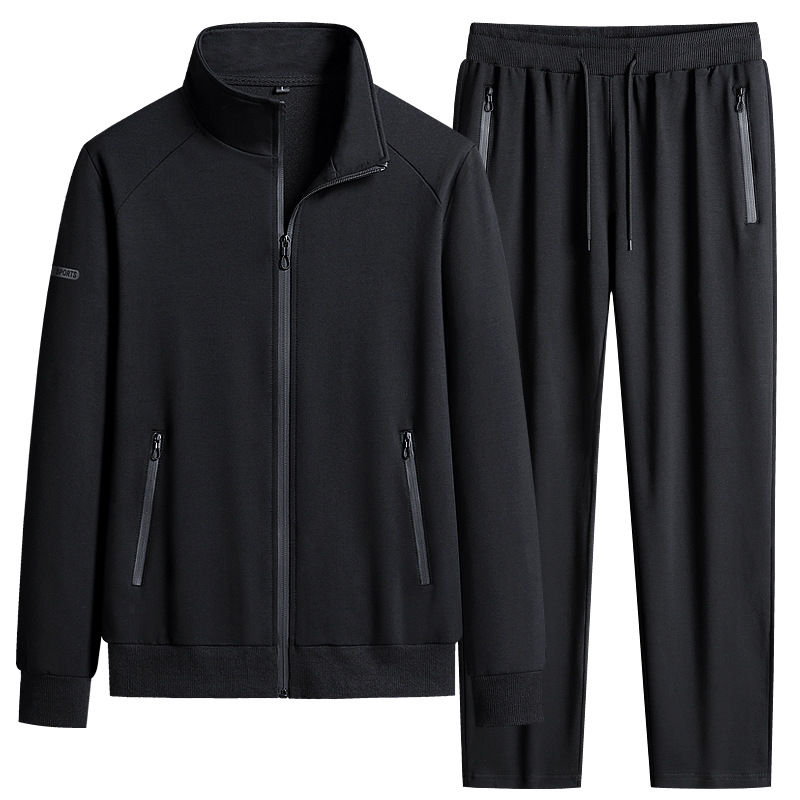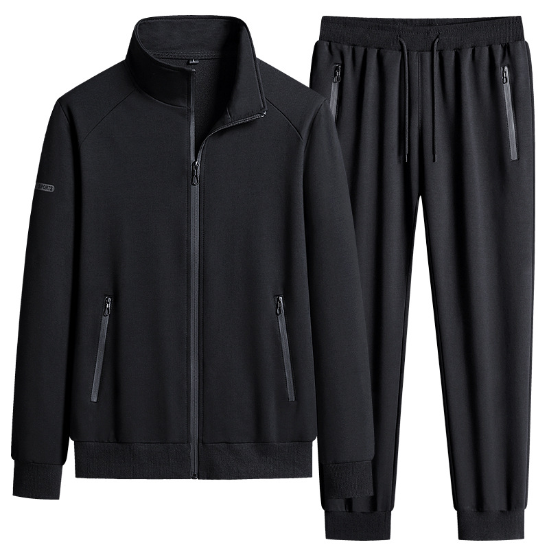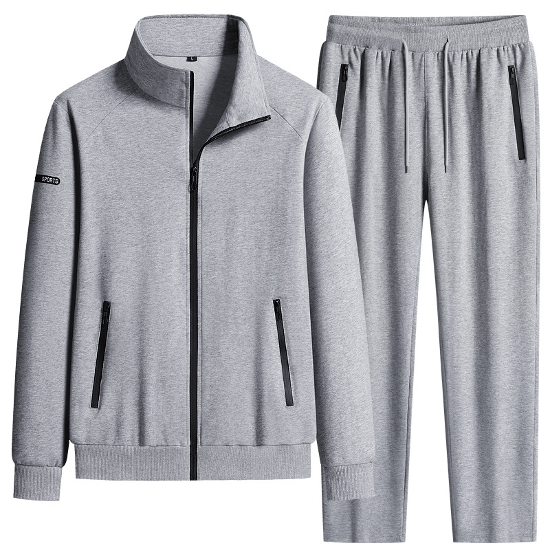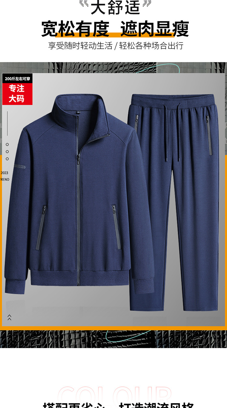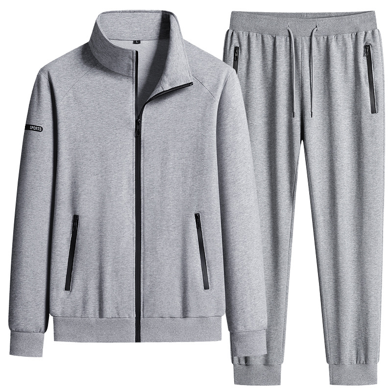 크로스보더 순면 스포츠 슈트 남성용 대형 루즈 캐주얼 슈트 스탠드 칼라 카디건 스웨트 셔츠 대외 무역 스포츠 스트레이트 팬츠스토어 가기