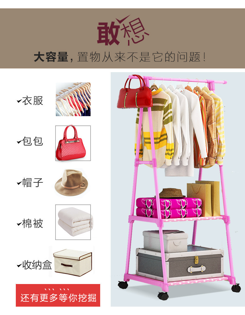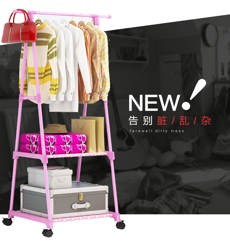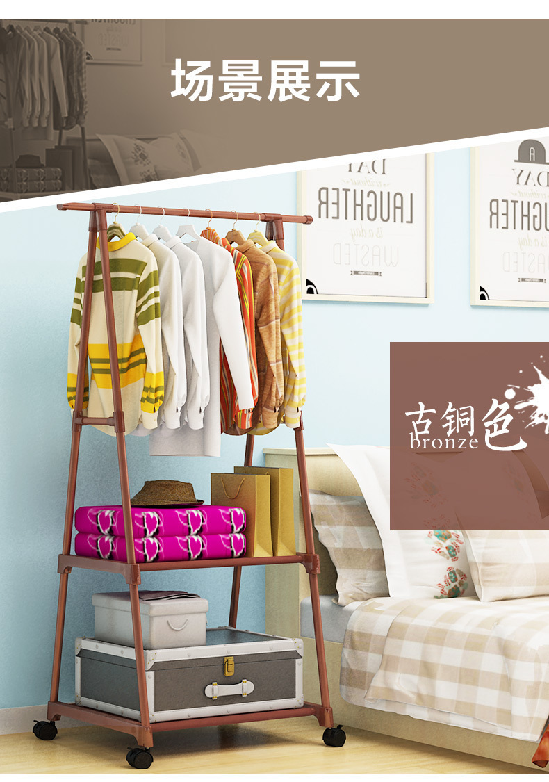 간단한 옷걸이, 바닥형 침실 코트 랙, 옷걸이, 옷 보관 랙, 이중 막대 보관 랙 캐비닛
