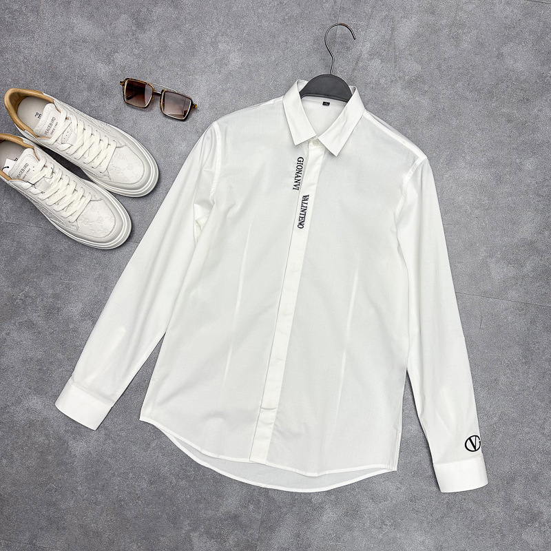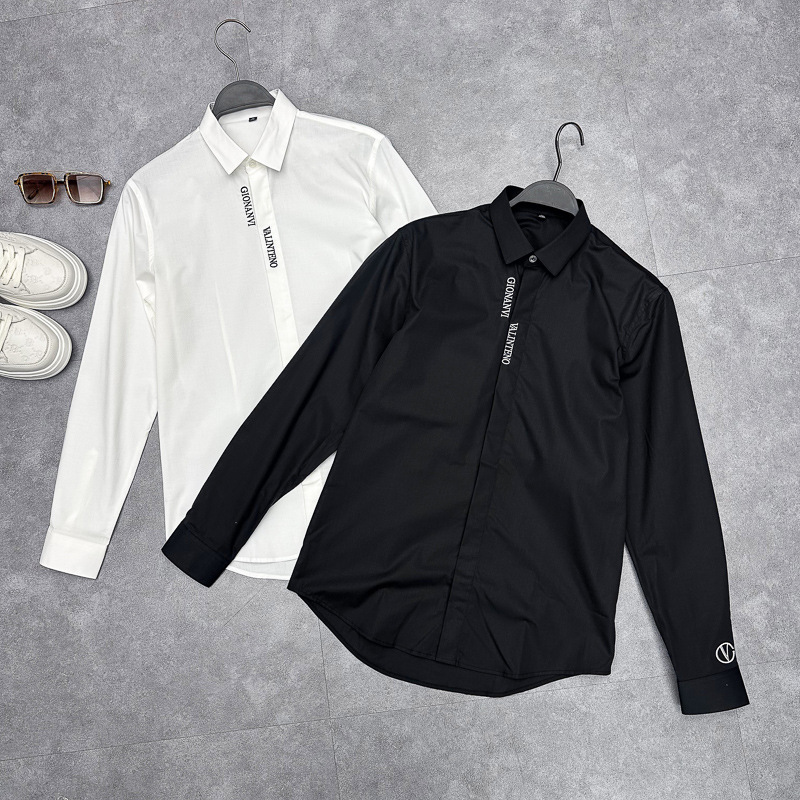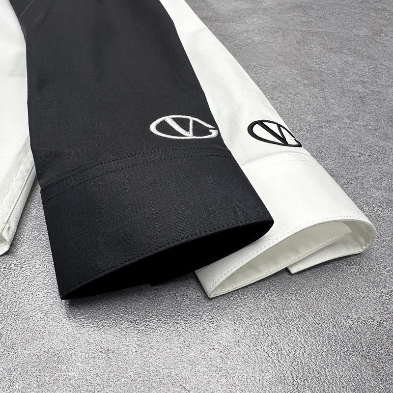 남성용 유럽 긴팔 셔츠 사업 슬림 핏 V 로고 자수 셔츠 흑백 간단한 셔츠 B1CAF1E95