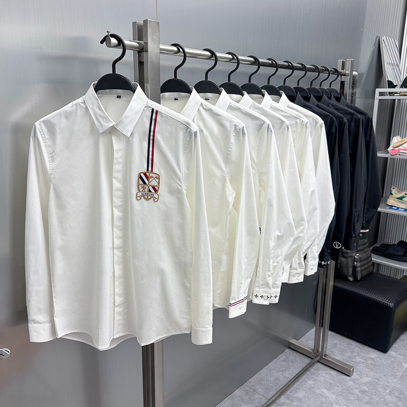 남성용 유럽 긴팔 셔츠 사업 슬림 핏 V 로고 자수 셔츠 흑백 간단한 셔츠 B1CAF1E95스토어 가기