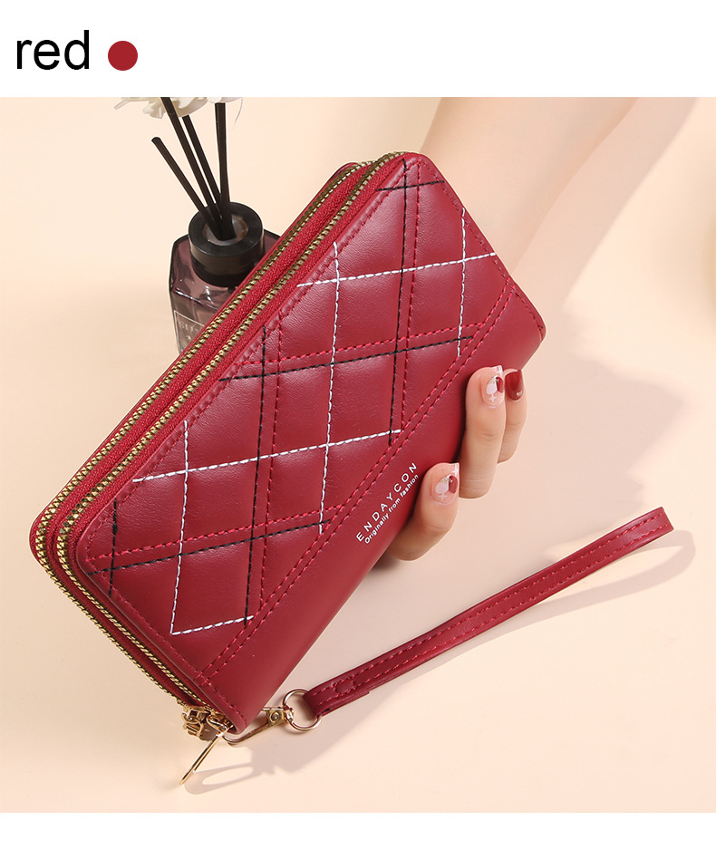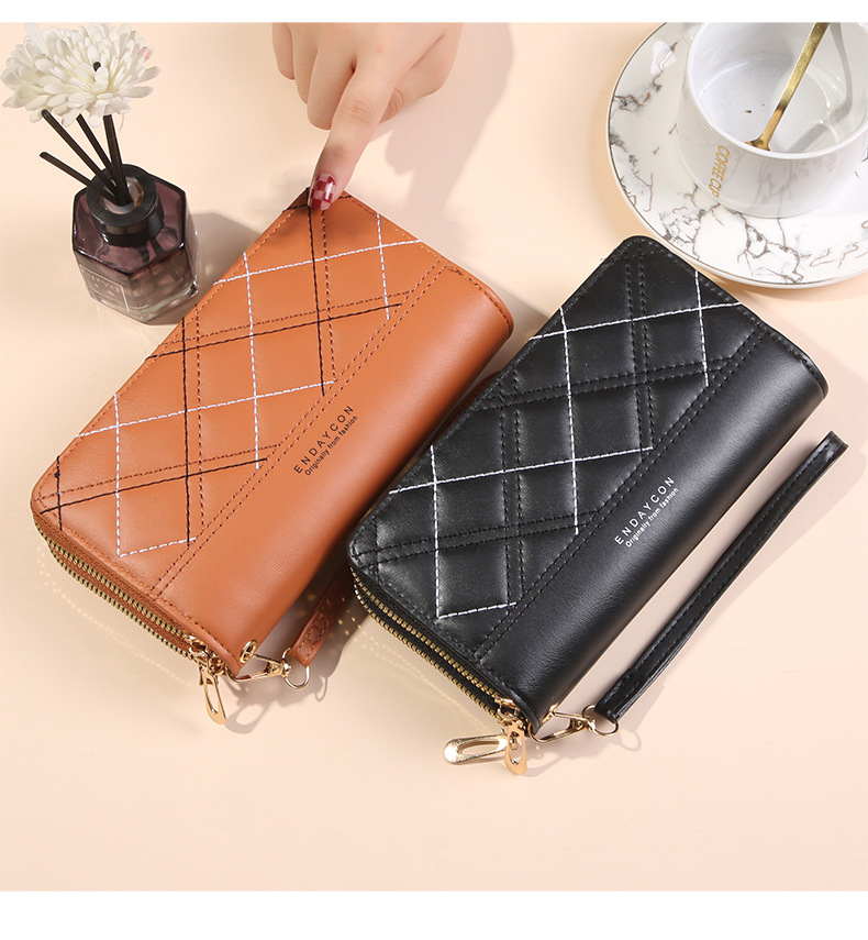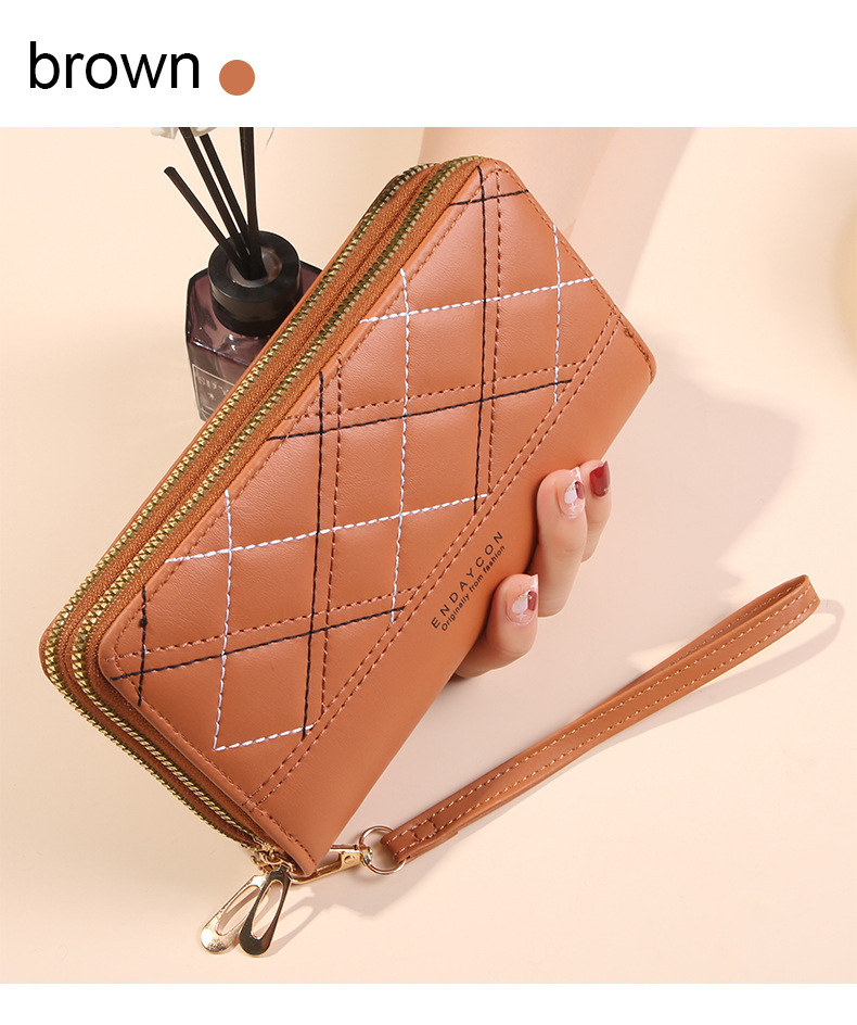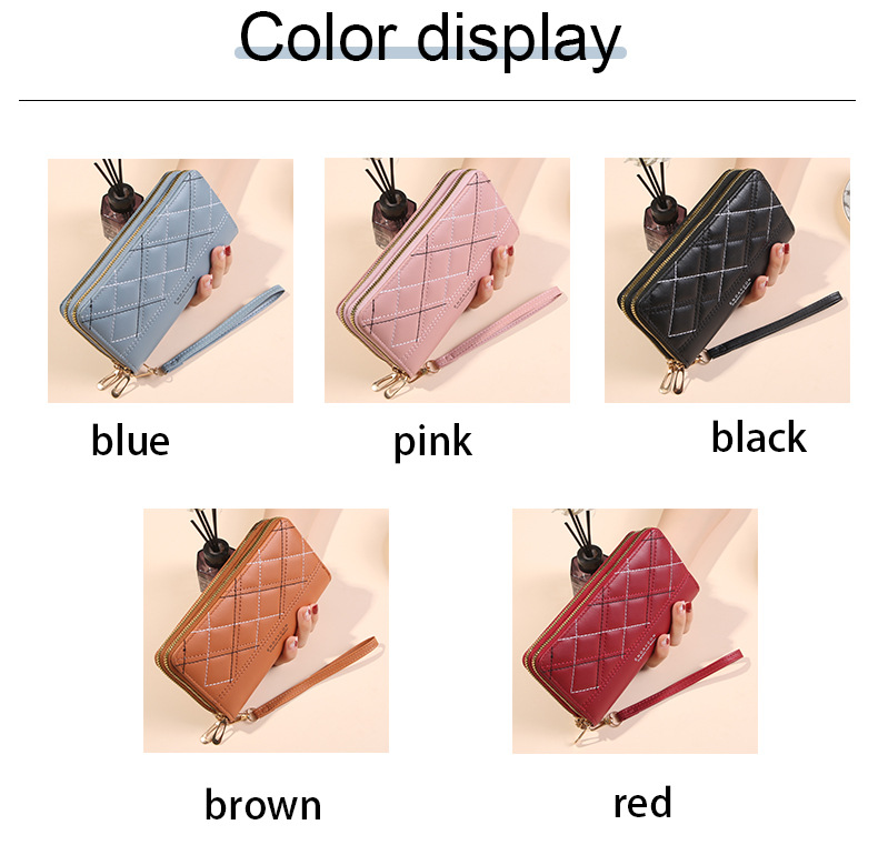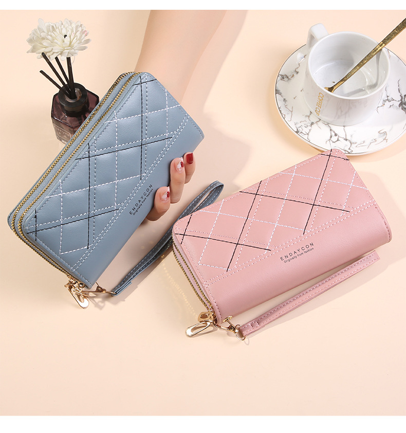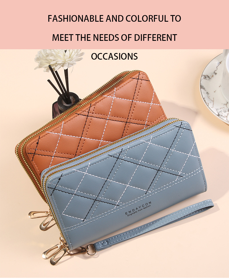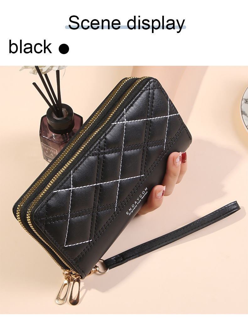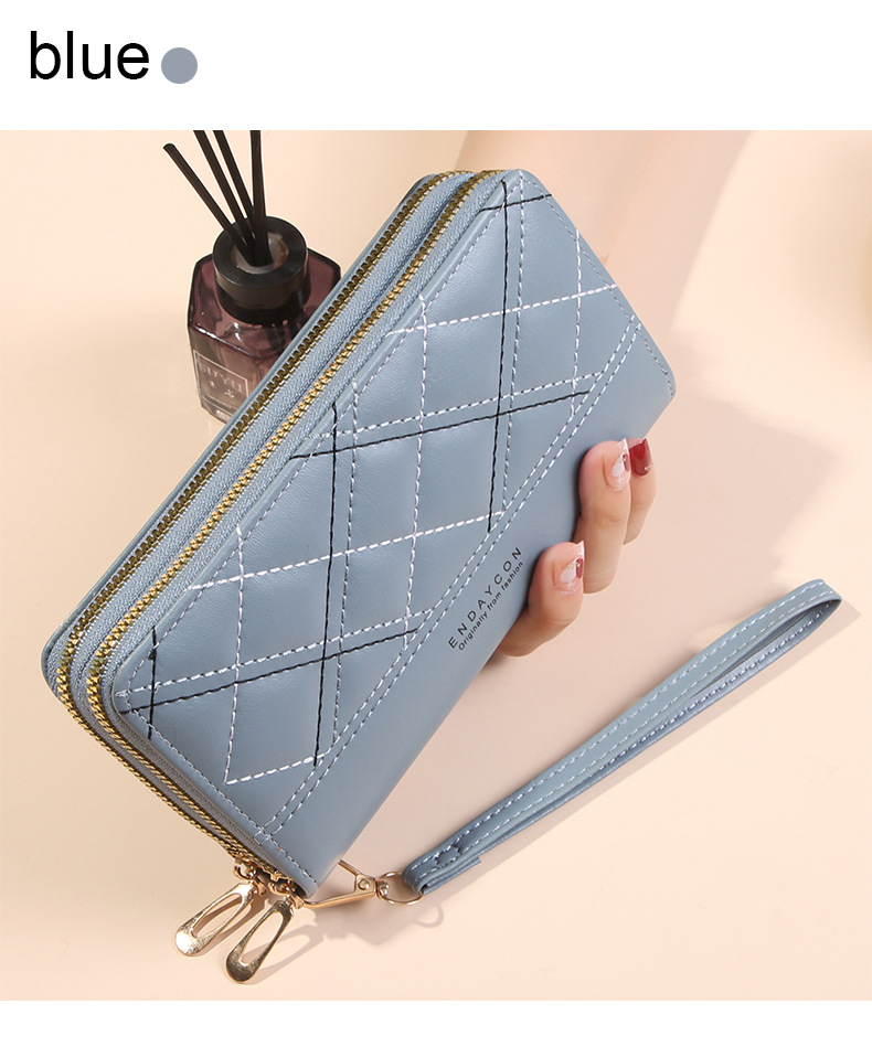 여성 단순 자수 더블 지퍼 한국 스타일 2025 새로운 도착 휴대용 휴대 전화 가방 대용량 더블 레이어 지갑스토어 가기