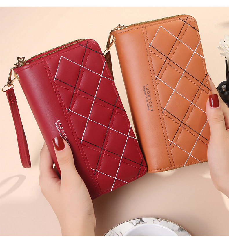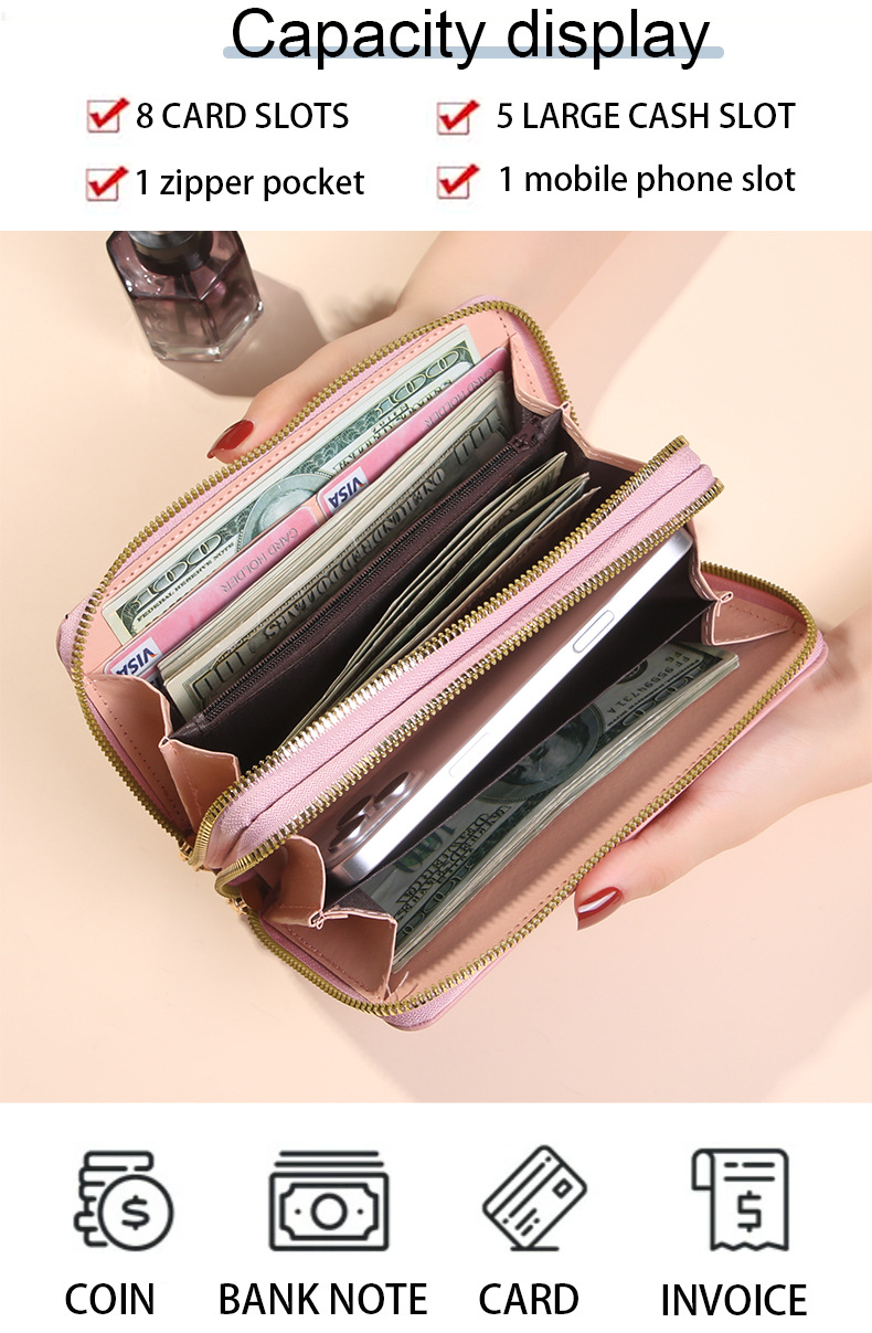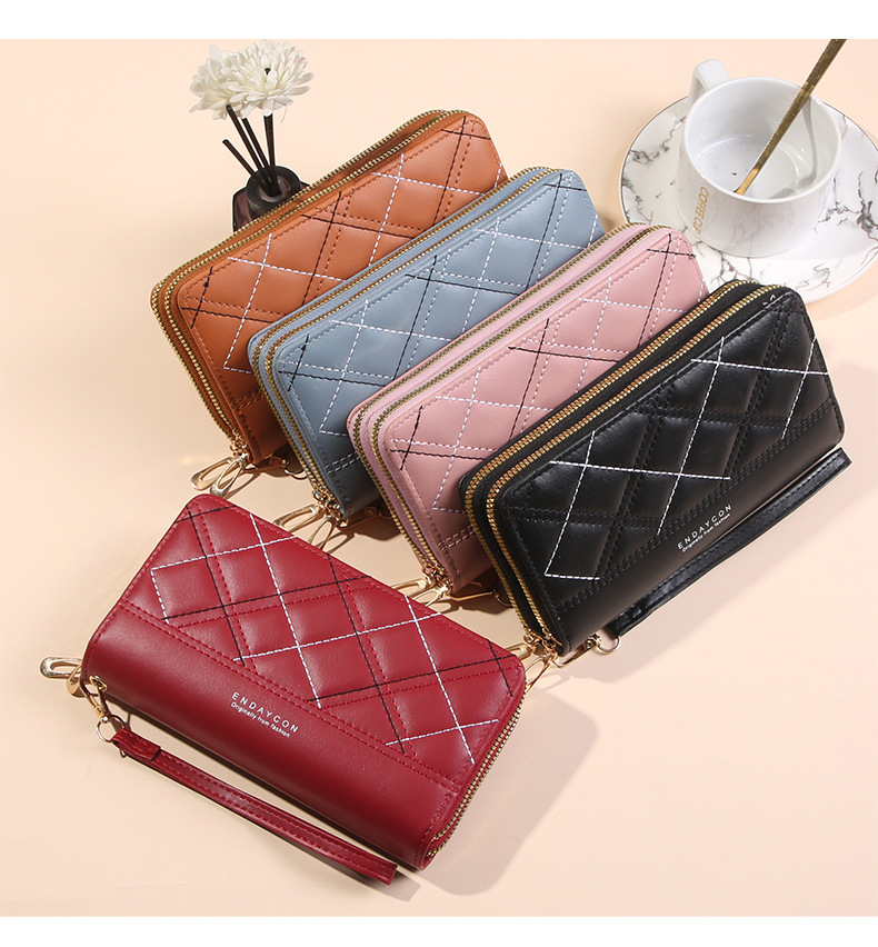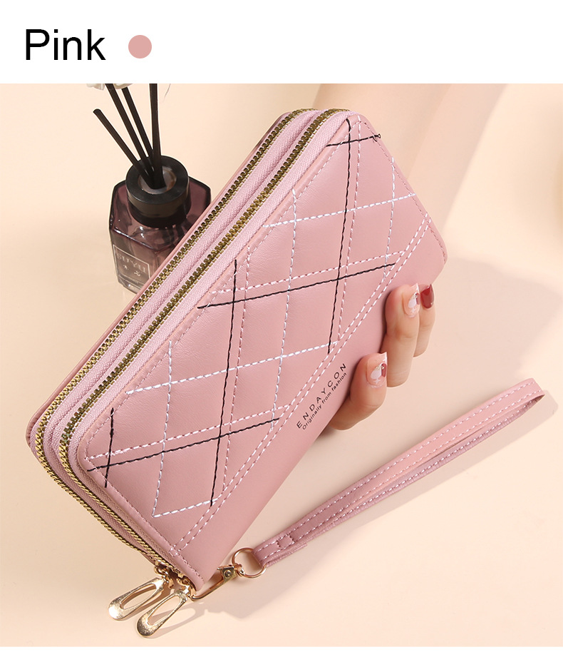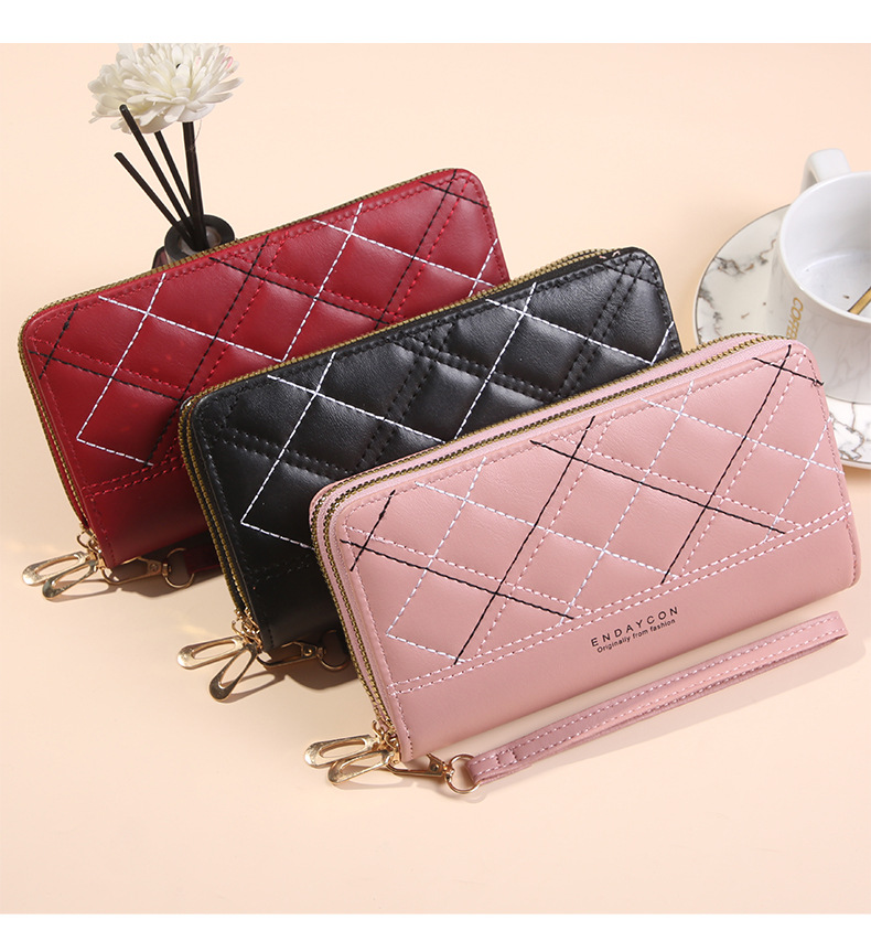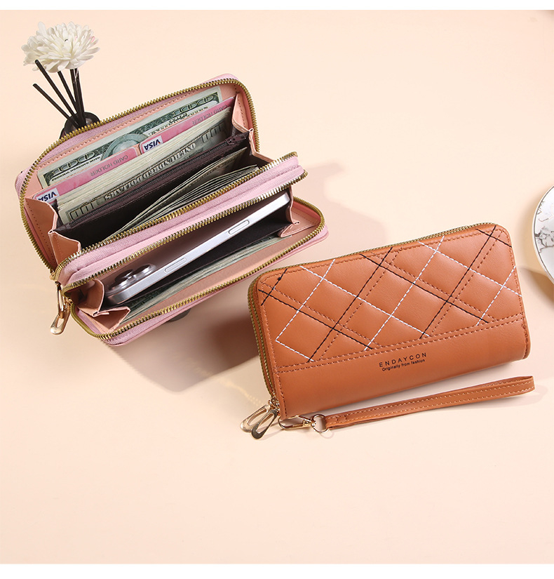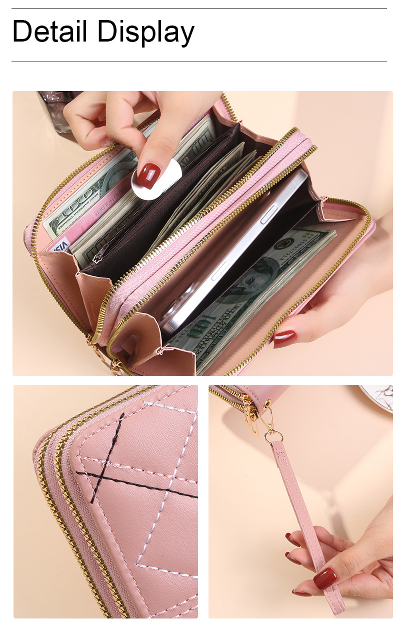 여성 단순 자수 더블 지퍼 한국 스타일 2025 새로운 도착 휴대용 휴대 전화 가방 대용량 더블 레이어 지갑