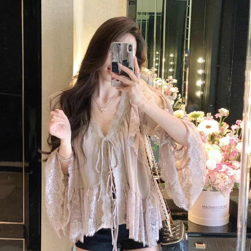 【소녀의 듀얼 스타일】2026년 신상 봄옷, 우아한 쉬폰 셔츠, 긴팔 레이스 셔츠, 은은한 매력의 순수한 섹시함스토어 가기