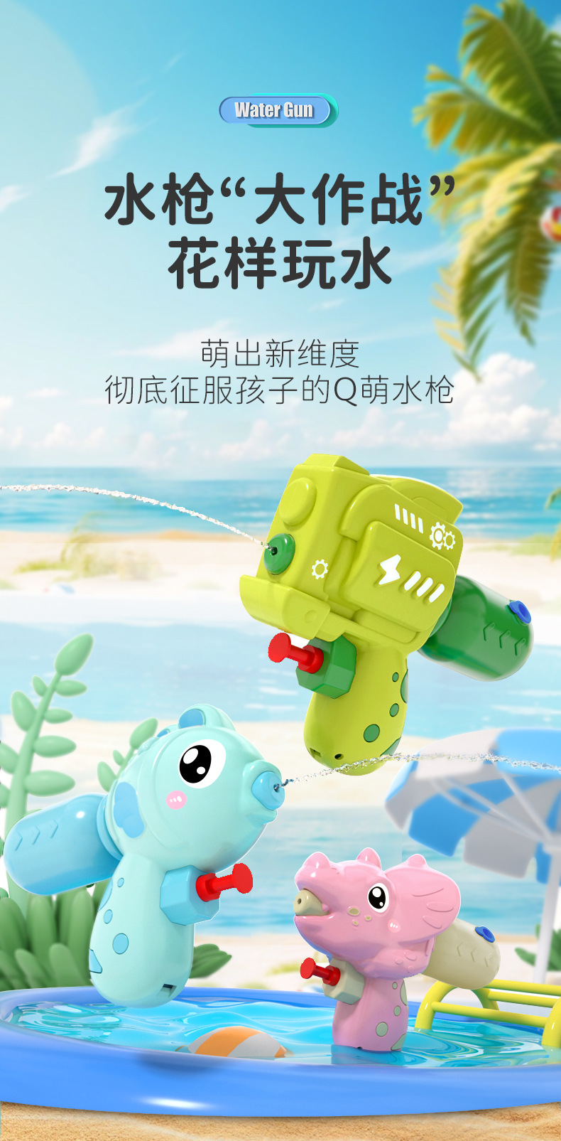 새로운 공룡 Clownfish 미니 물총 장난감 어린이 프레스 만화 물총 소년과 소녀 유치원 선물
