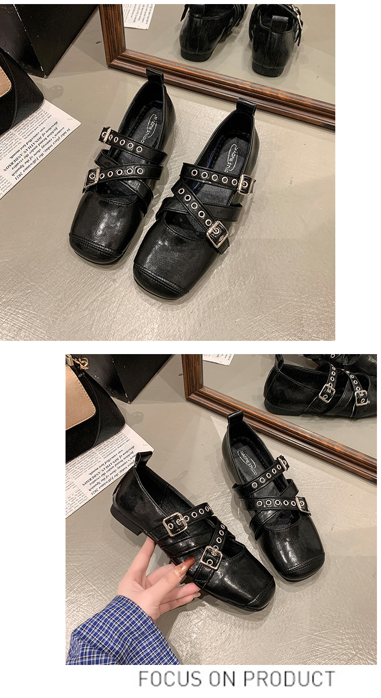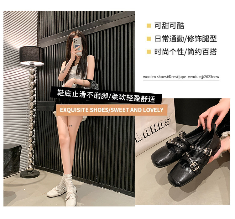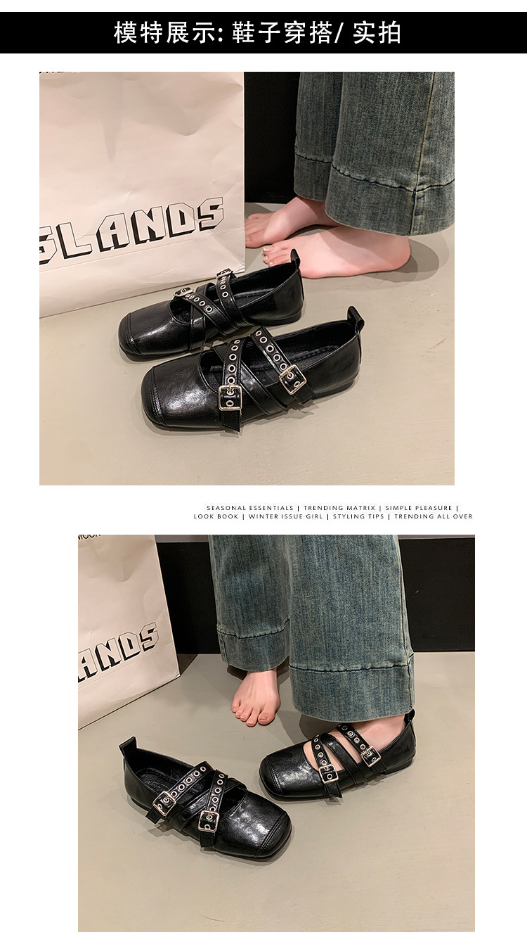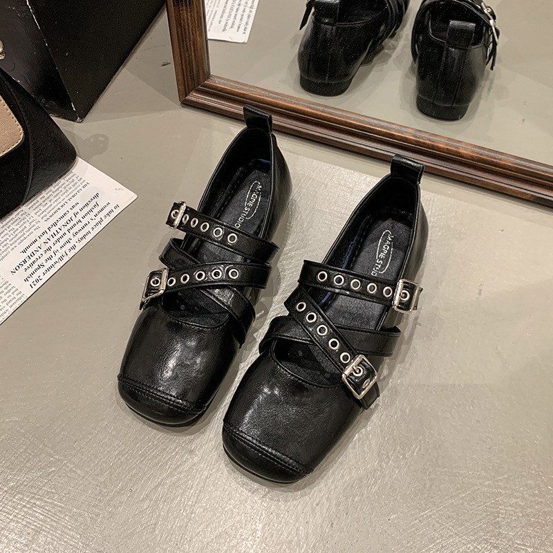 패션 디자인 센스 벨트 버클 2025 봄과 여름 메리 제인 신발 여성 스퀘어 헤드 올 매치 크로스 벨트 로우 청키 힐 트렌디 싱글 레이어 신발스토어 가기
