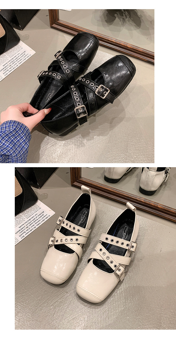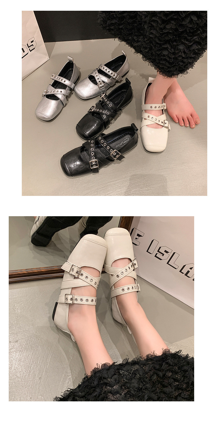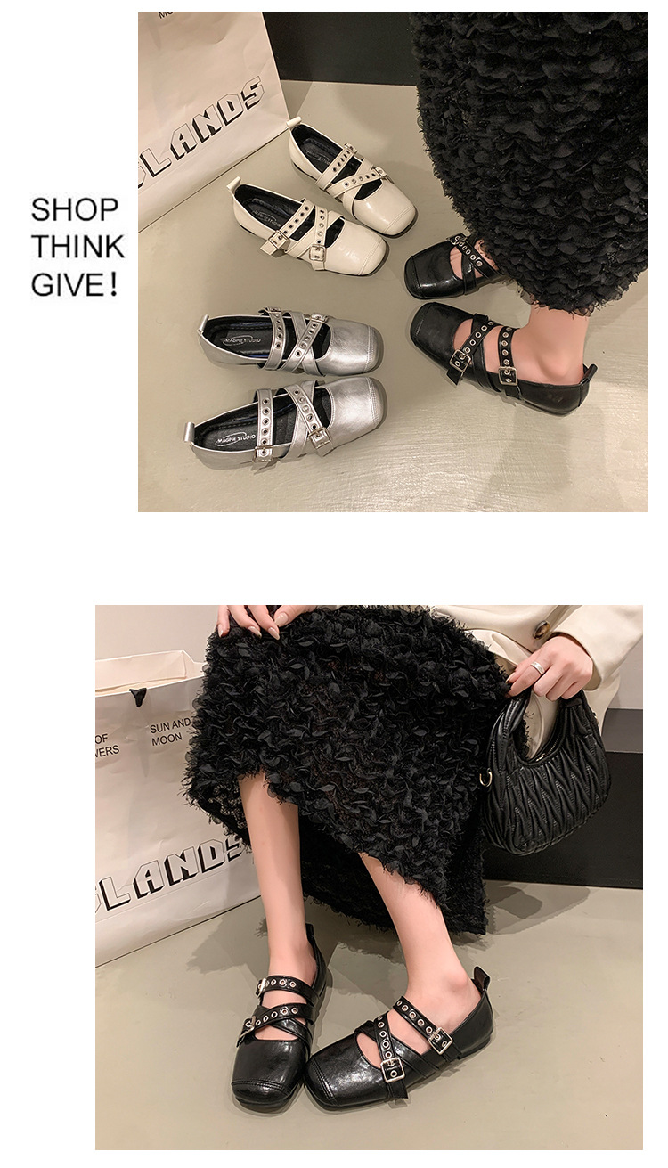 패션 디자인 센스 벨트 버클 2025 봄과 여름 메리 제인 신발 여성 스퀘어 헤드 올 매치 크로스 벨트 로우 청키 힐 트렌디 싱글 레이어 신발스토어 가기