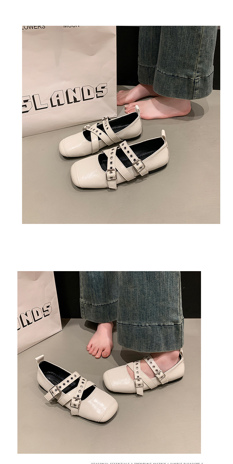 패션 디자인 센스 벨트 버클 2025 봄과 여름 메리 제인 신발 여성 스퀘어 헤드 올 매치 크로스 벨트 로우 청키 힐 트렌디 싱글 레이어 신발