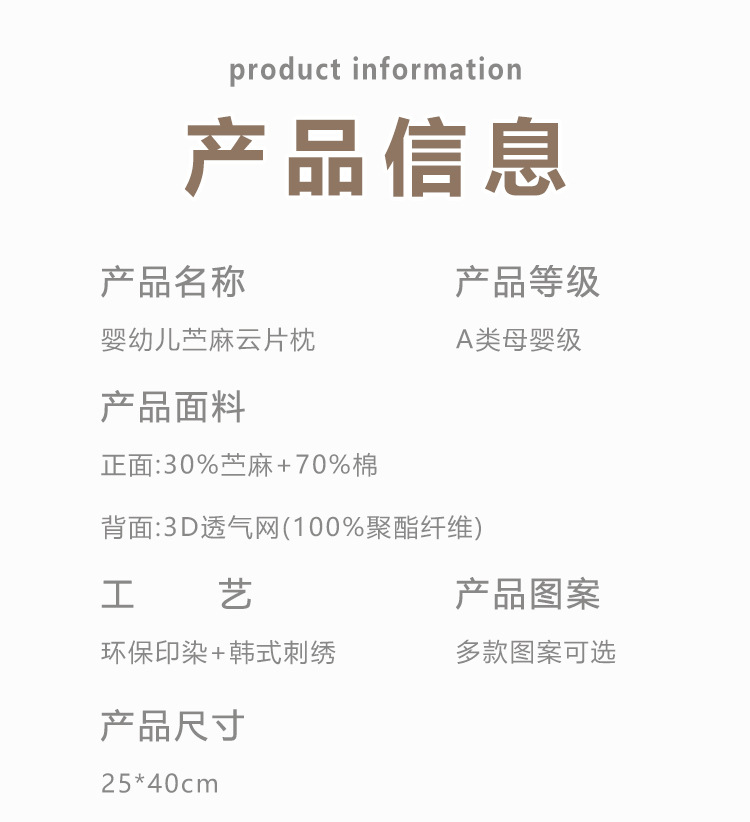 婴幼儿苎麻云片枕