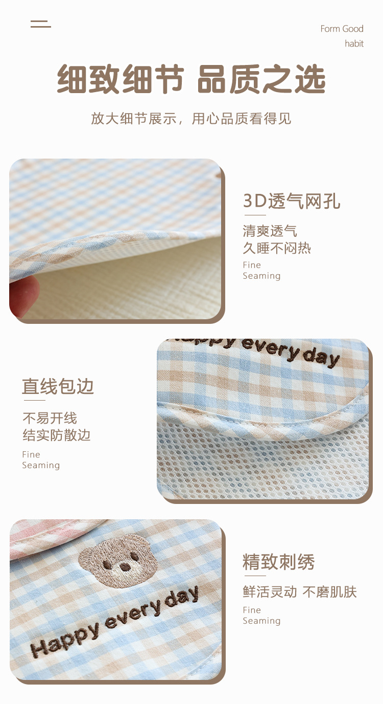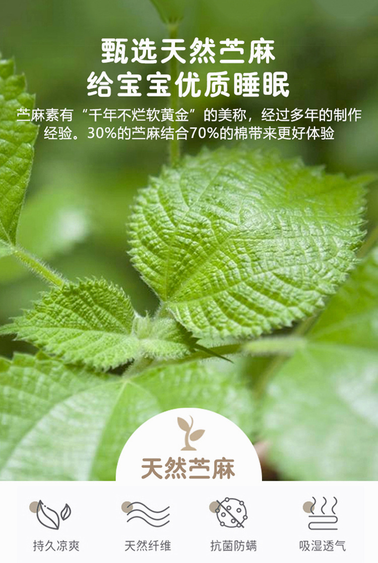 采用天然凉感苎麻面料,给宝宝优质睡眠专为新生儿设计的枕垫,呵护宝宝的颈椎天然纤维、吸汗透气、柔软触感