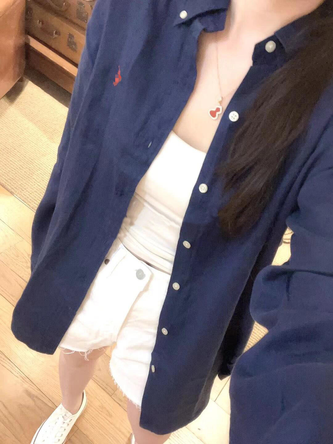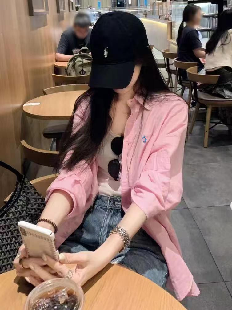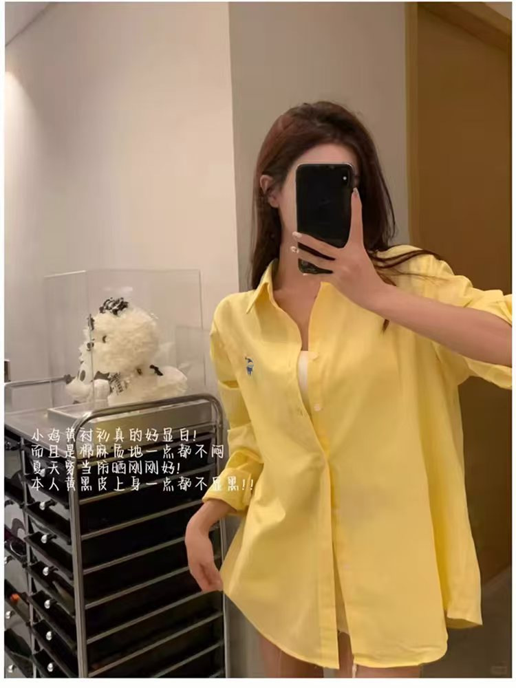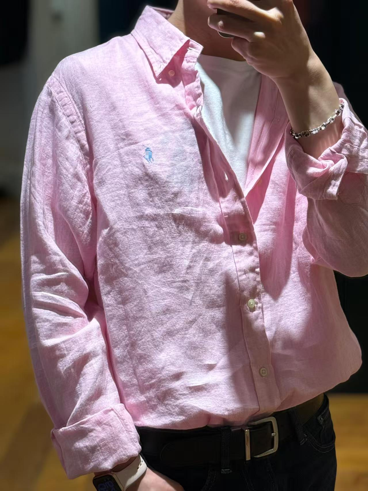 라프 포니 로고 자수 리넨 셔츠 탑, 버튼 POLO 칼라, 다용도 패셔너블 캐주얼 긴팔, 상큼한 스타일 여성용스토어 가기
