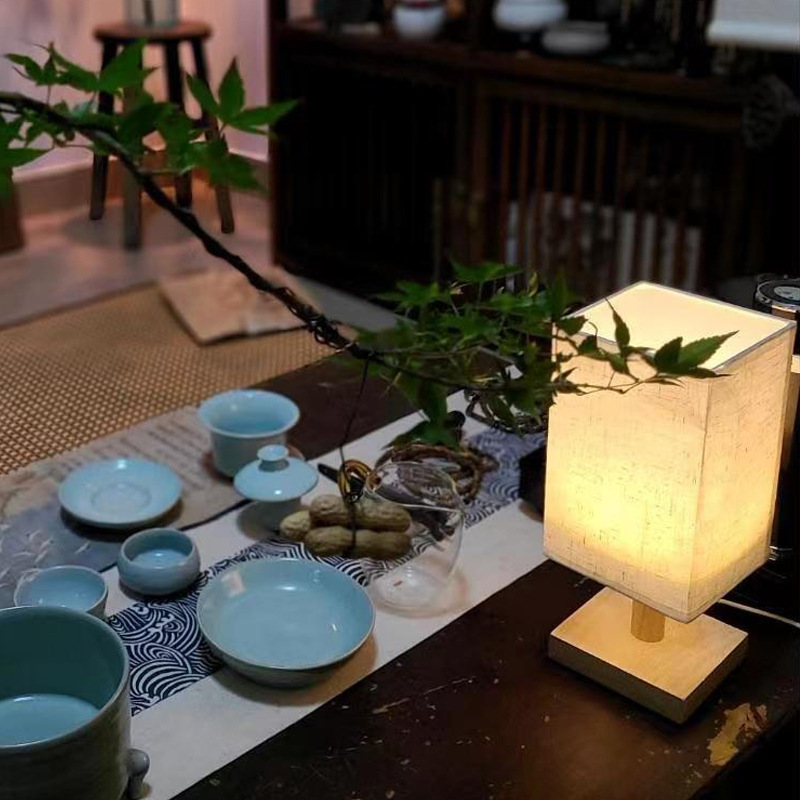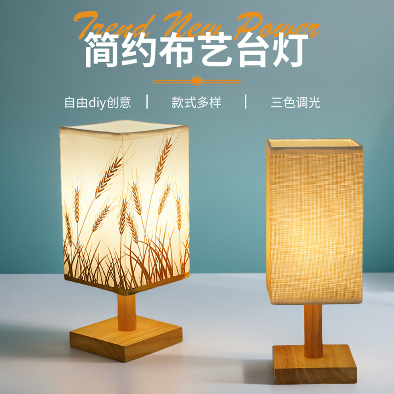 Wenchuang 솔리드 우드 서예 USB 테이블 램프 DIY 장식 침실 침실 램프 원격 제어 레트로 스퀘어 나이트 라이트 크리에이티브스토어 가기
