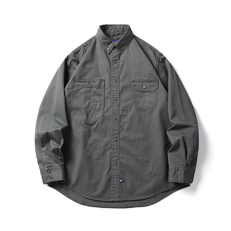 25SS 일본식 클래식 퓨어 코튼 워시 퍼플 라벨 멀티 포켓 툴링 긴팔 셔츠 남성용 시티 보이 루즈 셔츠
