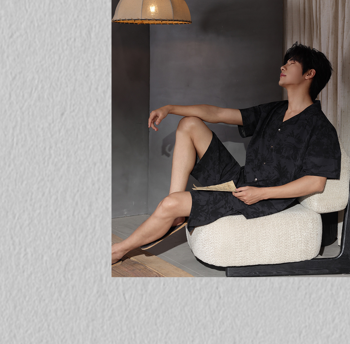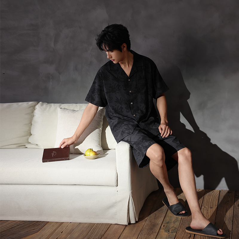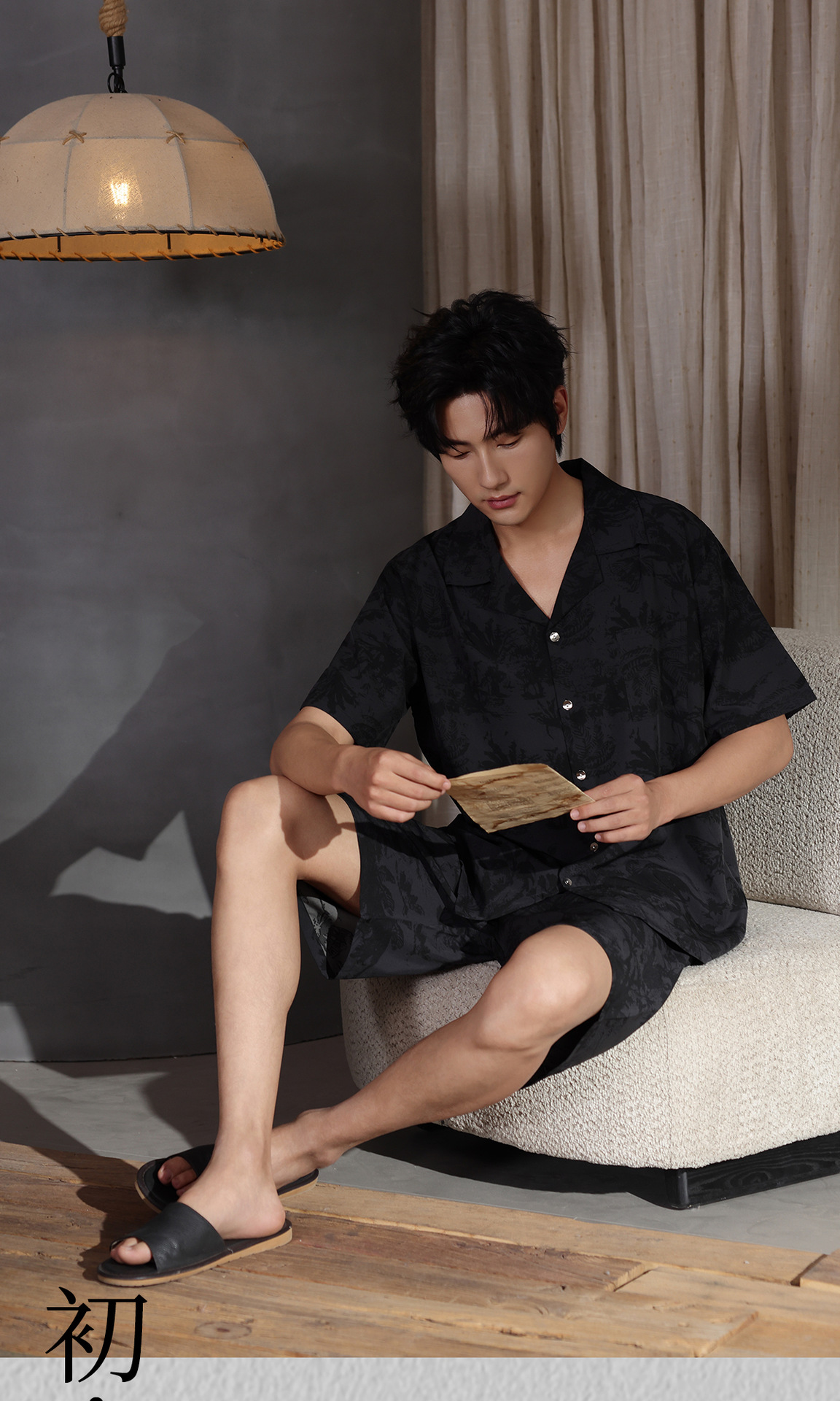 [시원한 느낌] 아이스 실크 파자마 남성 여름 인쇄 느슨한 짧은 소매 반바지 소년 홈 의류 세트 한국판스토어 가기