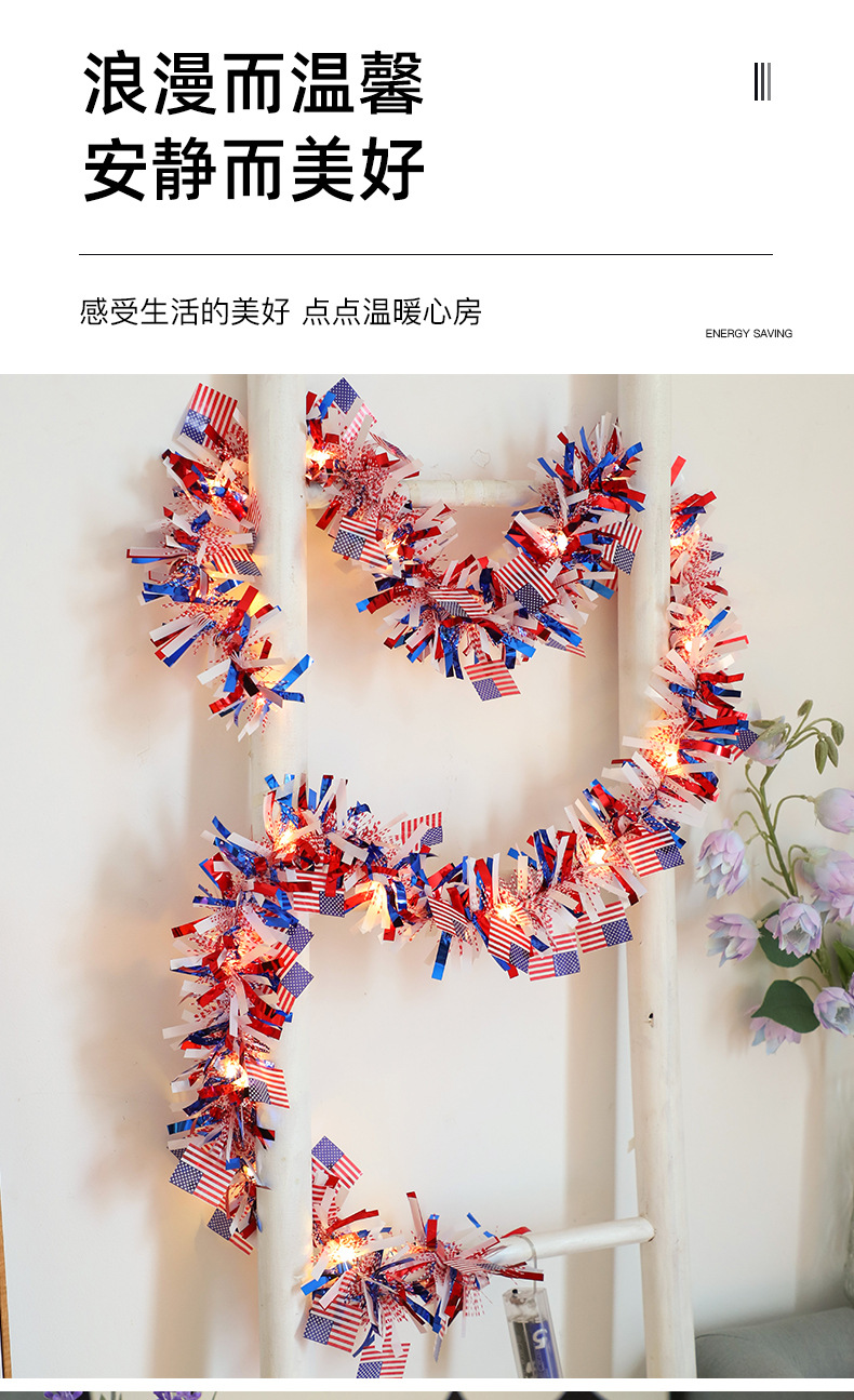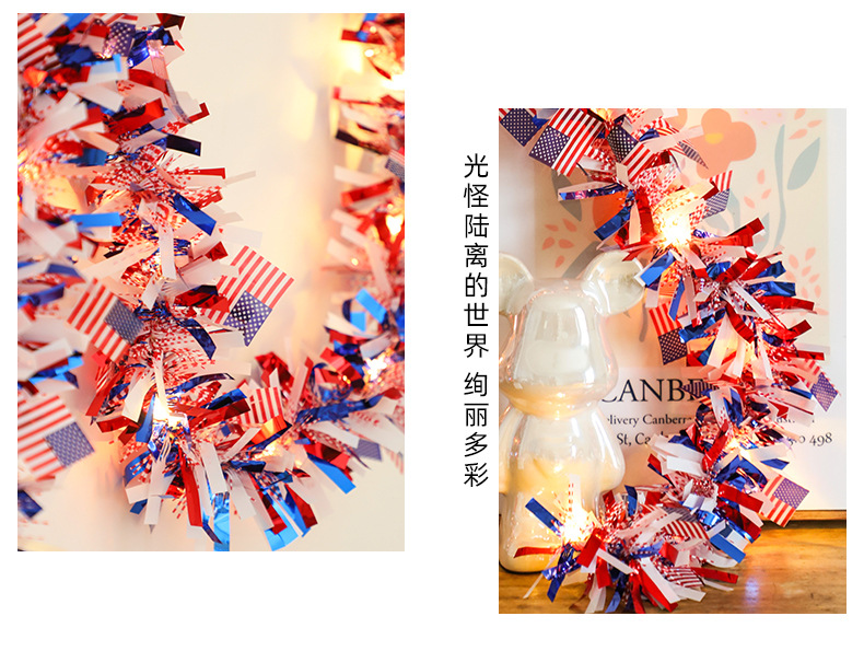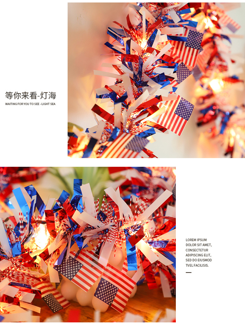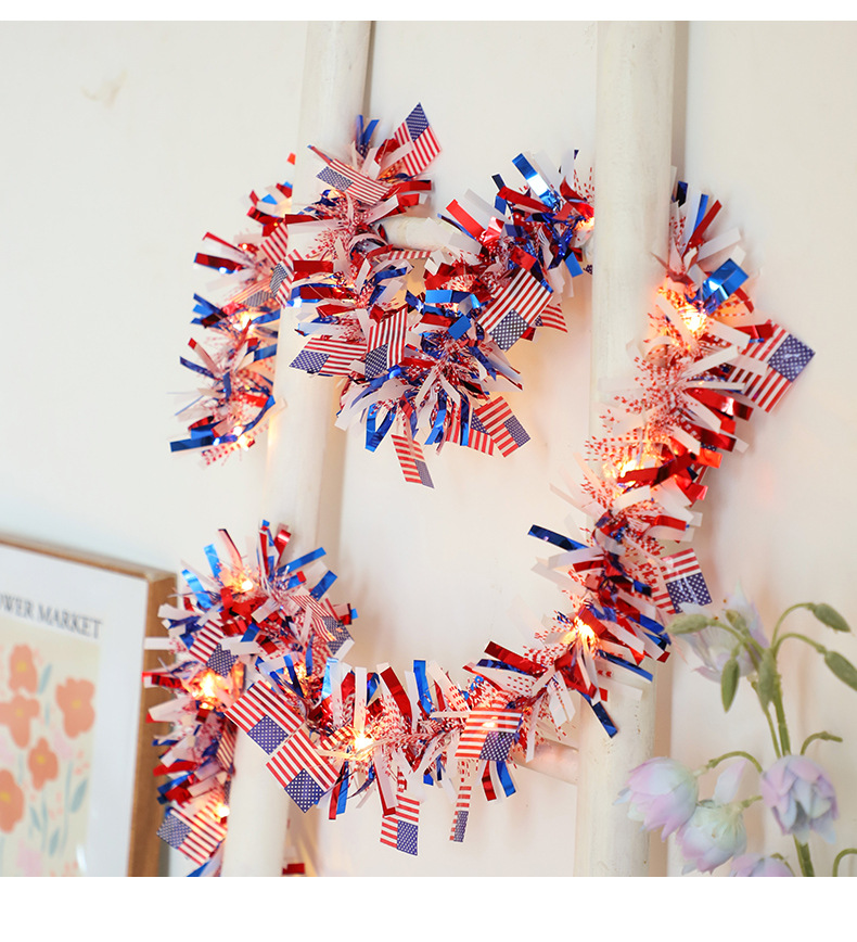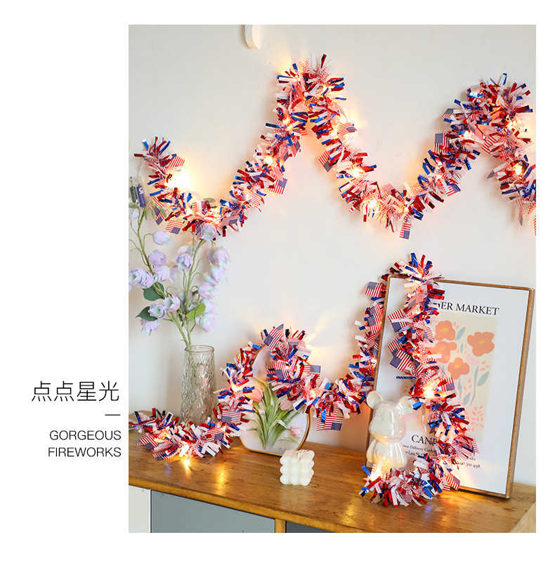 국경을 넘나드는 신제품 미국 국기 모직 스트링 라이트 독립 기념일 구리 와이어 라이트 장식 스트링 라이트 빨간색 파란색과 흰색 오각형 라이트스토어 가기