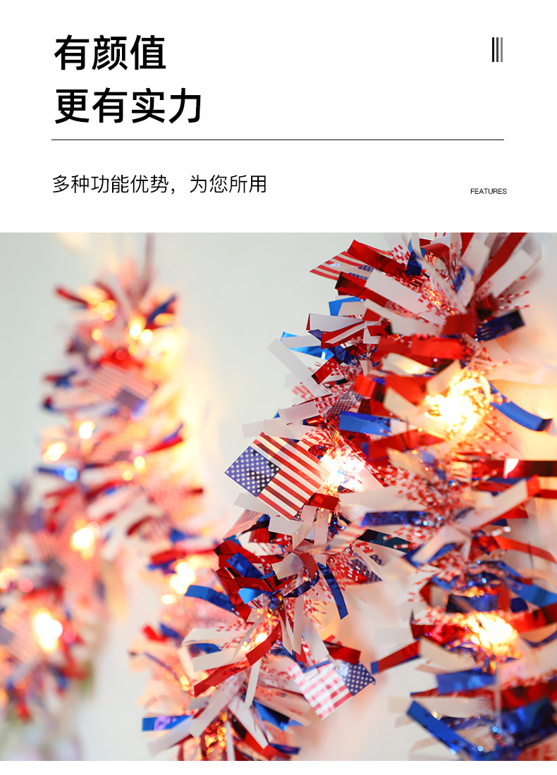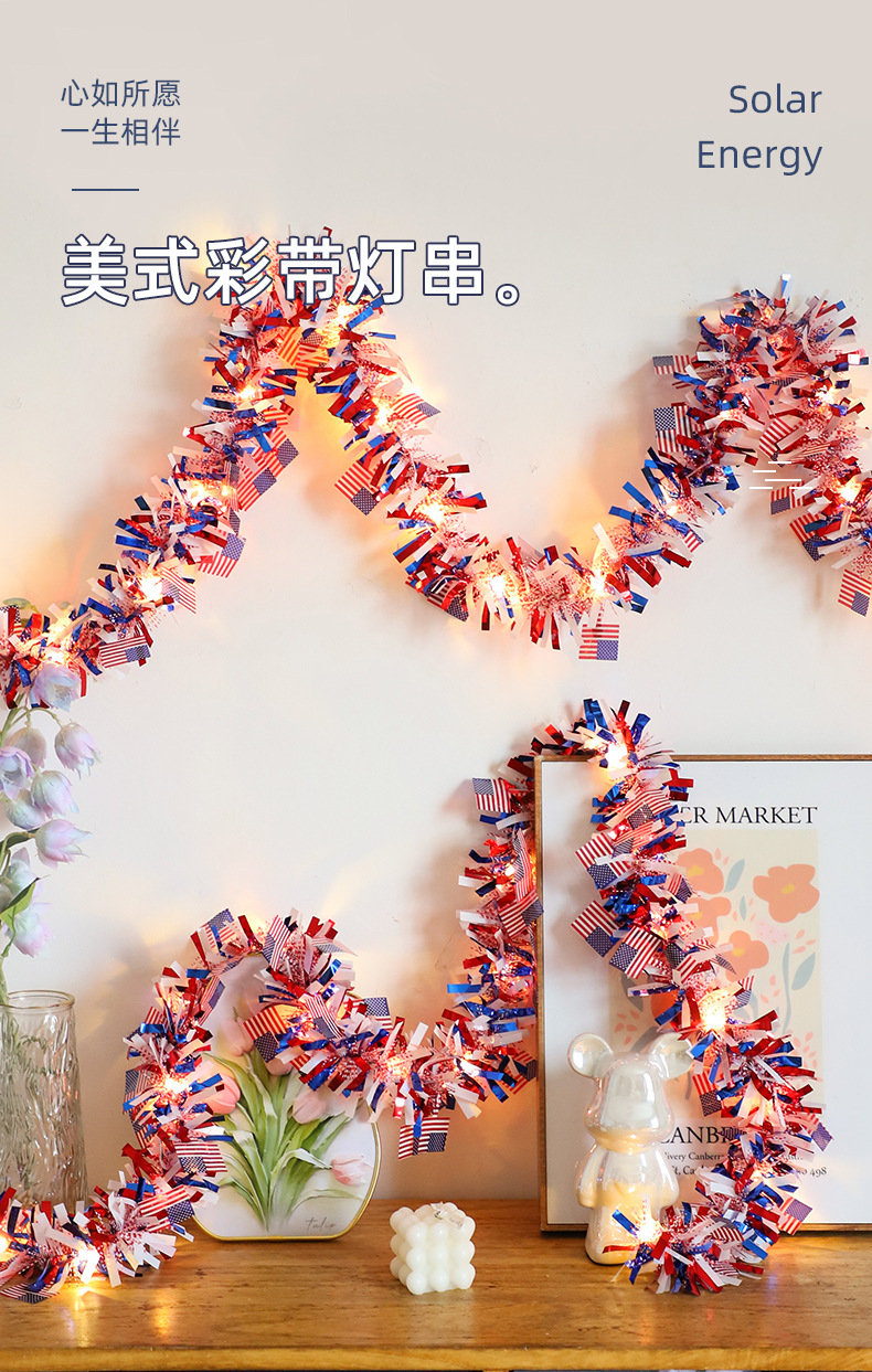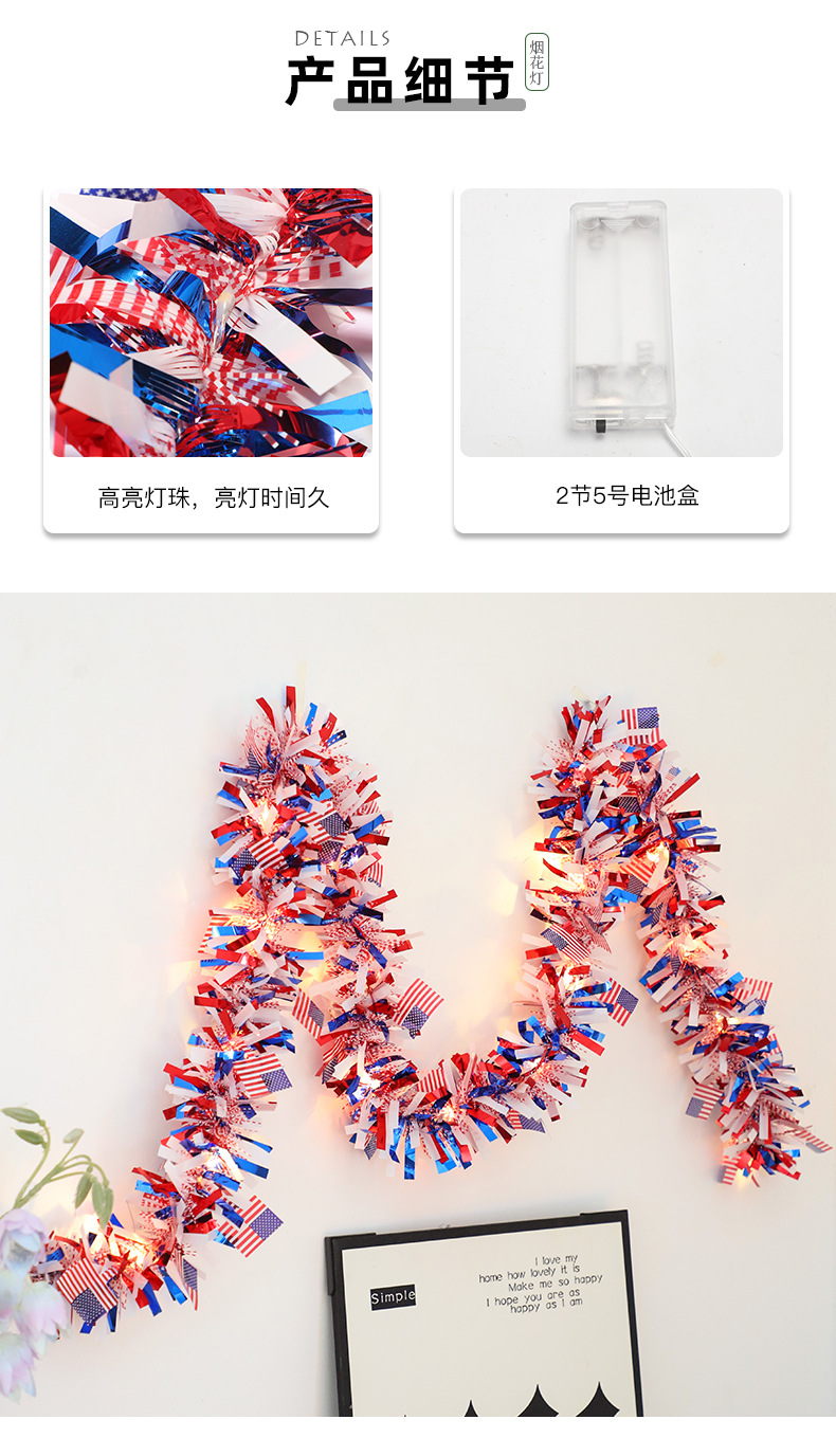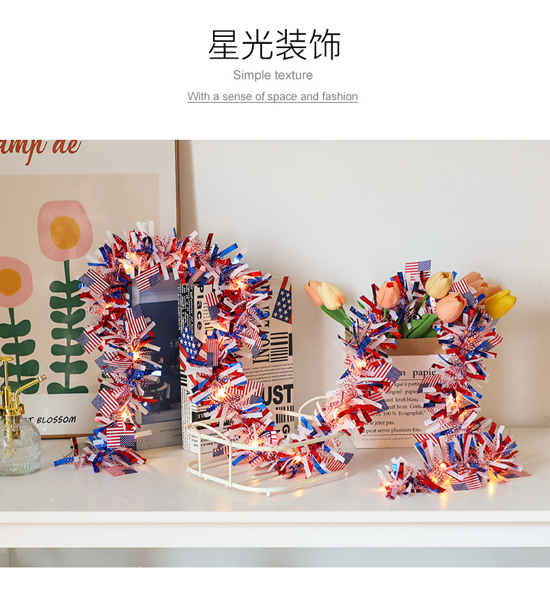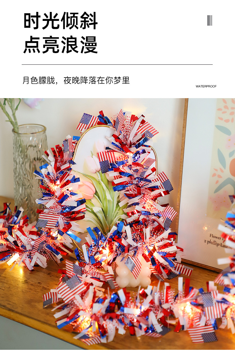 국경을 넘나드는 신제품 미국 국기 모직 스트링 라이트 독립 기념일 구리 와이어 라이트 장식 스트링 라이트 빨간색 파란색과 흰색 오각형 라이트스토어 가기