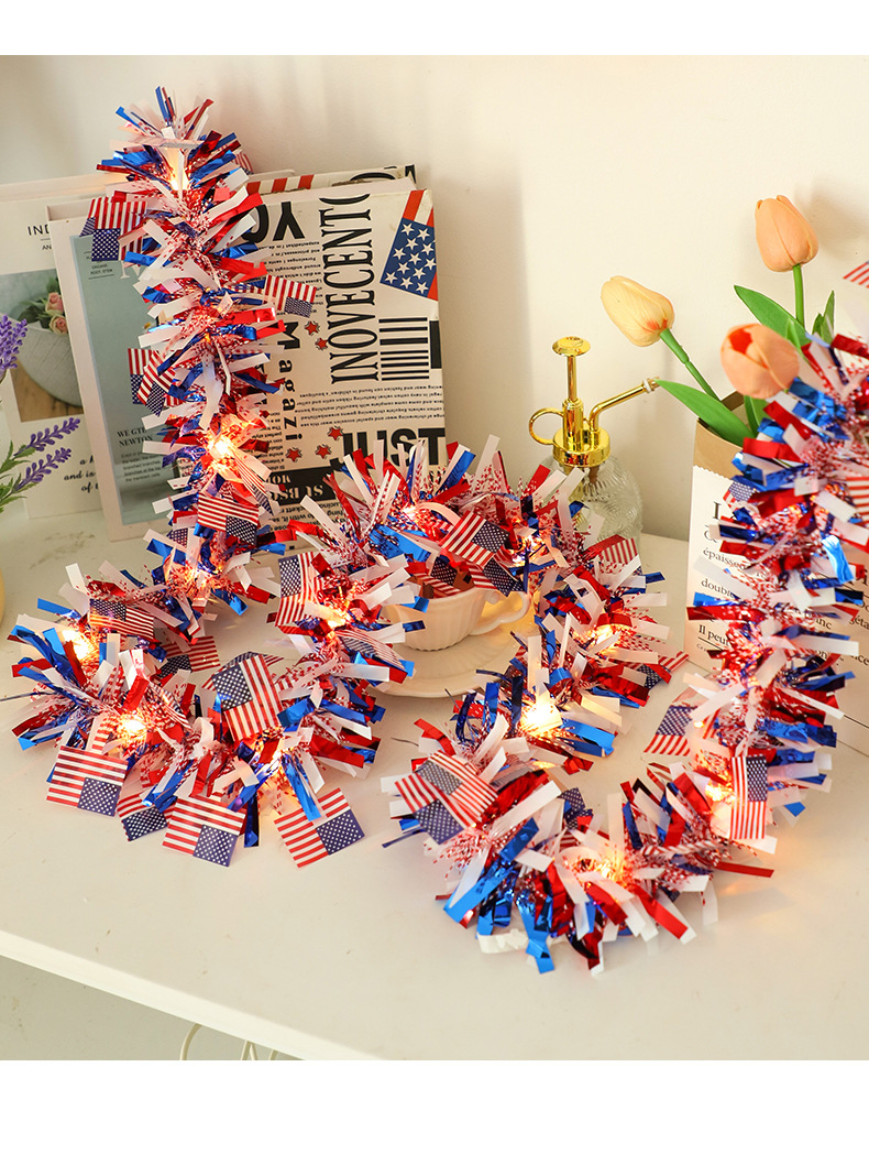 국경을 넘나드는 신제품 미국 국기 모직 스트링 라이트 독립 기념일 구리 와이어 라이트 장식 스트링 라이트 빨간색 파란색과 흰색 오각형 라이트