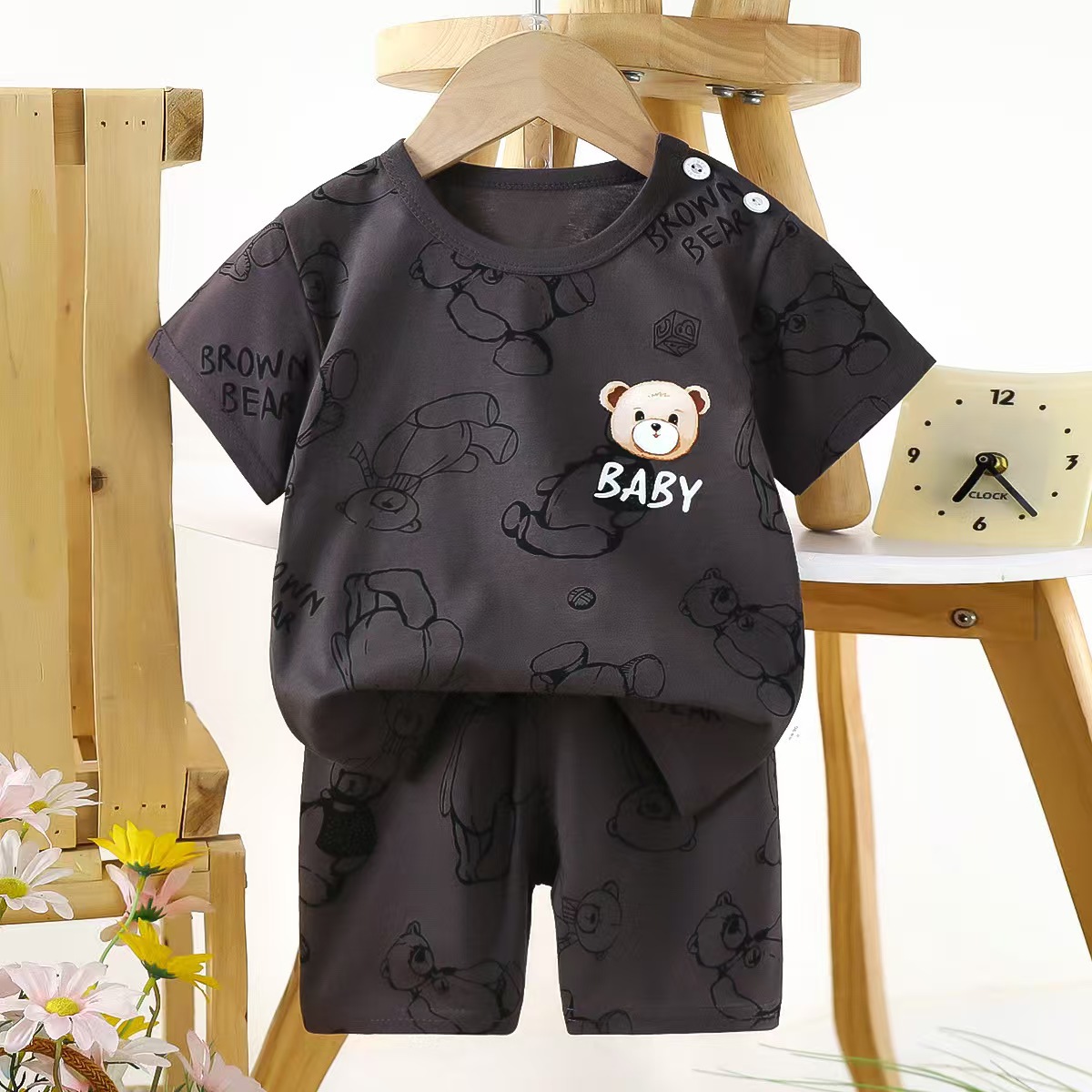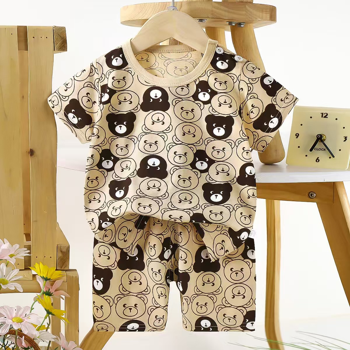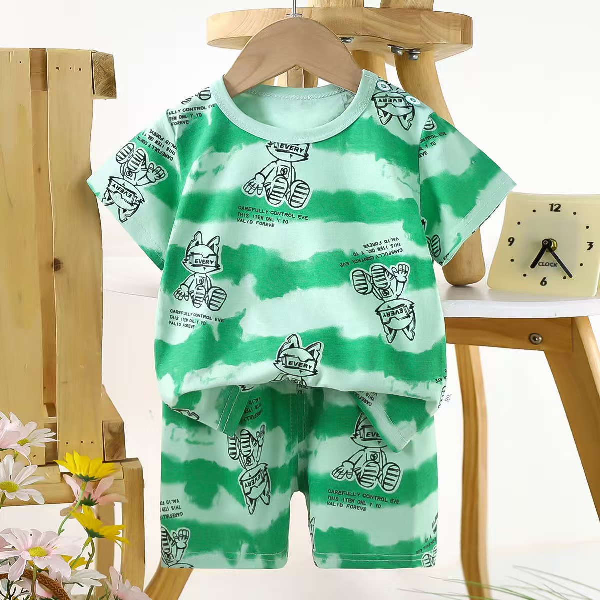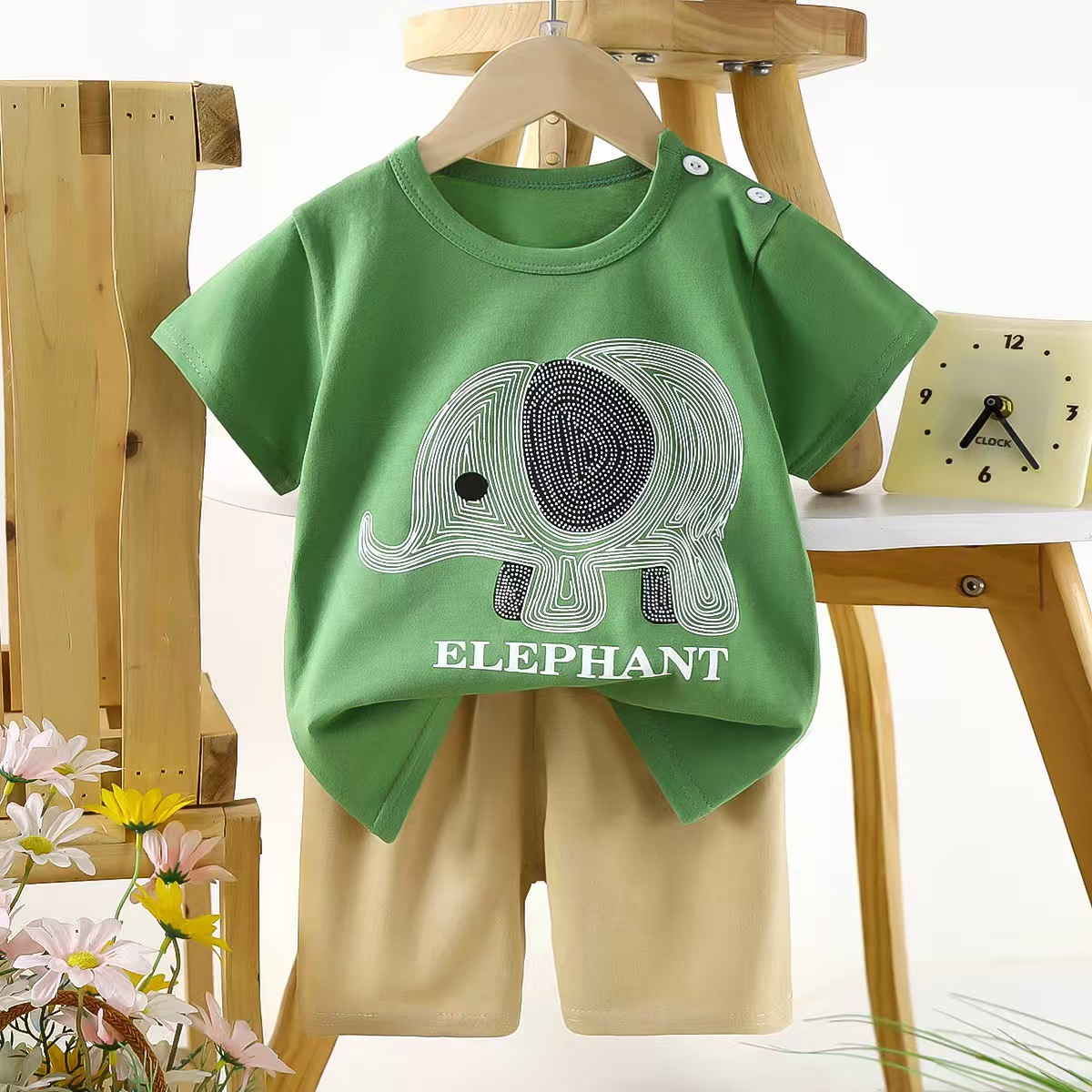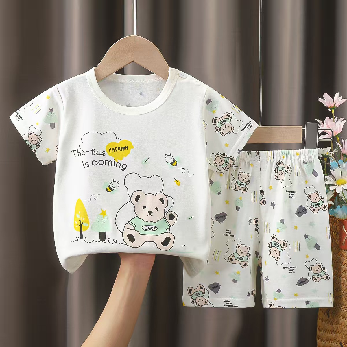 여름 신상 아동용 티셔츠 반팔 반바지 패션 세트, 순면 티셔츠, 남아 여아용 얇은 트렌디 상품 도매스토어 가기