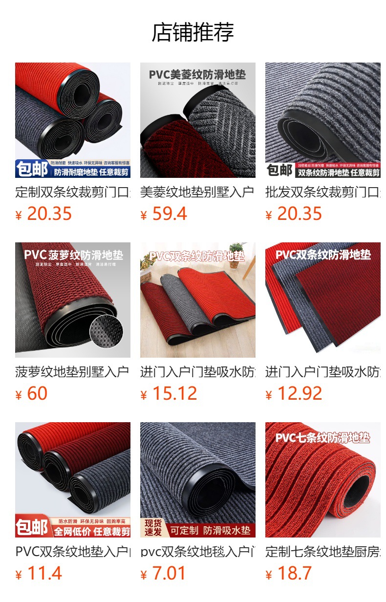 더블 스트라이프 디자인의 PVC 현관 매트, 출입구, 복도, 통로용, 넓은 면적의 풀커버 바닥 매트, 현관문 매트스토어 가기