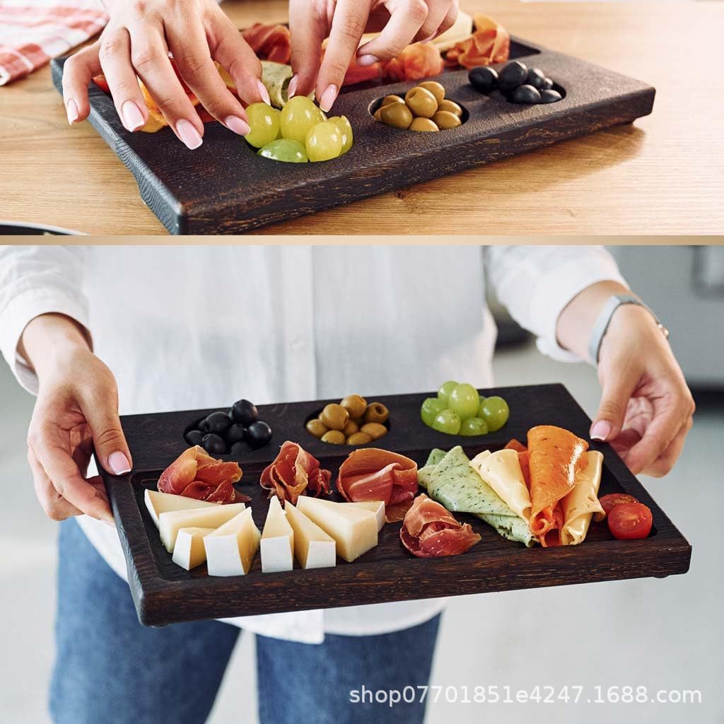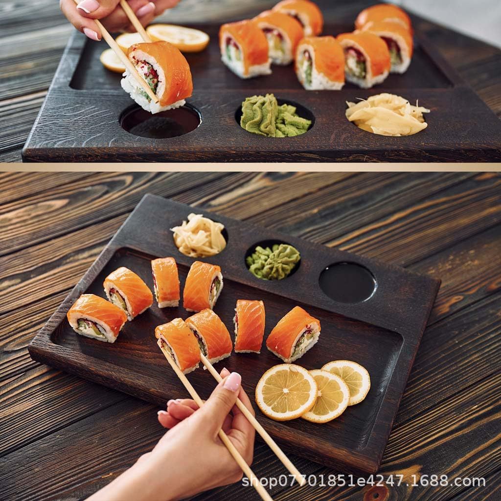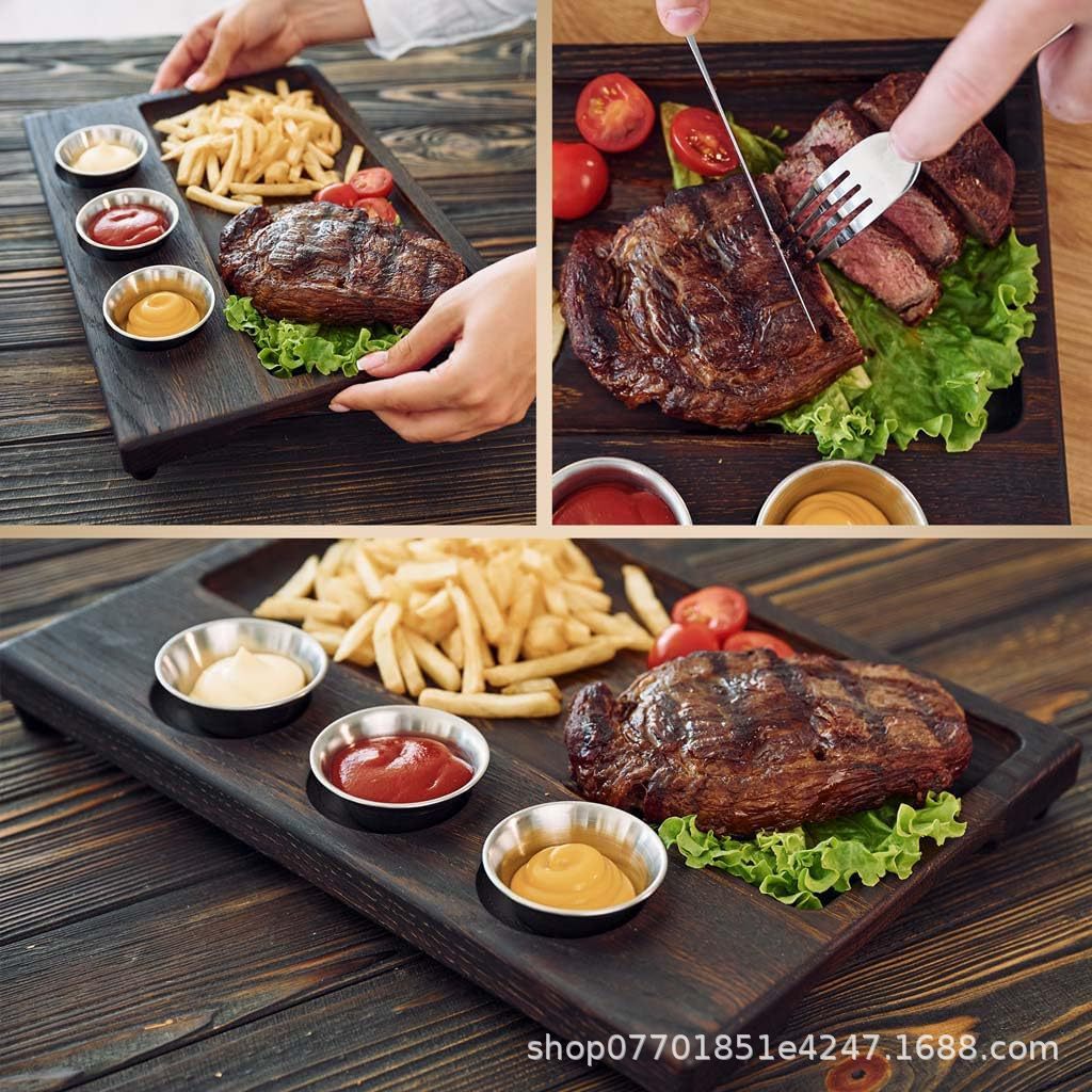 나무 서빙 트레이, 복고풍 홈이 있는 바베큐 접시, 디핑 접시, 스테이크 접시, 스시 접시, 가정용 원목 아침 식사 접시