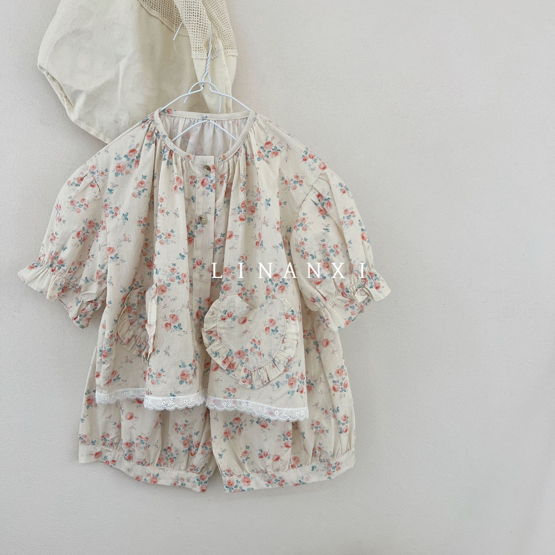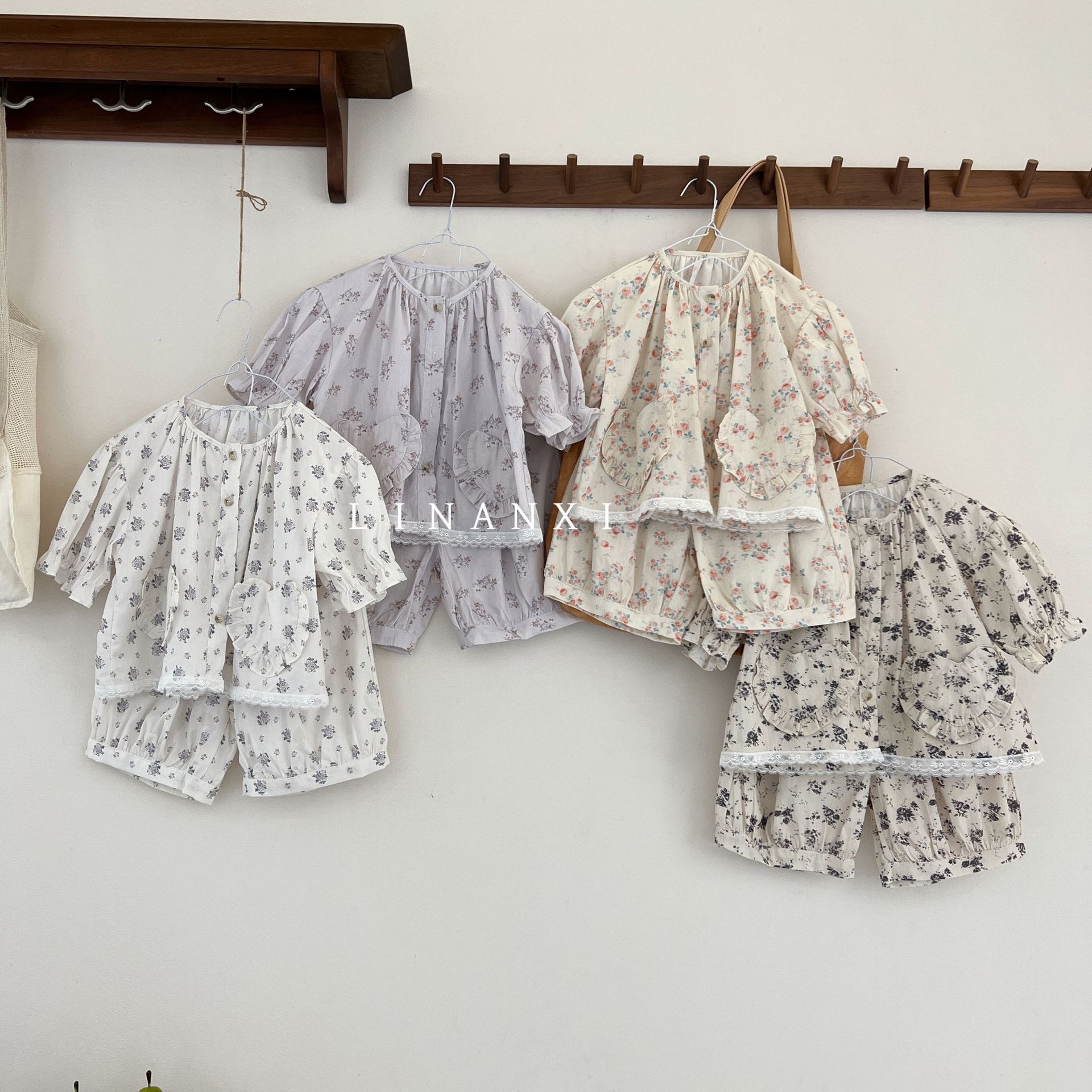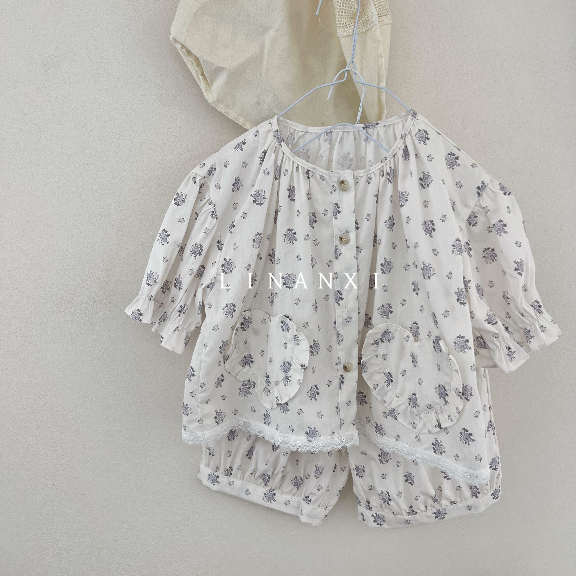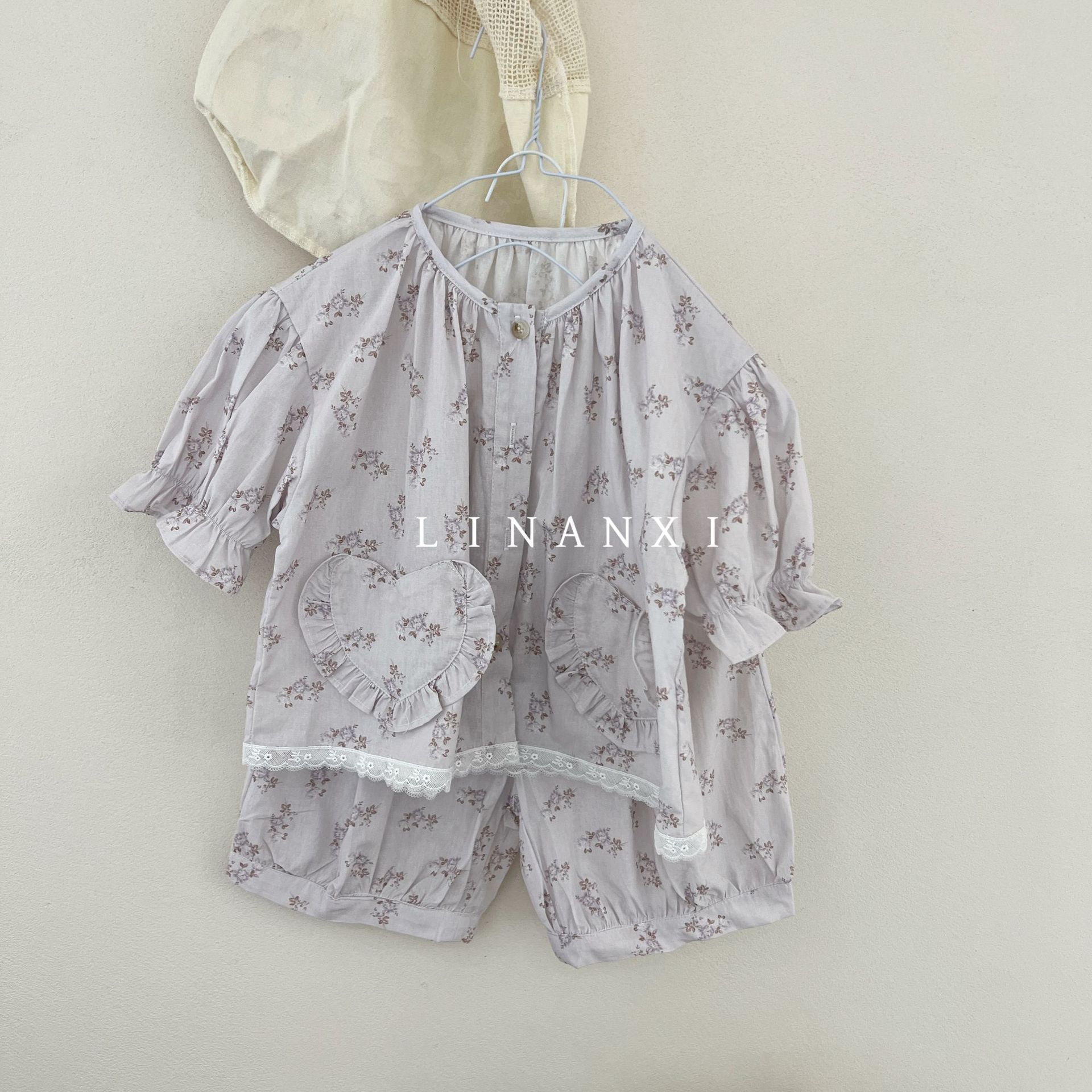85496 여자 새로운 여름 꽃 목회 스타일 신선한 레이스 달콤한 홈 옷 잠옷 세트 두 조각스토어 가기