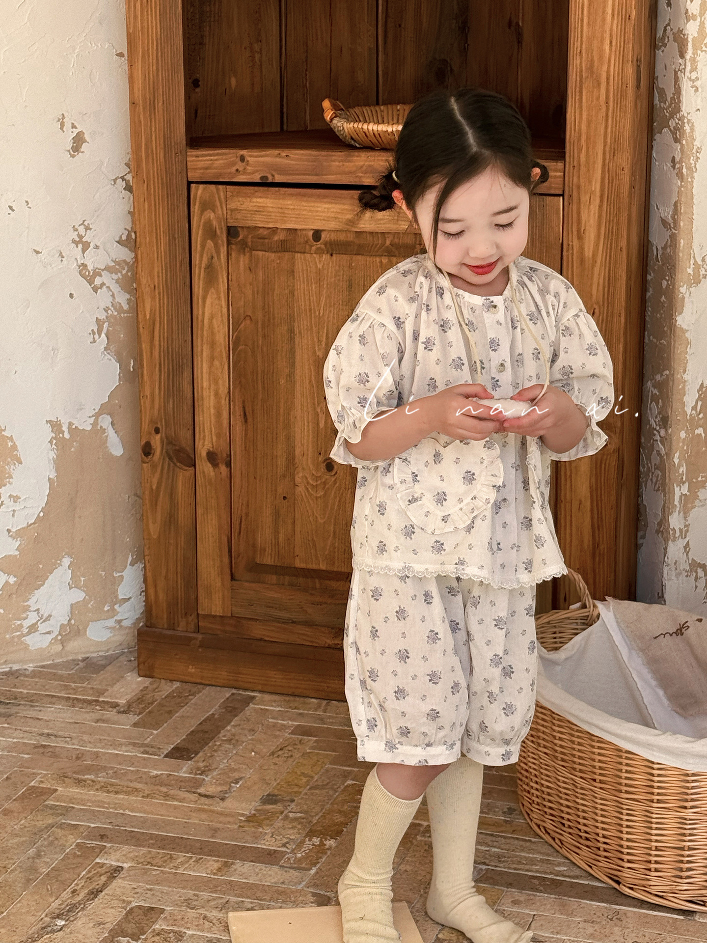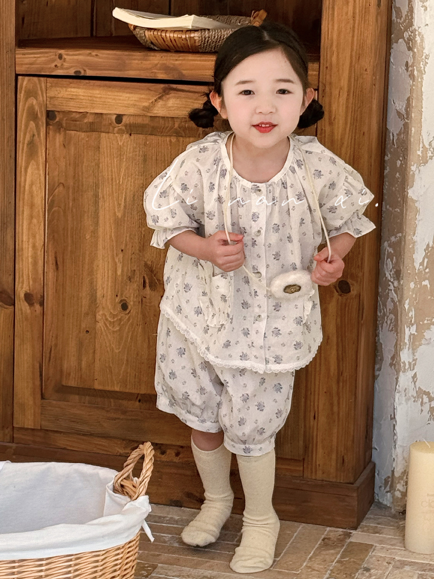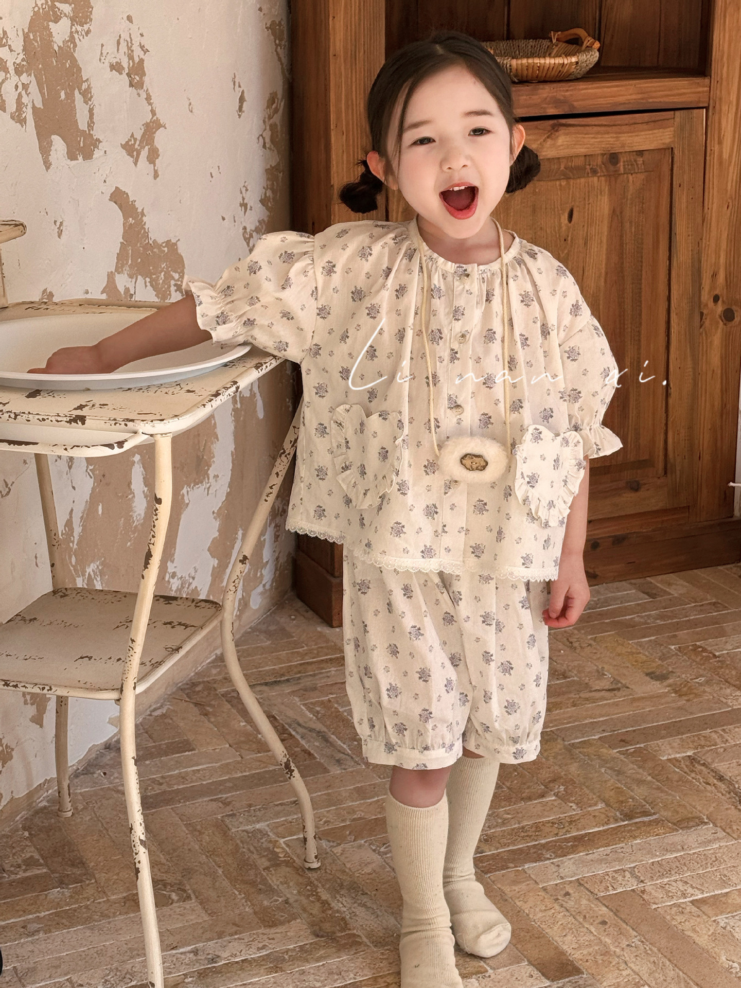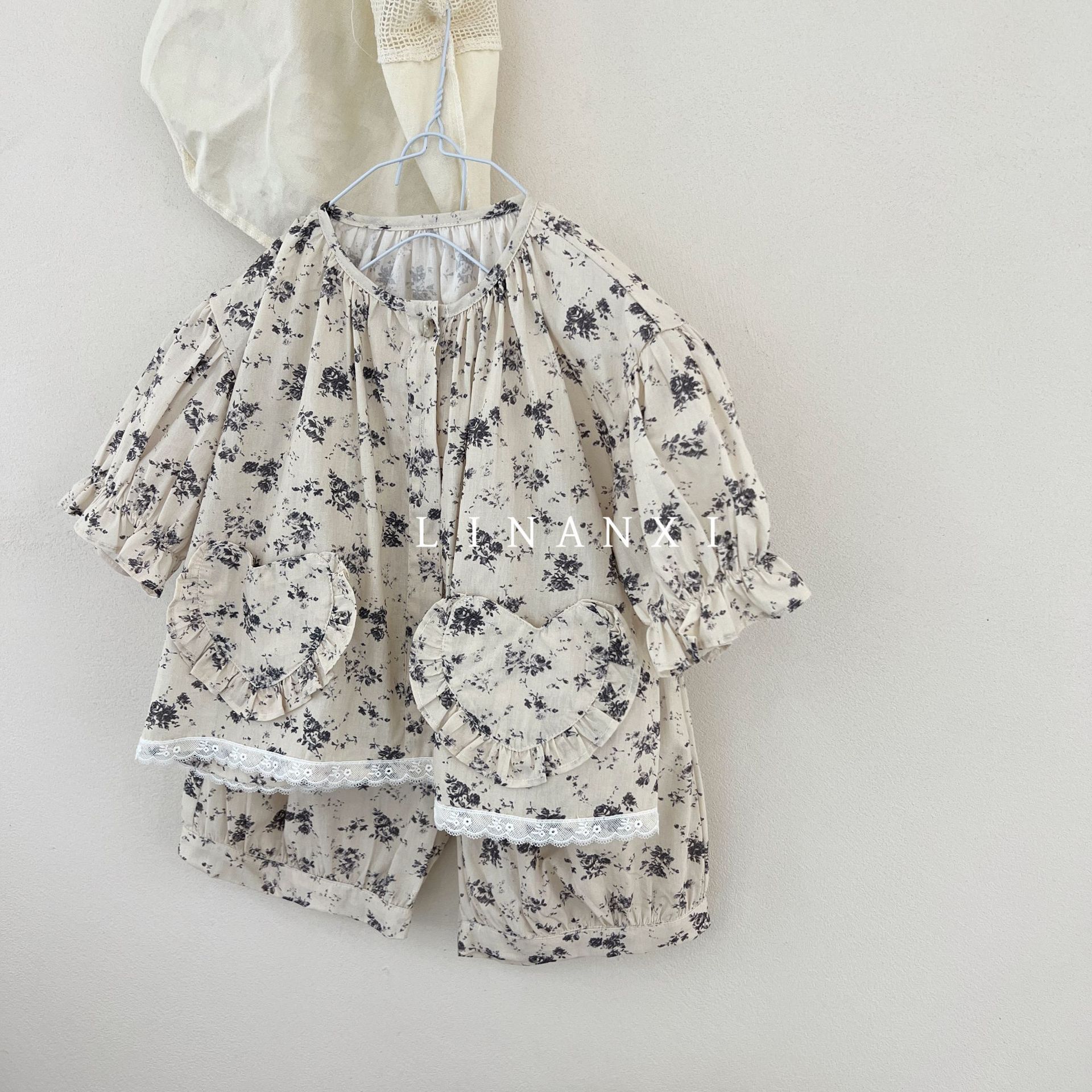 85496 여자 새로운 여름 꽃 목회 스타일 신선한 레이스 달콤한 홈 옷 잠옷 세트 두 조각스토어 가기