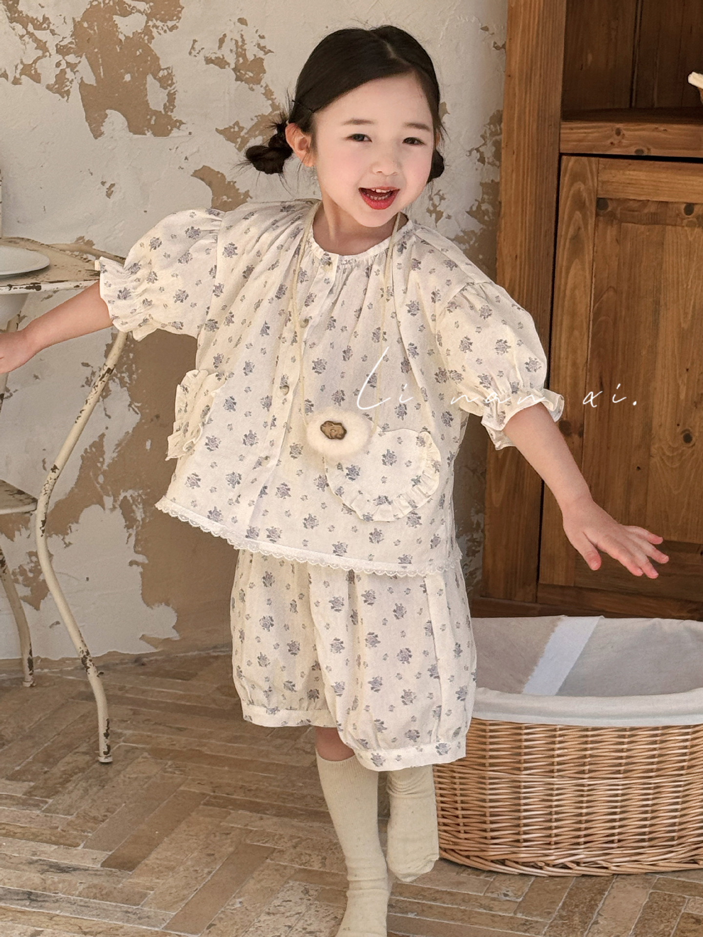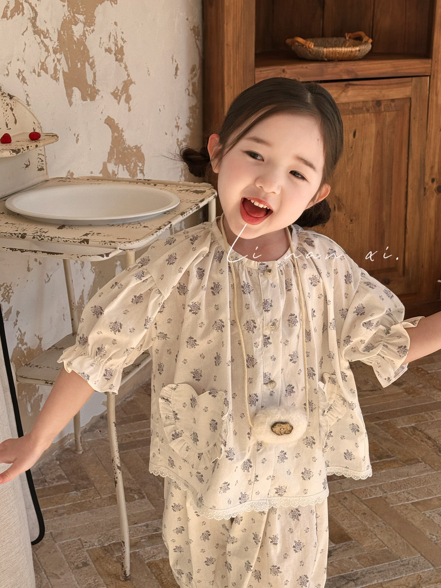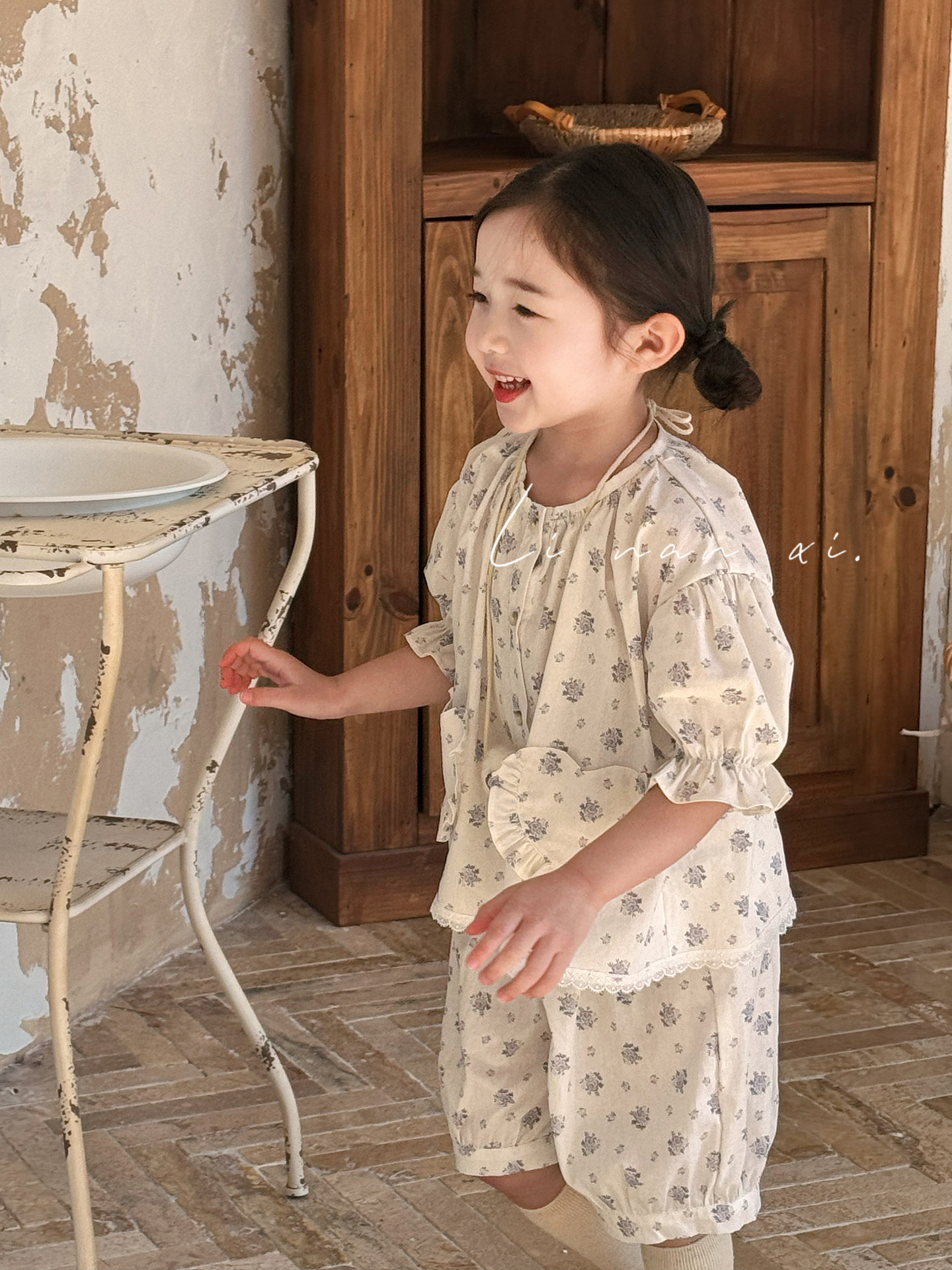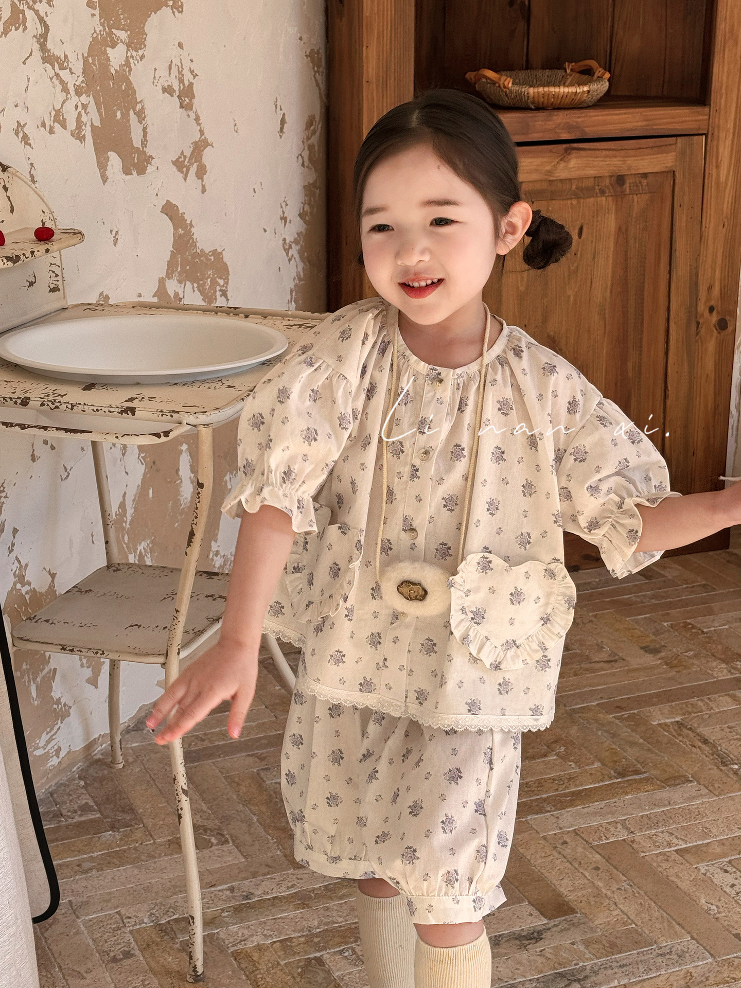 85496 여자 새로운 여름 꽃 목회 스타일 신선한 레이스 달콤한 홈 옷 잠옷 세트 두 조각스토어 가기