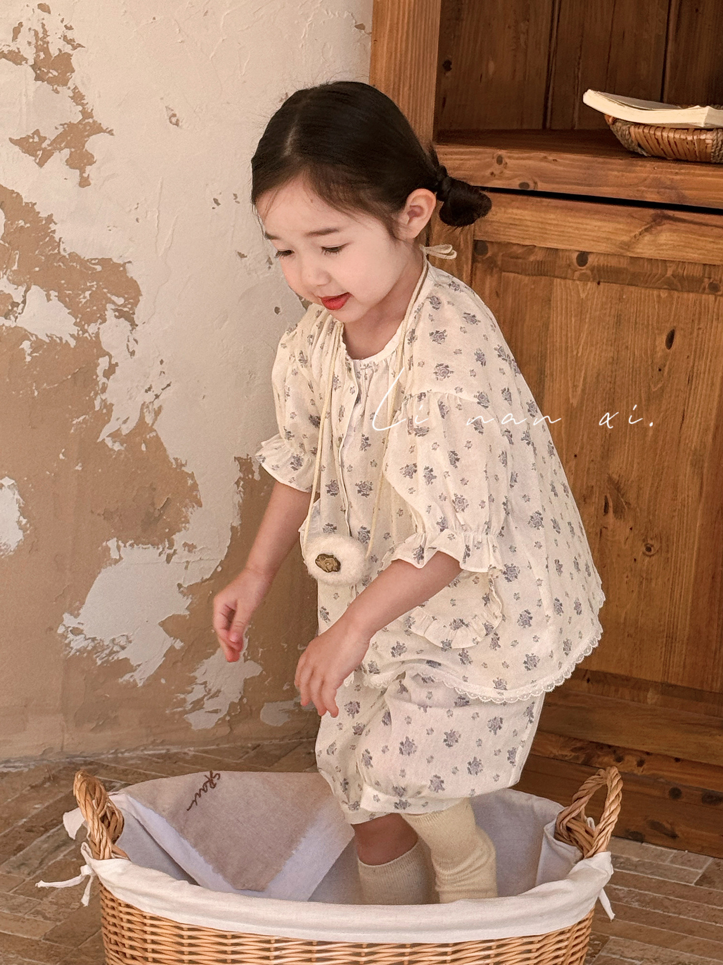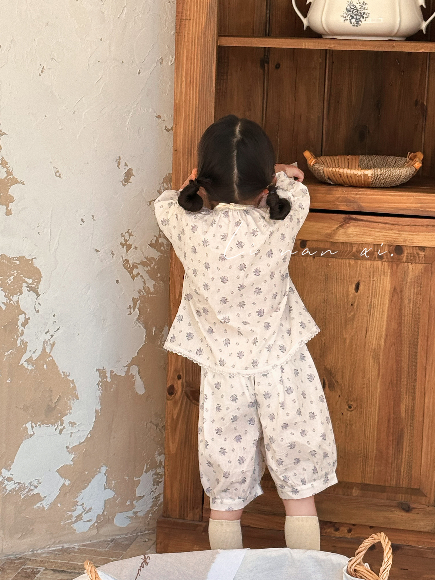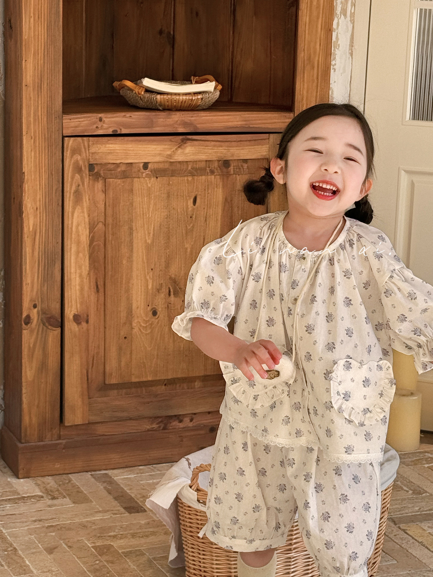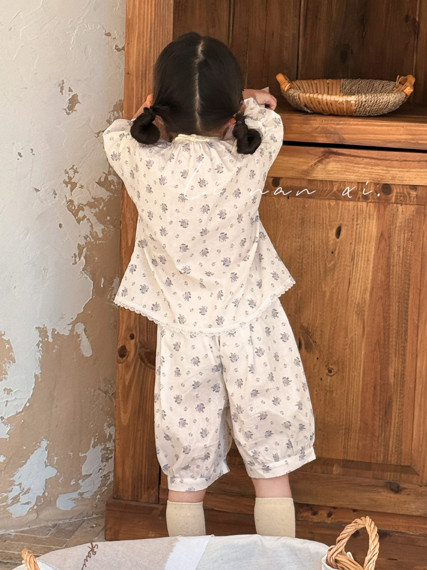 85496 여자 새로운 여름 꽃 목회 스타일 신선한 레이스 달콤한 홈 옷 잠옷 세트 두 조각스토어 가기