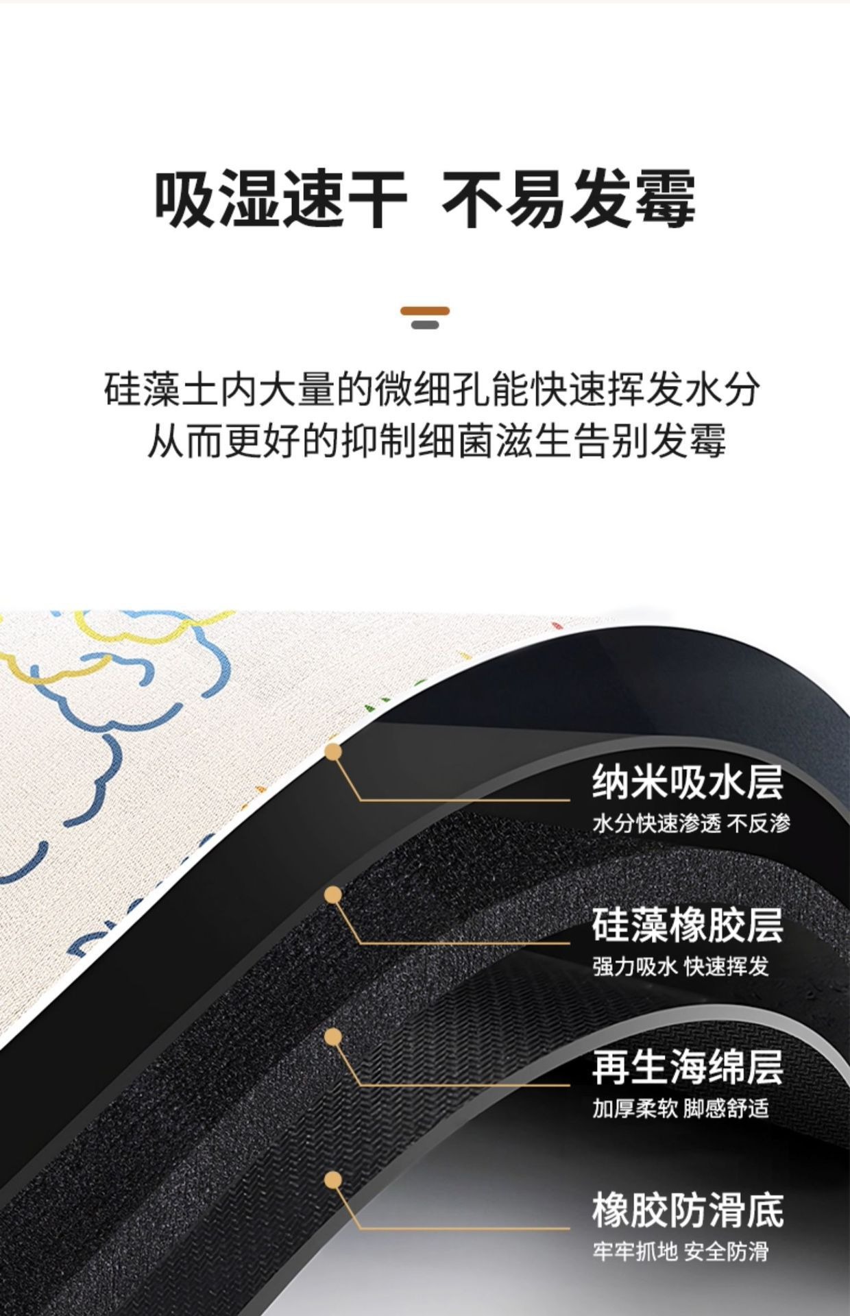 현대 Diatom 진흙 부드러운 바닥 매트 욕실 흡수성 빠른 건조 미끄럼 방지 낙하 방지 바닥 매트 화장실 문 매트