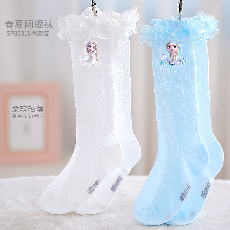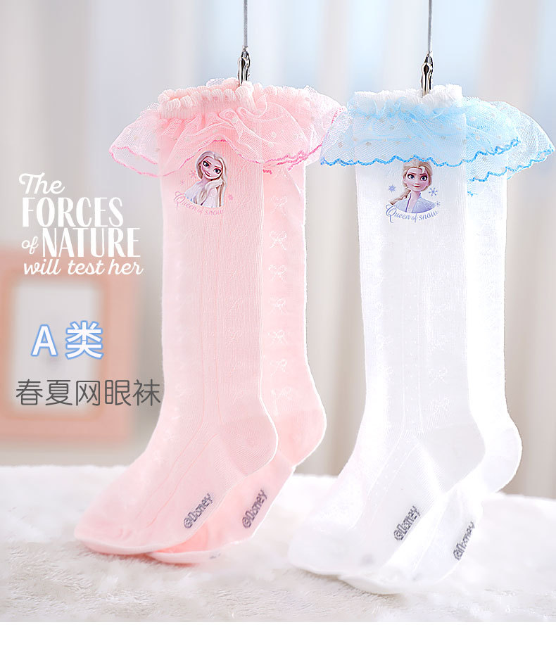 디즈니 어린이 종아리 양말 소녀 여름 얇은 레이스 클래스 A 소녀 스타킹 통기성 반 종아리 양말