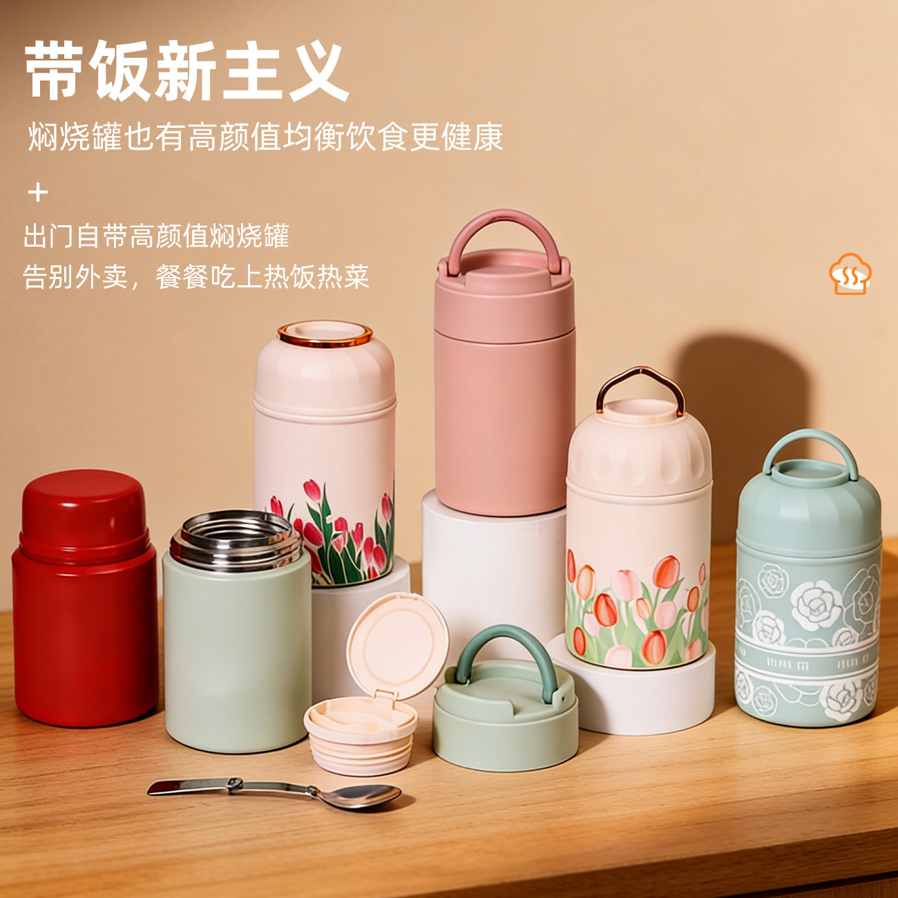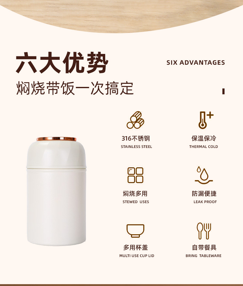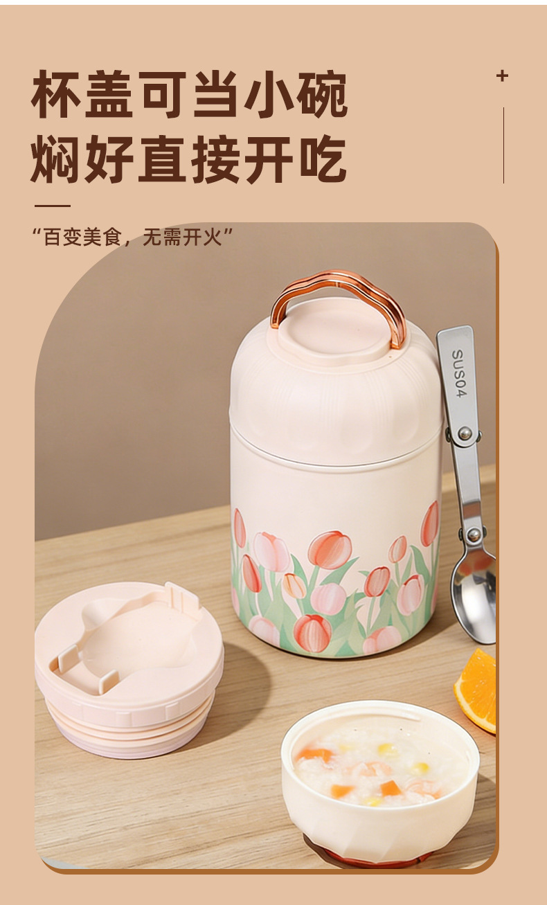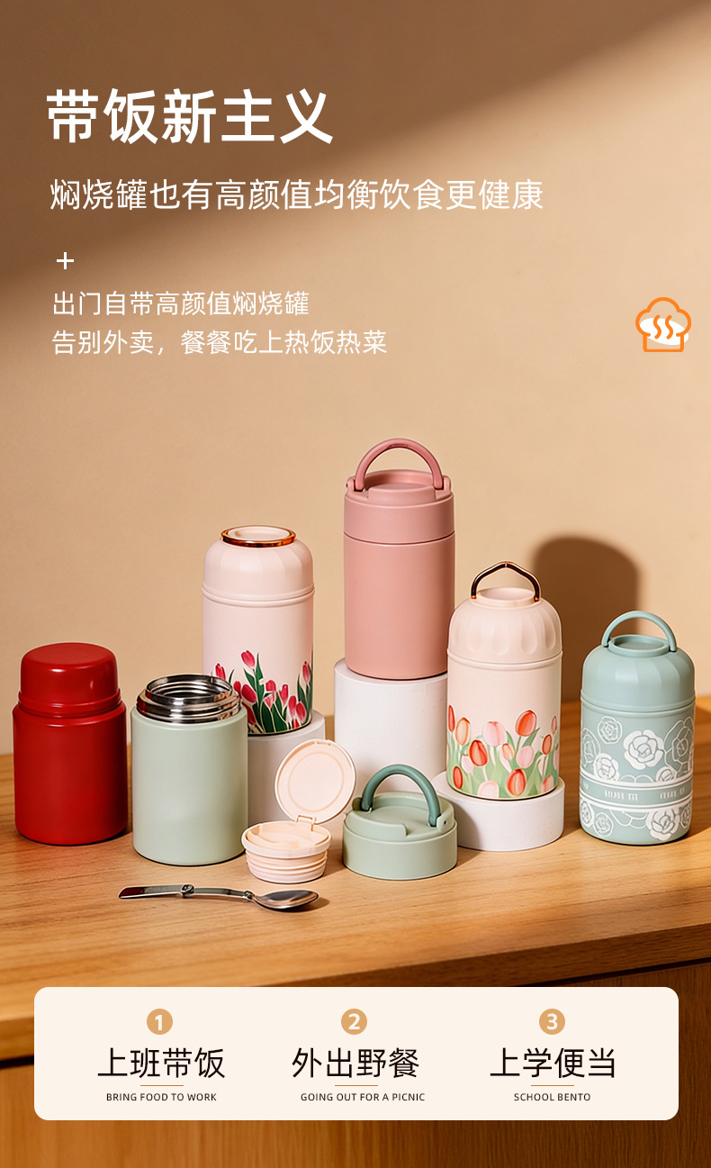 새로운 3D 인쇄 크리 에이 티브 스튜 비커 316 스테인레스 스틸 절연 컵 스푼 휴대용 스튜 냄비 절연 도시락 상자스토어 가기