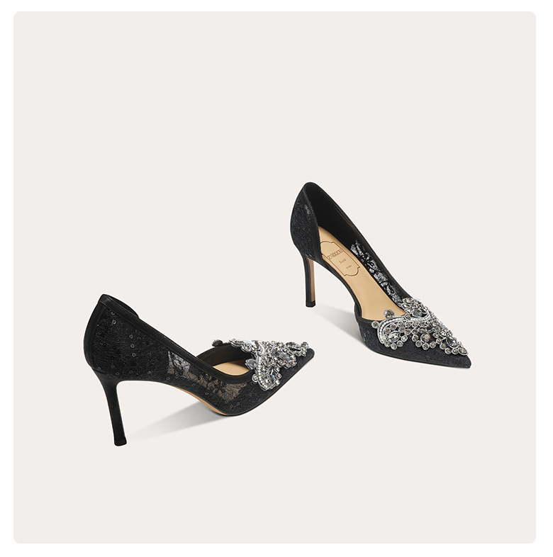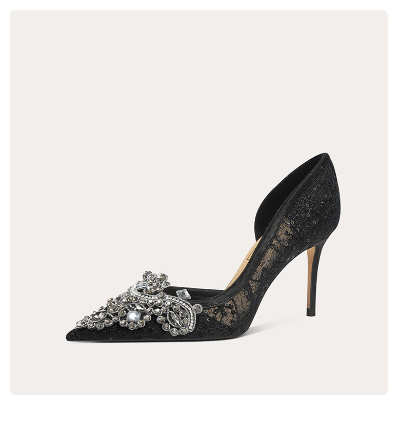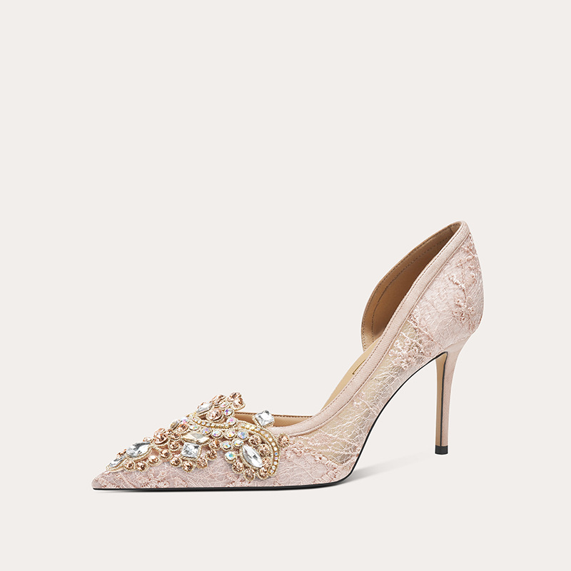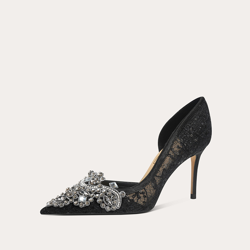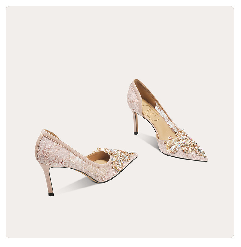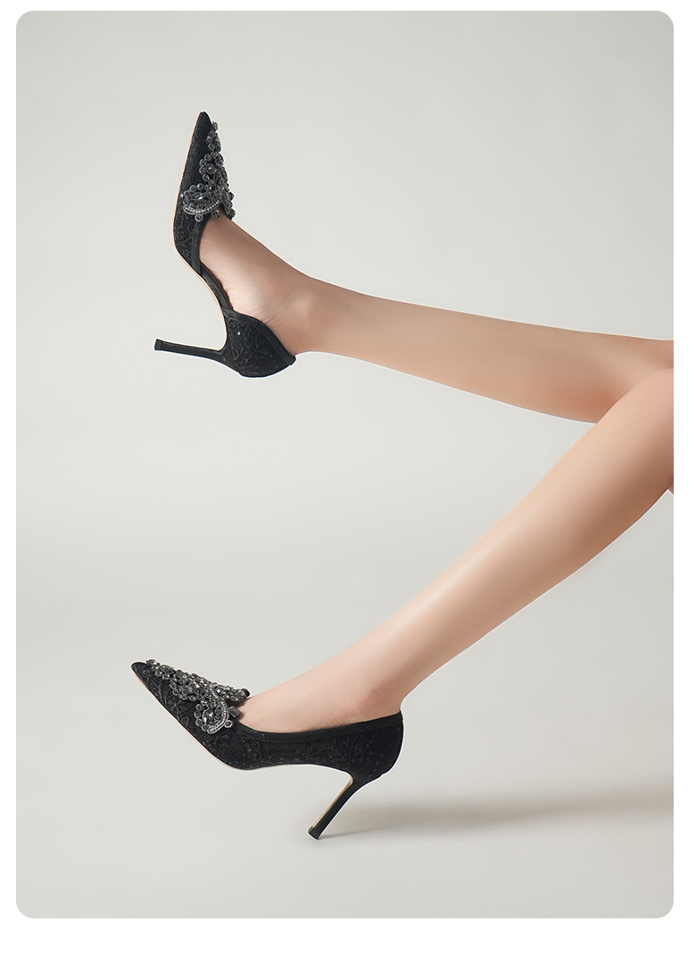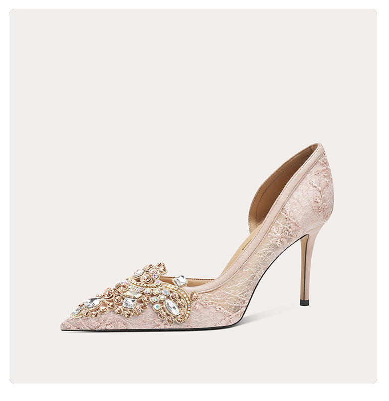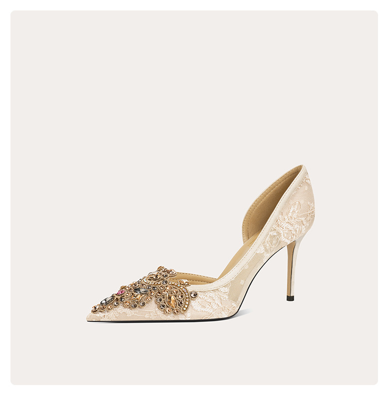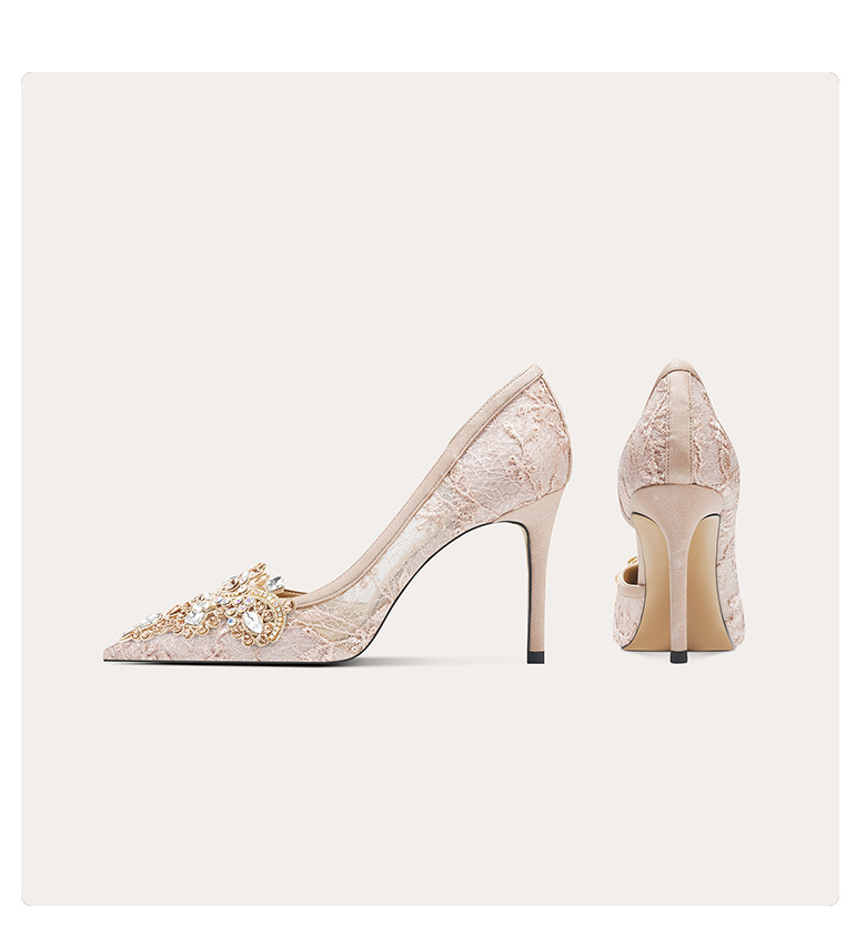 708-A45 프랑스 우아한 여성용 샌들 피곤하지 않은 발 하이힐 레이스 사이드 빈 여성 신발 인터넷 유명 파티 신발스토어 가기