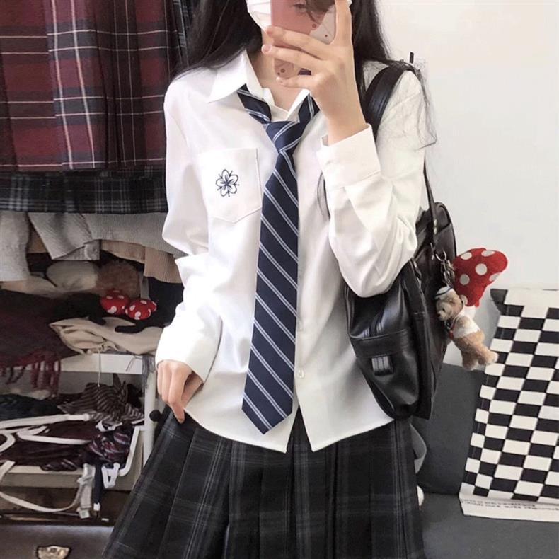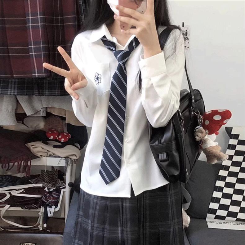 JK 셔츠 대학 스타일 일본식 긴팔 자수 셔츠 세련되고 다재다능한 달콤한 학교 스타일 신선한 루즈 탑 여성용