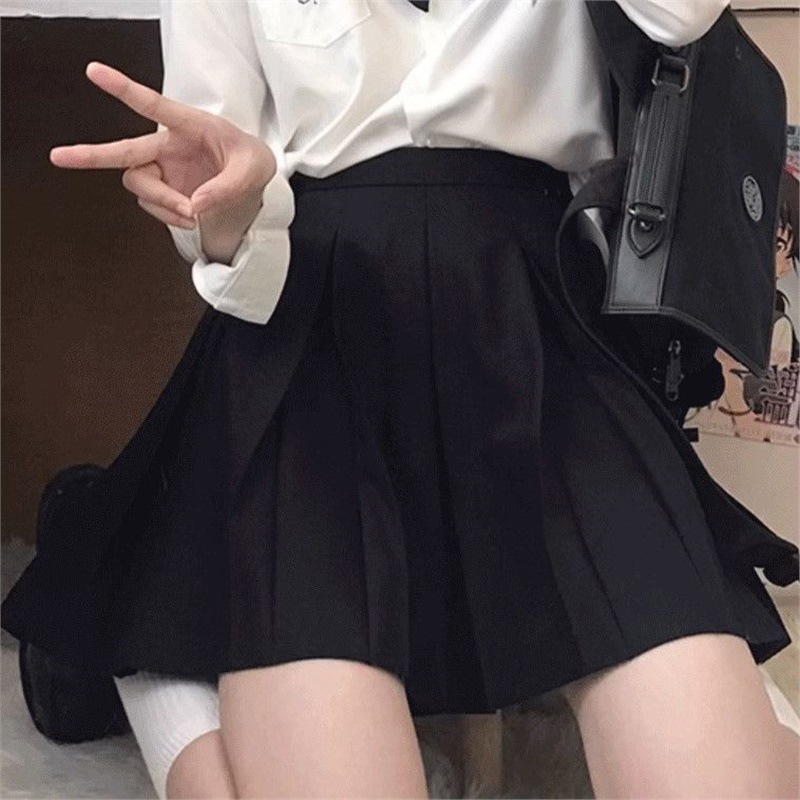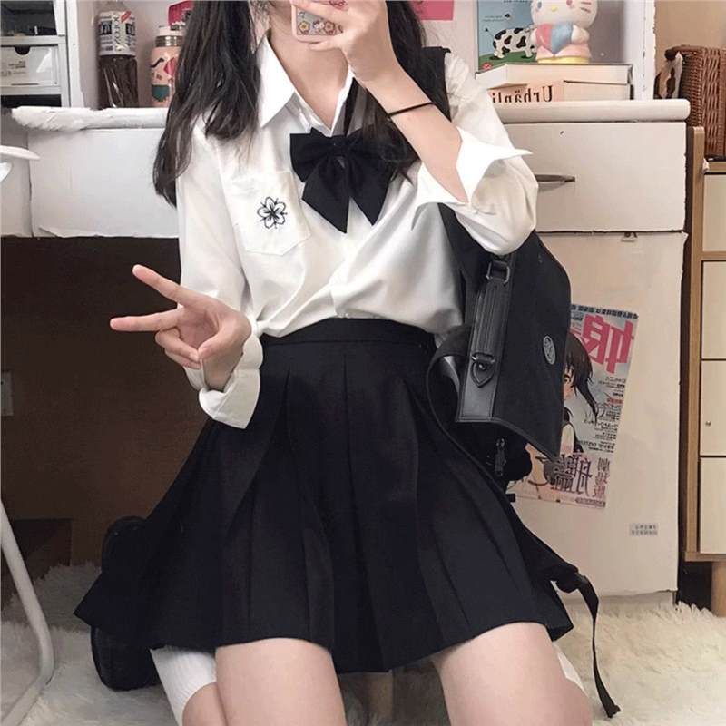 • 사쿠라 화이트 긴팔 + 블랙 스커트 + 블랙 타이 슈트