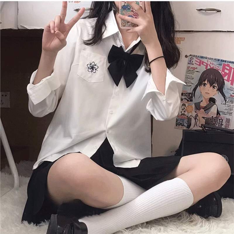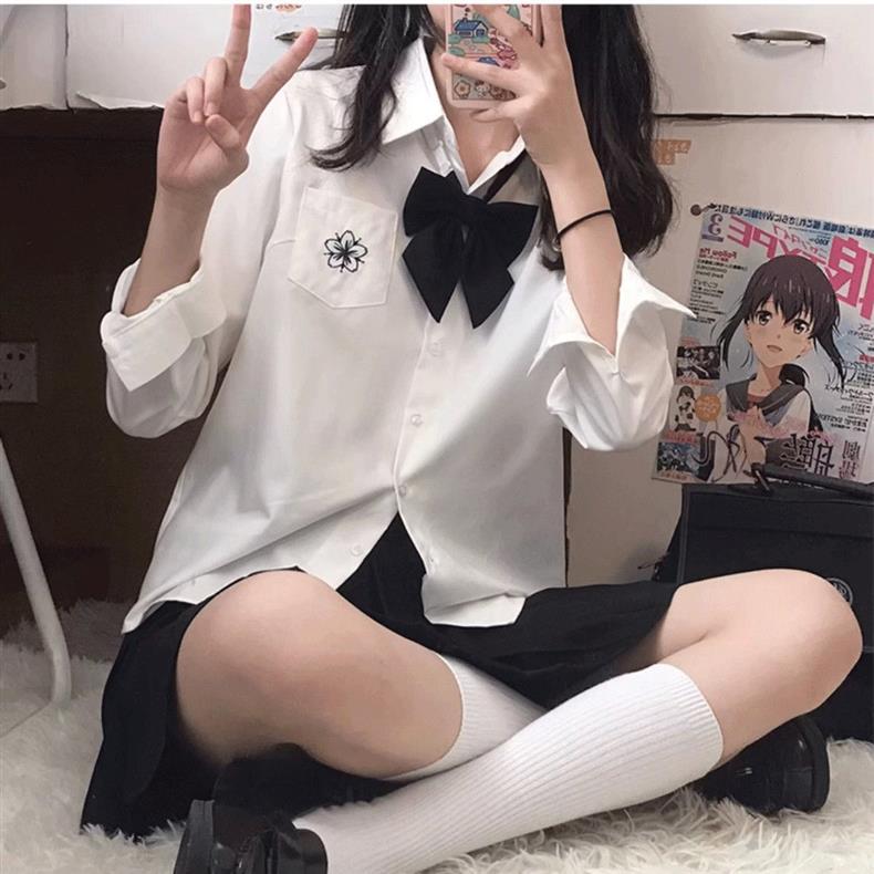 JK 셔츠 대학 스타일 일본식 긴팔 자수 셔츠 세련되고 다재다능한 달콤한 학교 스타일 신선한 루즈 탑 여성용스토어 가기
