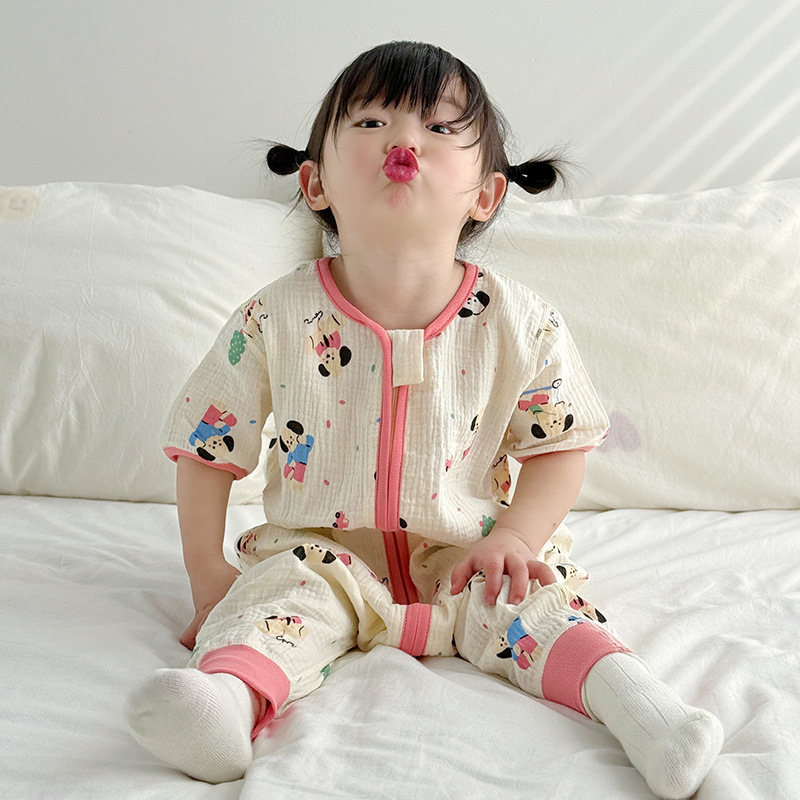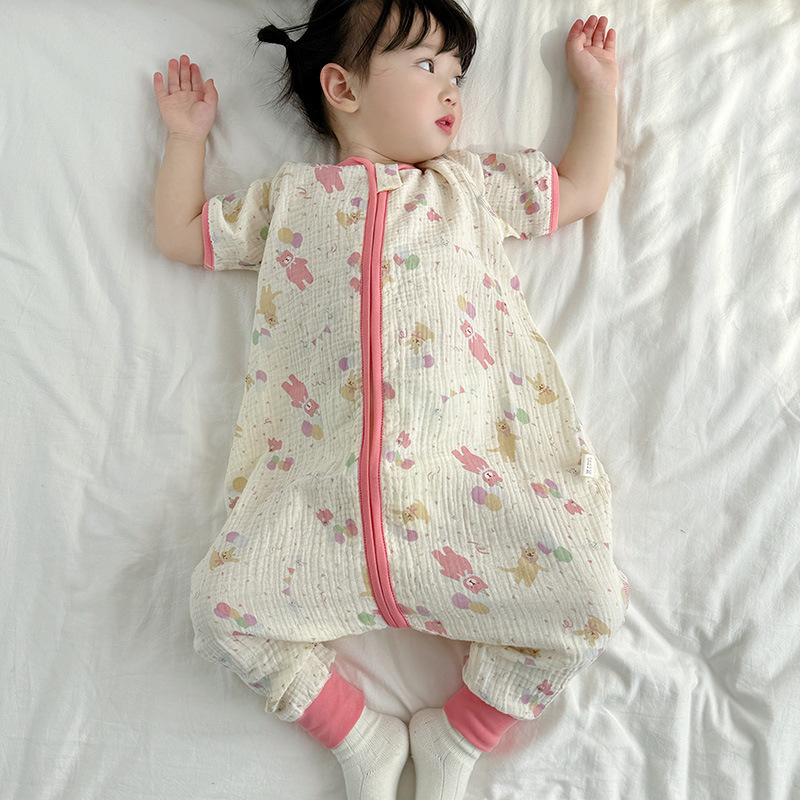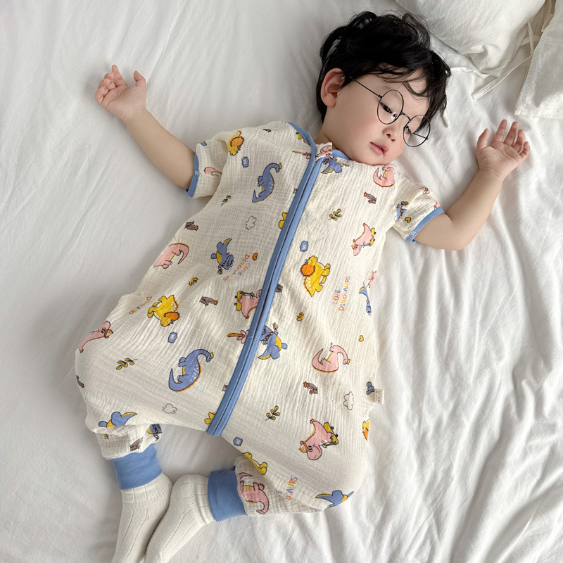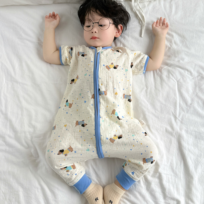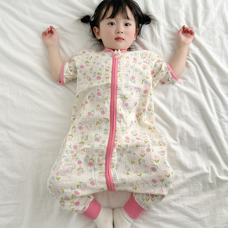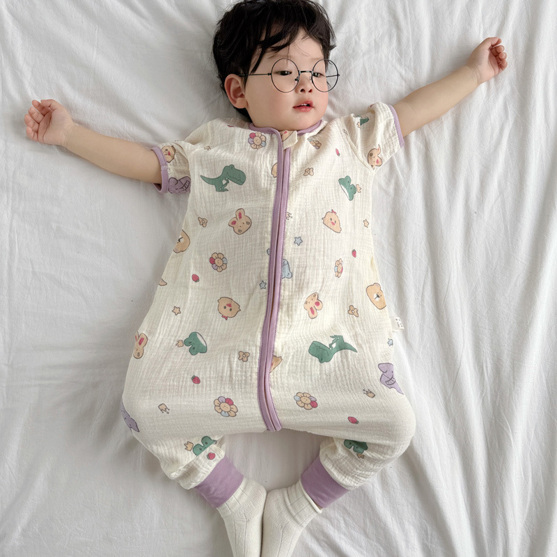 Tongxinfen 아기 점프 슈트 어린이 침낭 여름 얇은 순수 코튼 아기 소년 안티 킥 이불 잠옷 여성용 에어컨 옷
