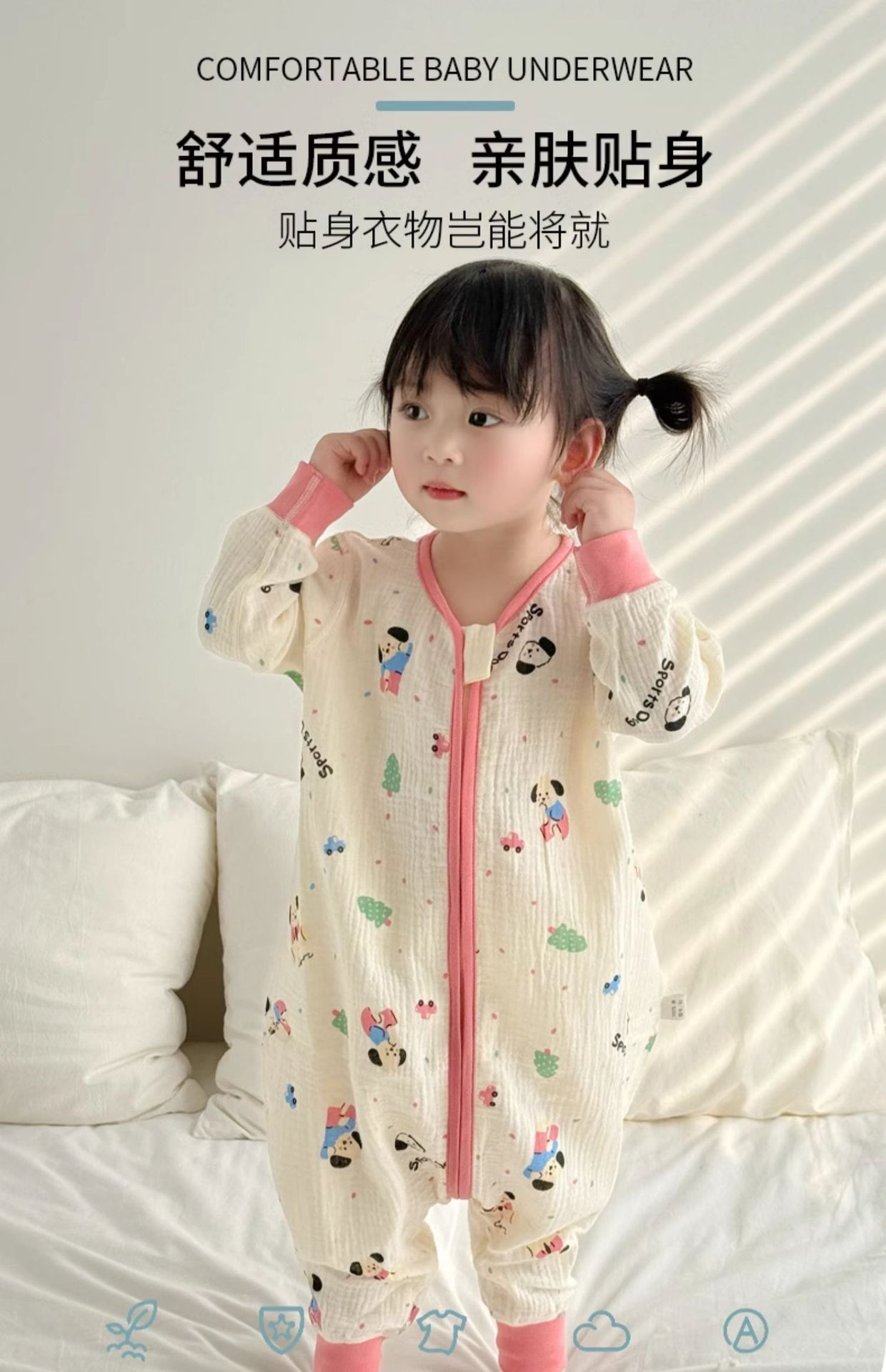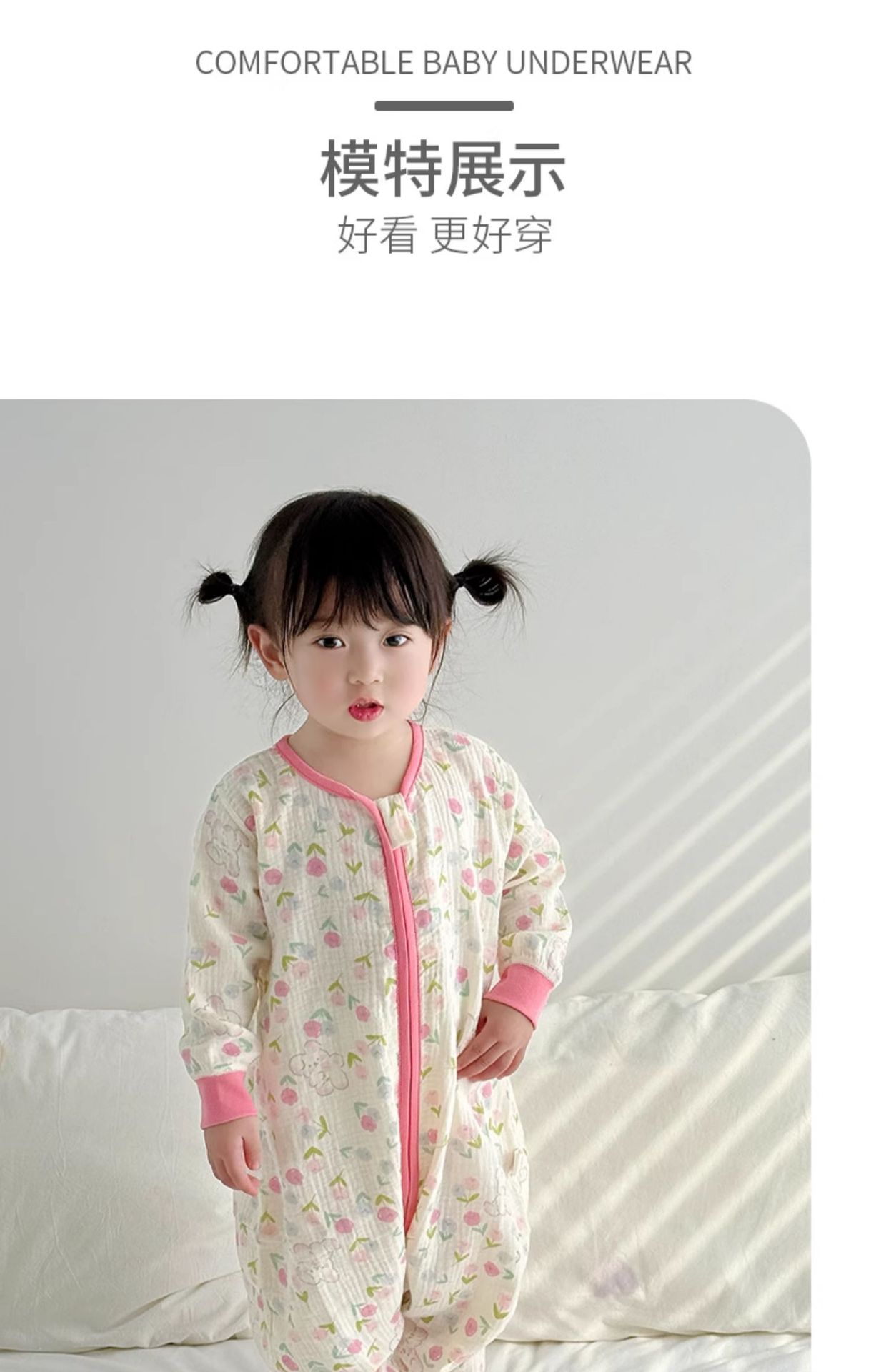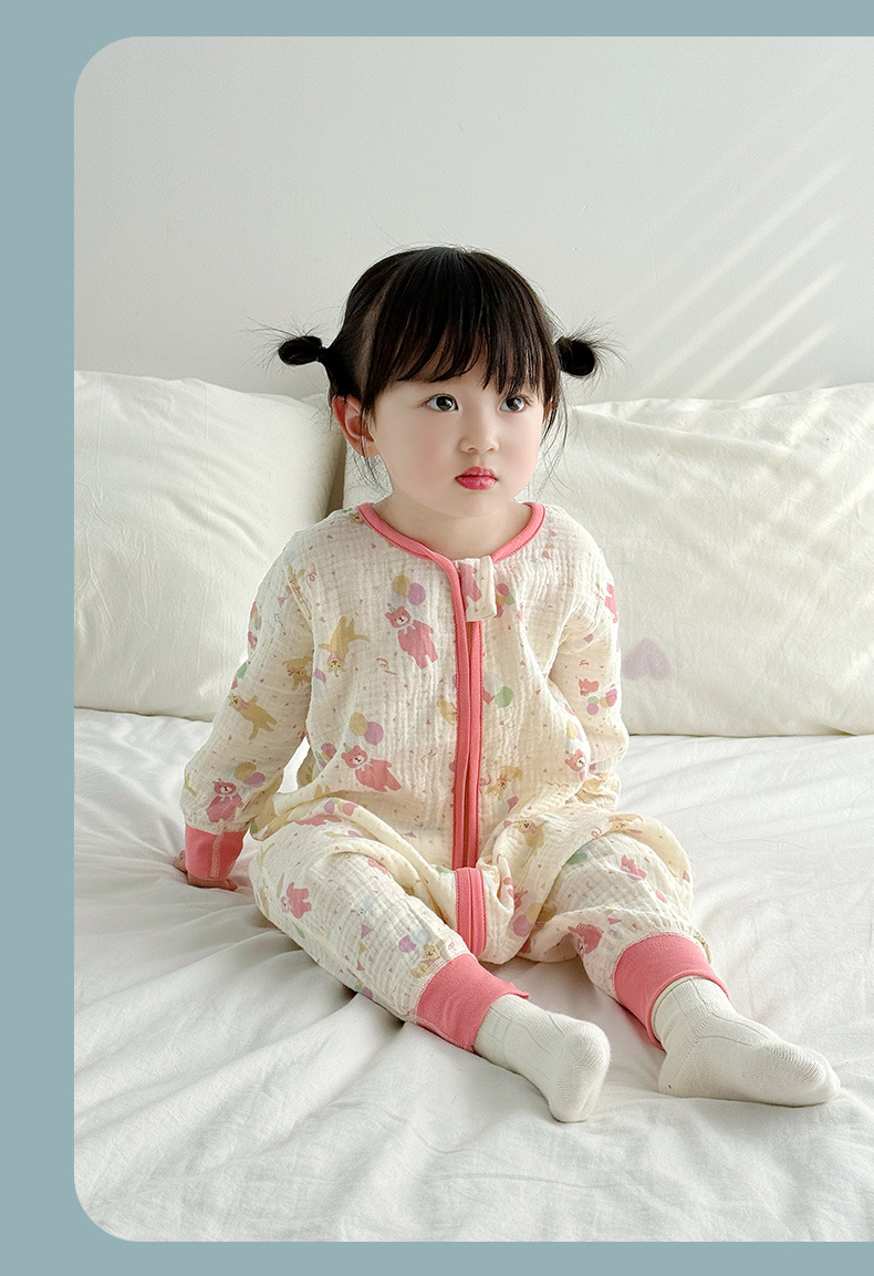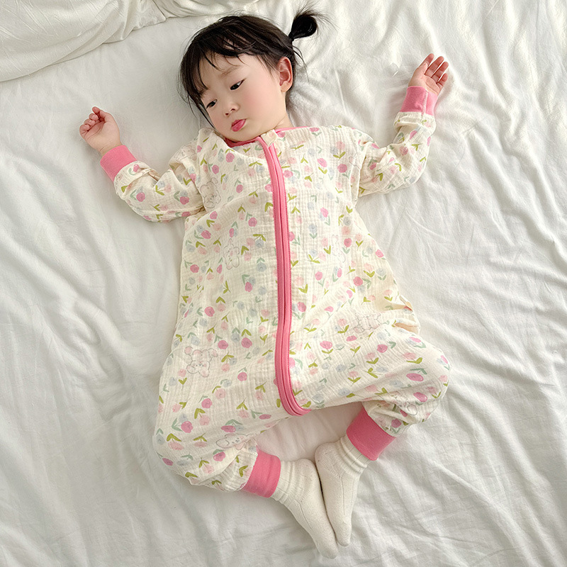 Tongxinfen 아기 점프 슈트 어린이 침낭 여름 얇은 순수 코튼 아기 소년 안티 킥 이불 잠옷 여성용 에어컨 옷