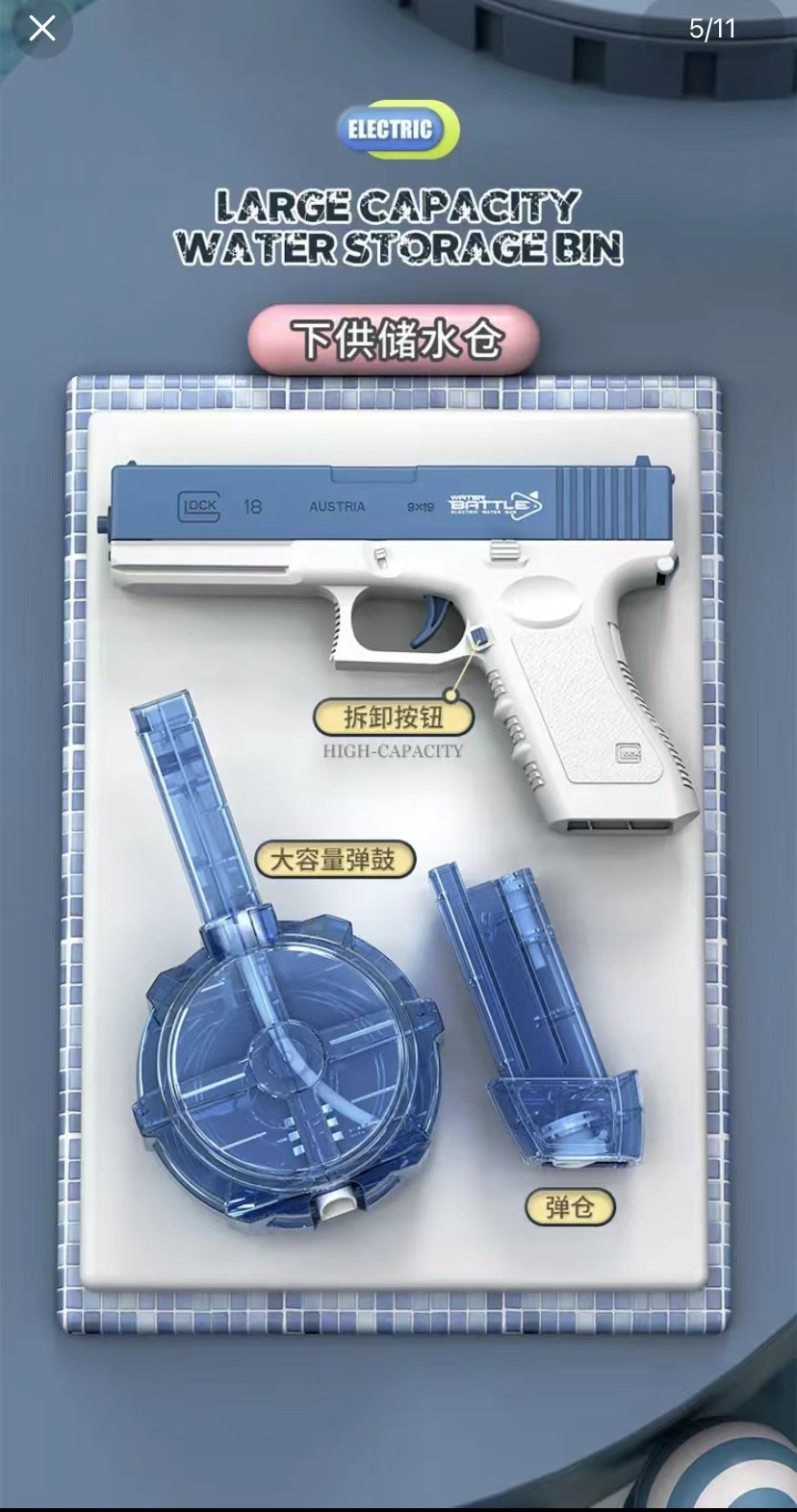 • [매거진 2개 포함] 블루 글록 소형 물총 116ML