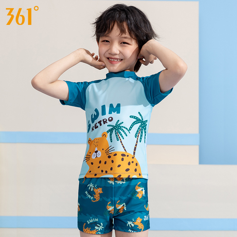 361 ° 어린이 수영복 소년 및 중년 어린이 분할 자외선 차단 훈련 소년 수영복 및 수영복 세트스토어 가기