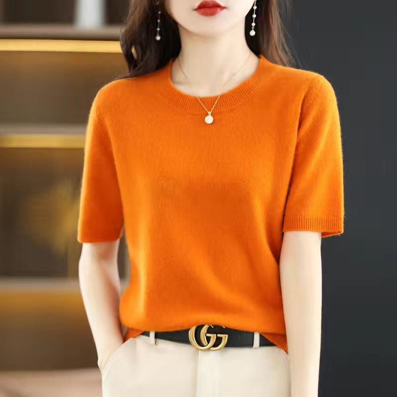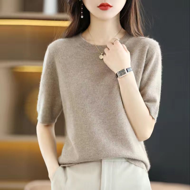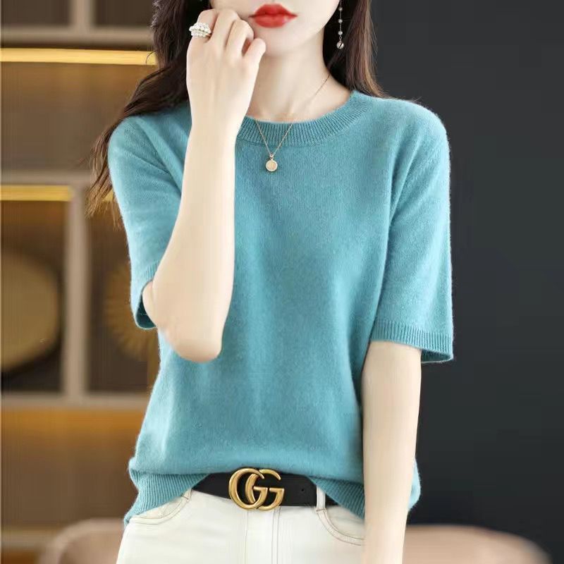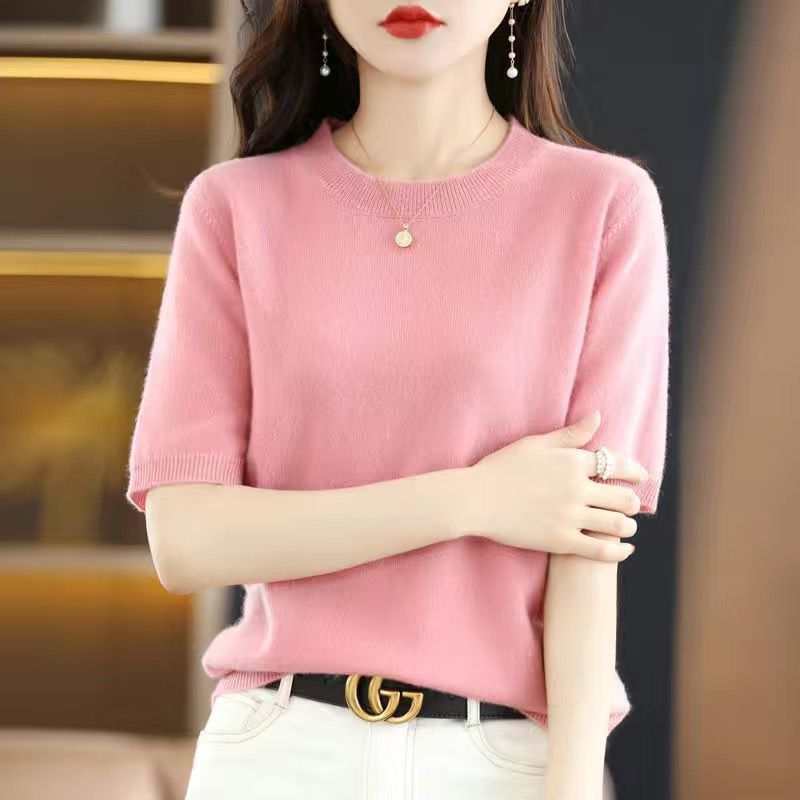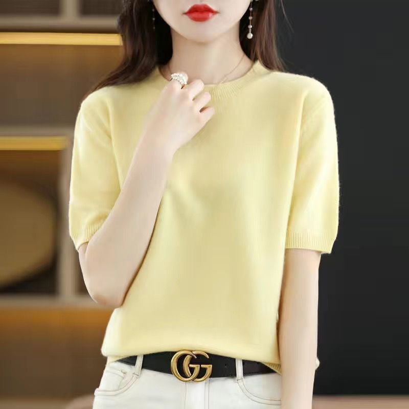 2025 봄, 가을 새로운 반팔 여성 스웨터 느슨한 짧은 반팔 바닥 스웨터 얇은 스웨터스토어 가기