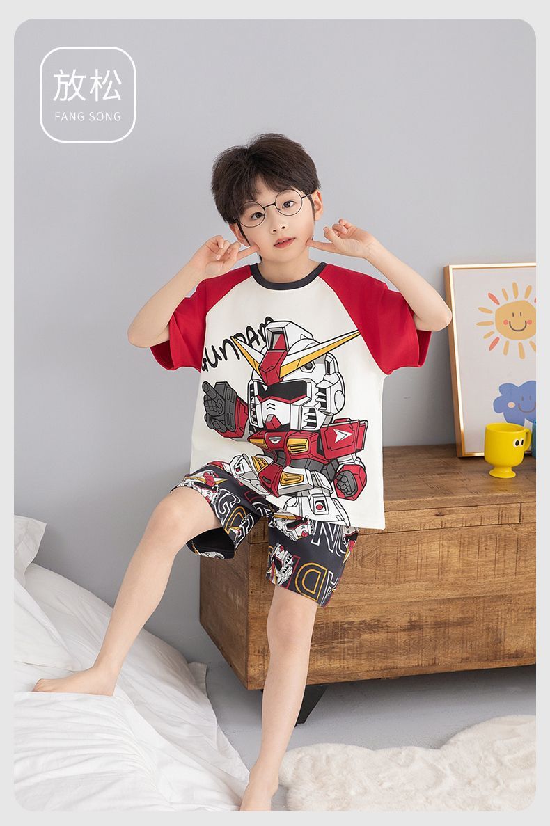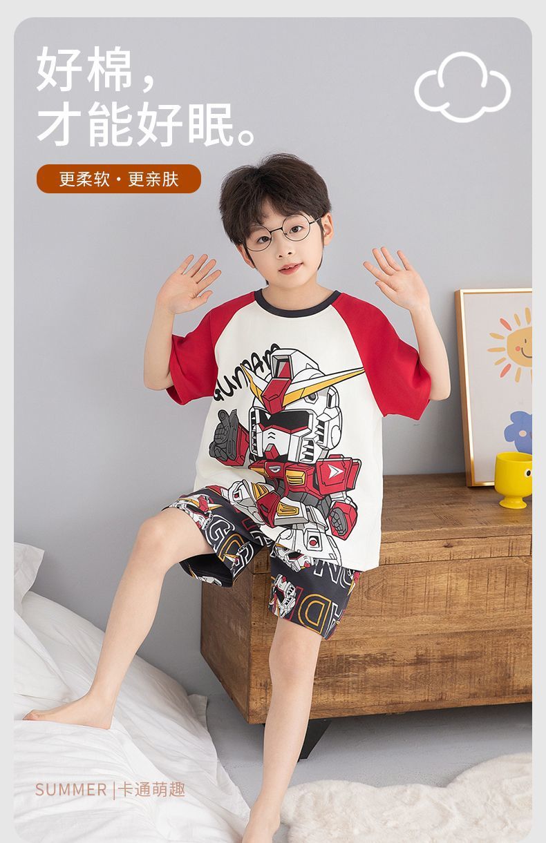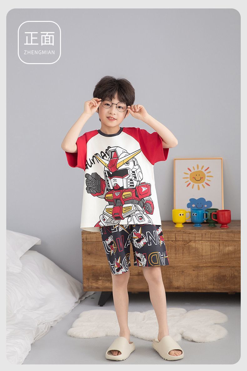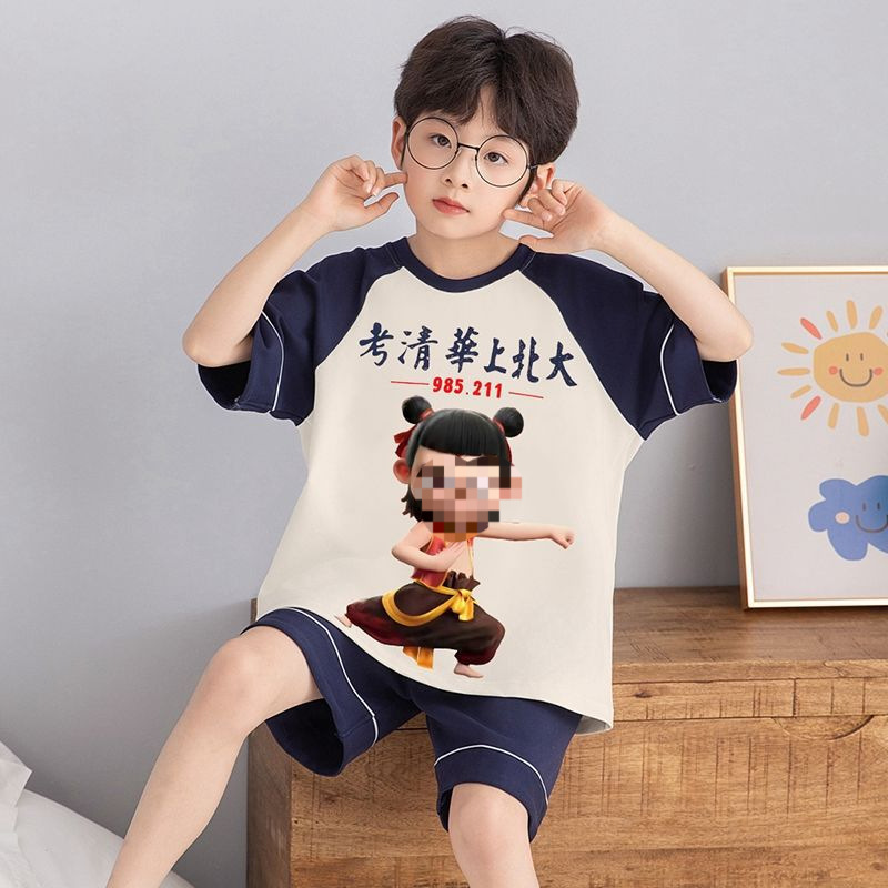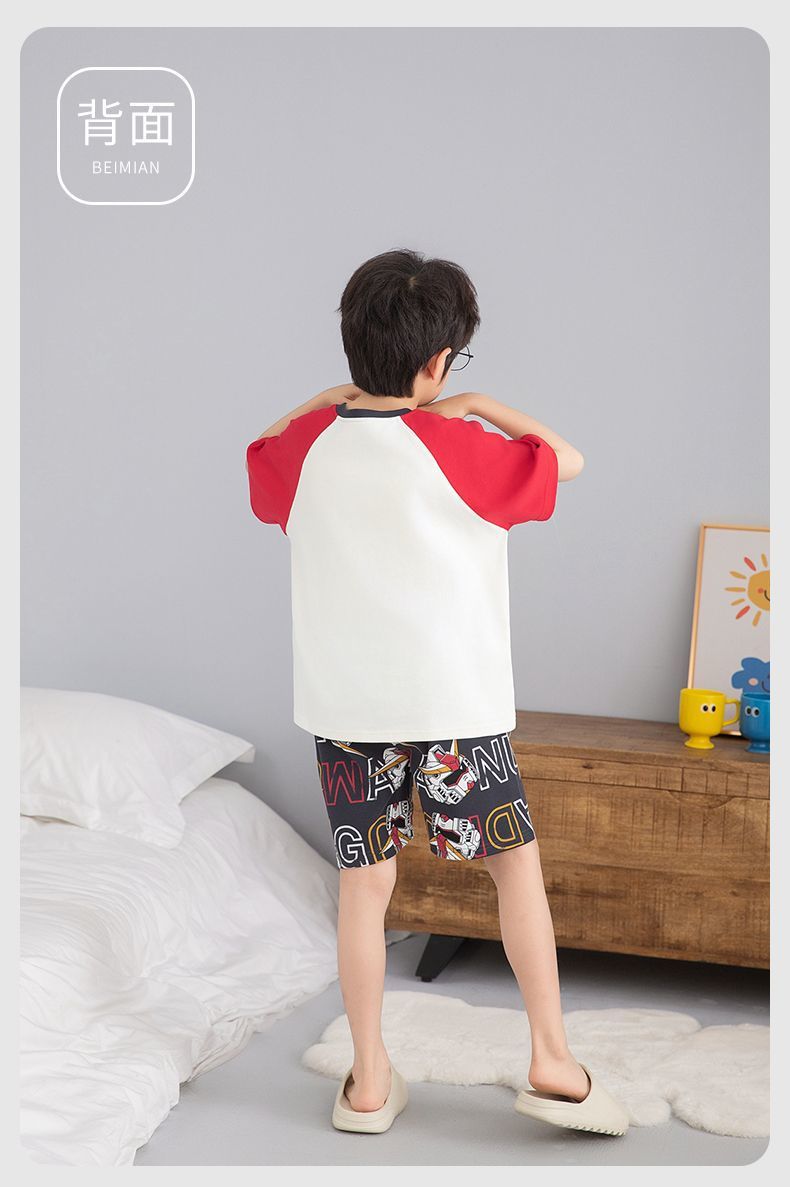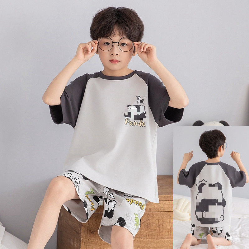 여름 반팔 소년 잠옷 순면 얇은 중대형 어린이 잘 생긴 어린 소년 학생 청소년 가정 의류 세트스토어 가기