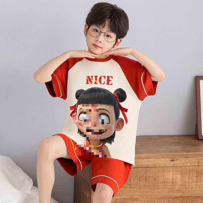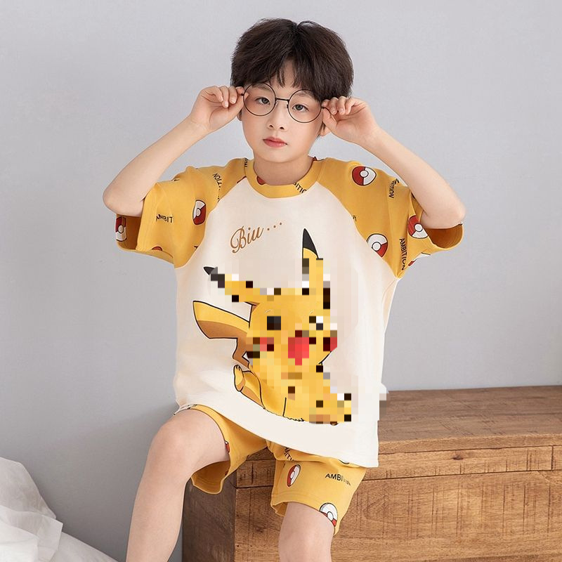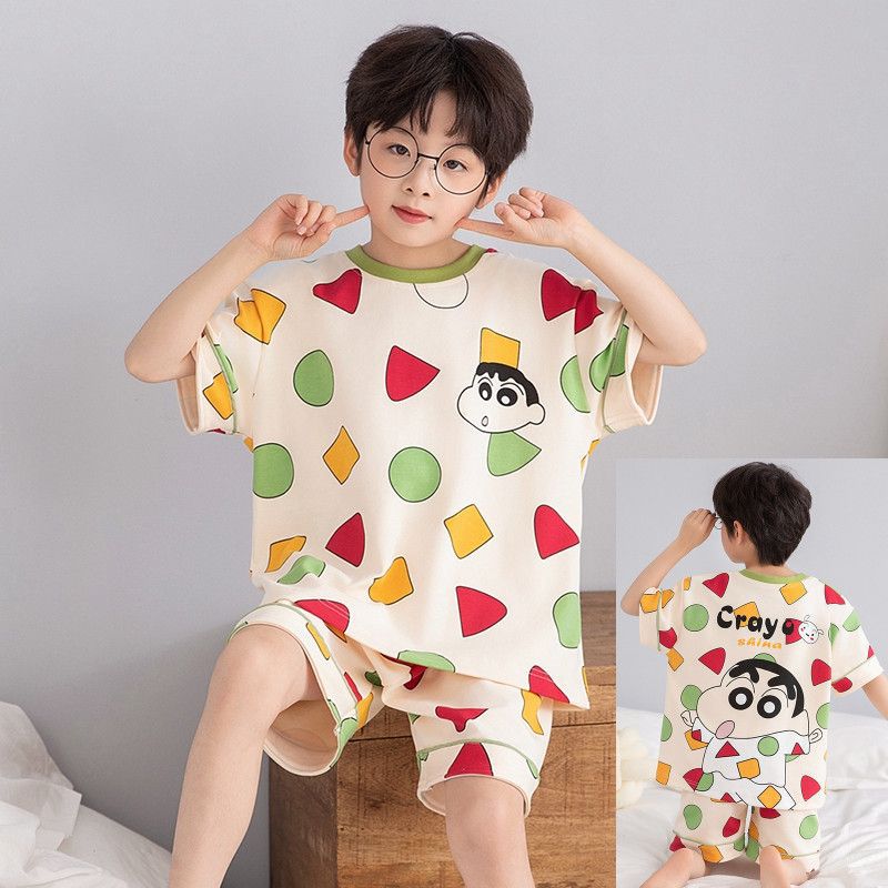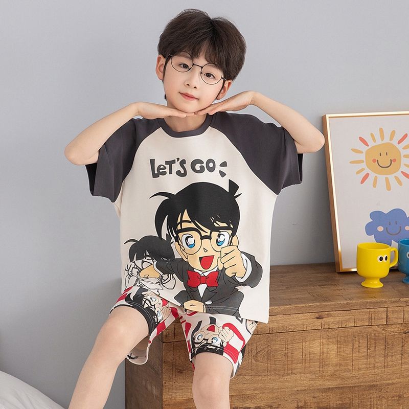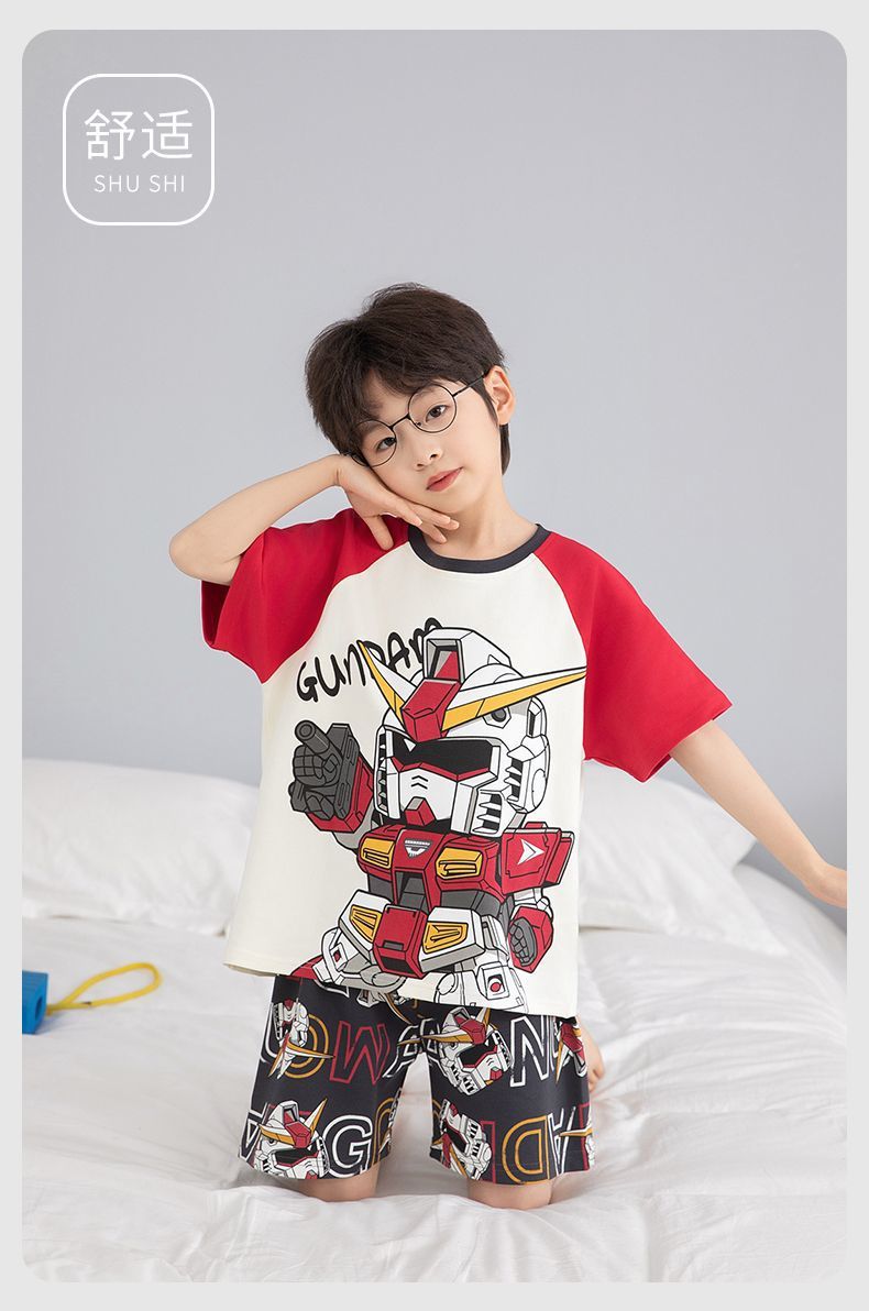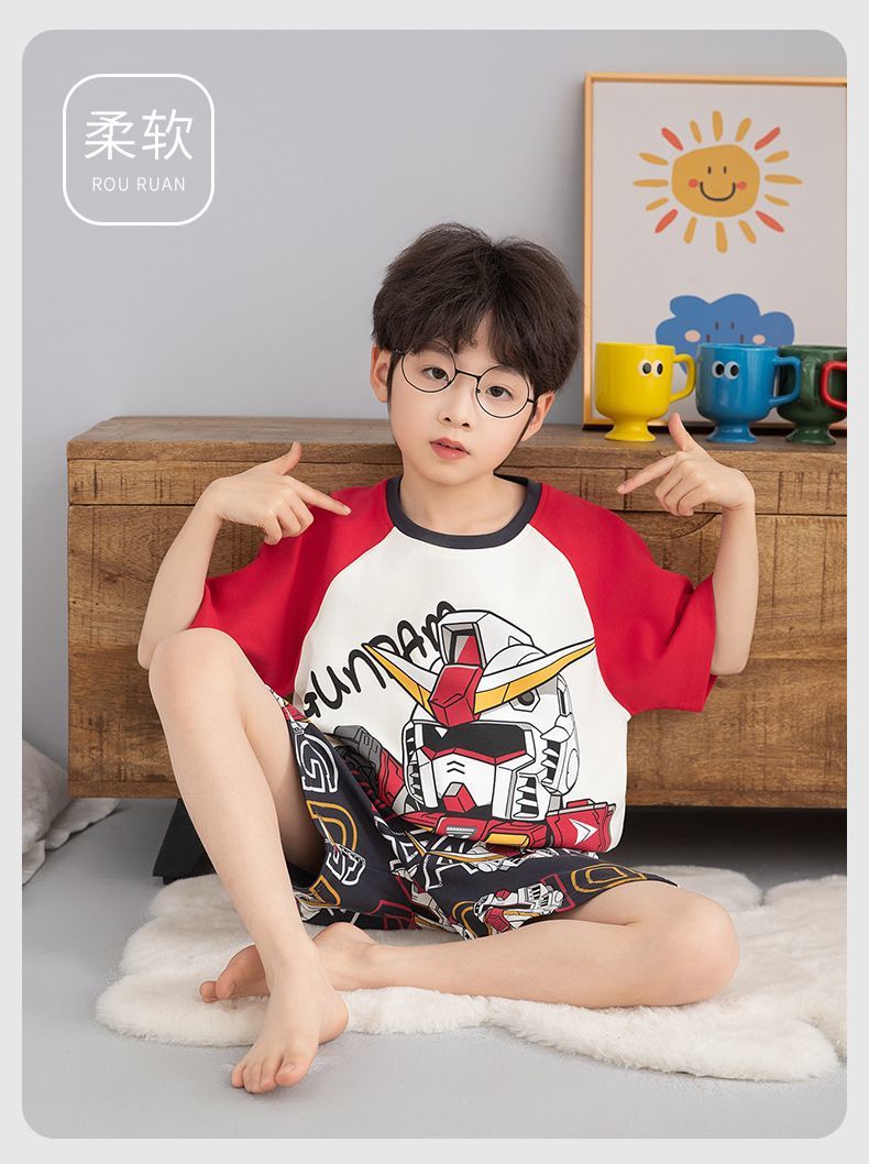 여름 반팔 소년 잠옷 순면 얇은 중대형 어린이 잘 생긴 어린 소년 학생 청소년 가정 의류 세트스토어 가기