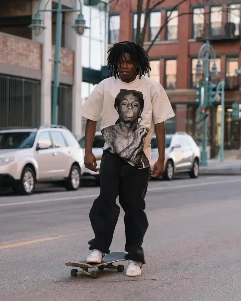 남성 티셔츠 Y2k 악기 인쇄 티셔츠 남성 여름 하라주쿠 거리 의류 클래식 면 캐주얼 짧은 소매 남성스토어 가기