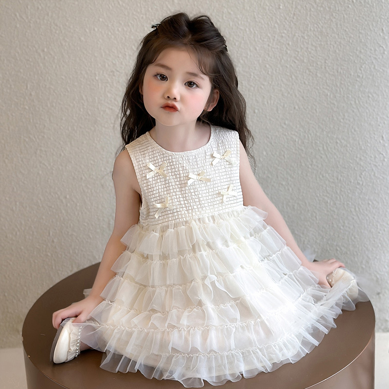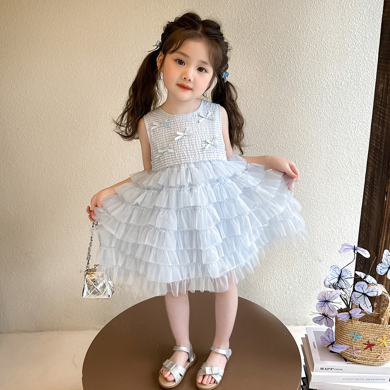 소녀의 원피스 여름 원피스 2025 새로운 스타일 어린이 퍼프 베일 원피스 공주 원피스 소녀의 여름 원피스