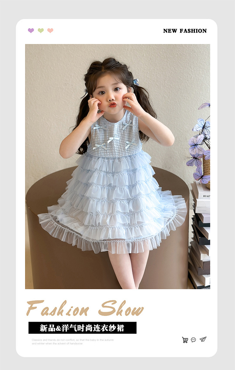 소녀의 원피스 여름 원피스 2025 새로운 스타일 어린이 퍼프 베일 원피스 공주 원피스 소녀의 여름 원피스스토어 가기