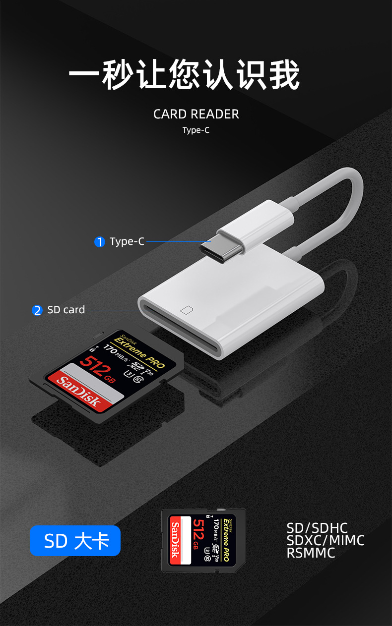 • Type-c 인터페이스 [TF 카드 SD 카드 USB 카드 읽기]