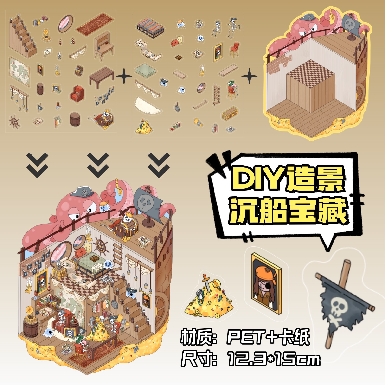 • ZJXL008 난파선 보물(페트 스티커 2개 + 장면 카드보드 1개 포함)