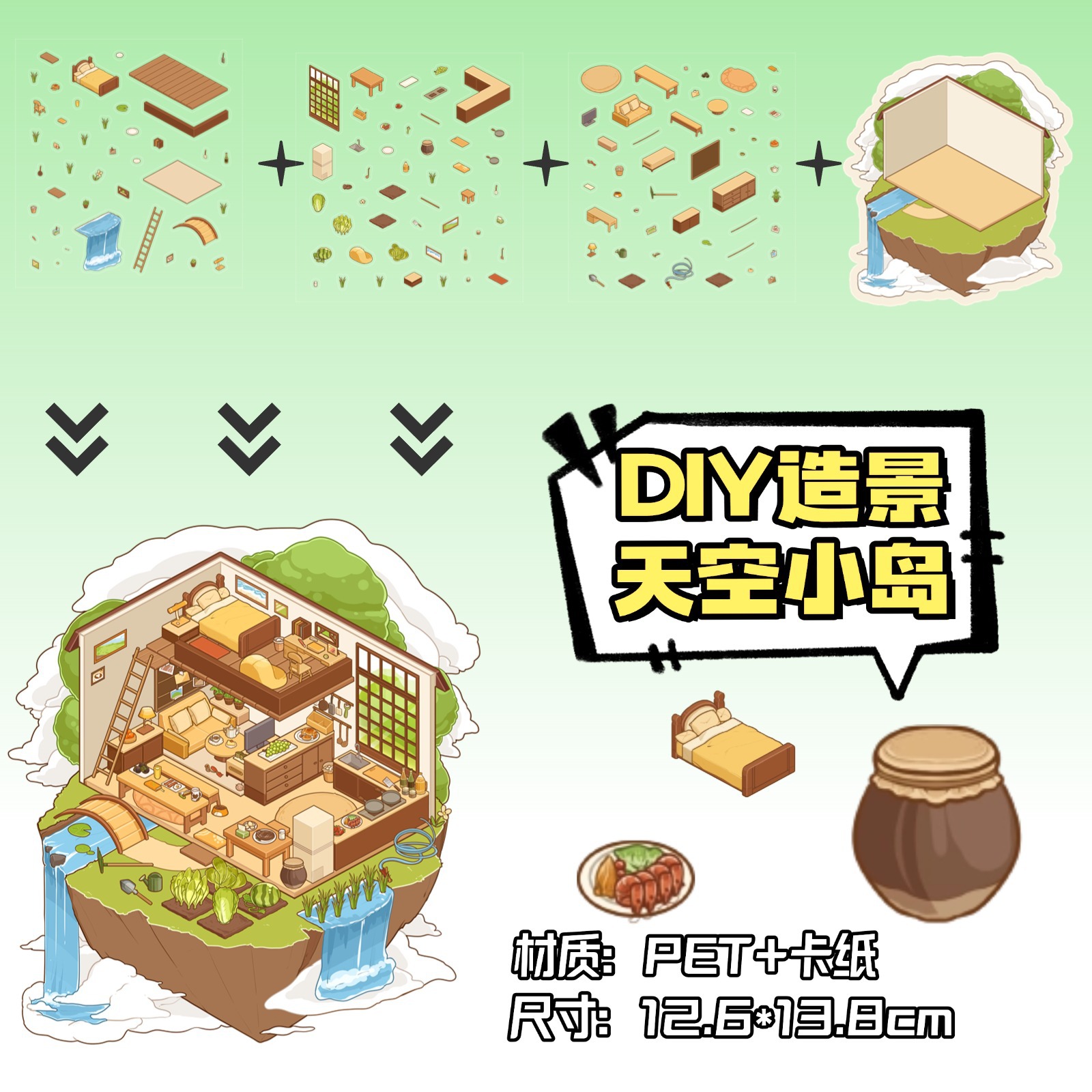 • ZJXL071 스카이 아일랜드 (PET 스티커 3장 + 배경 카드 1장 포함)