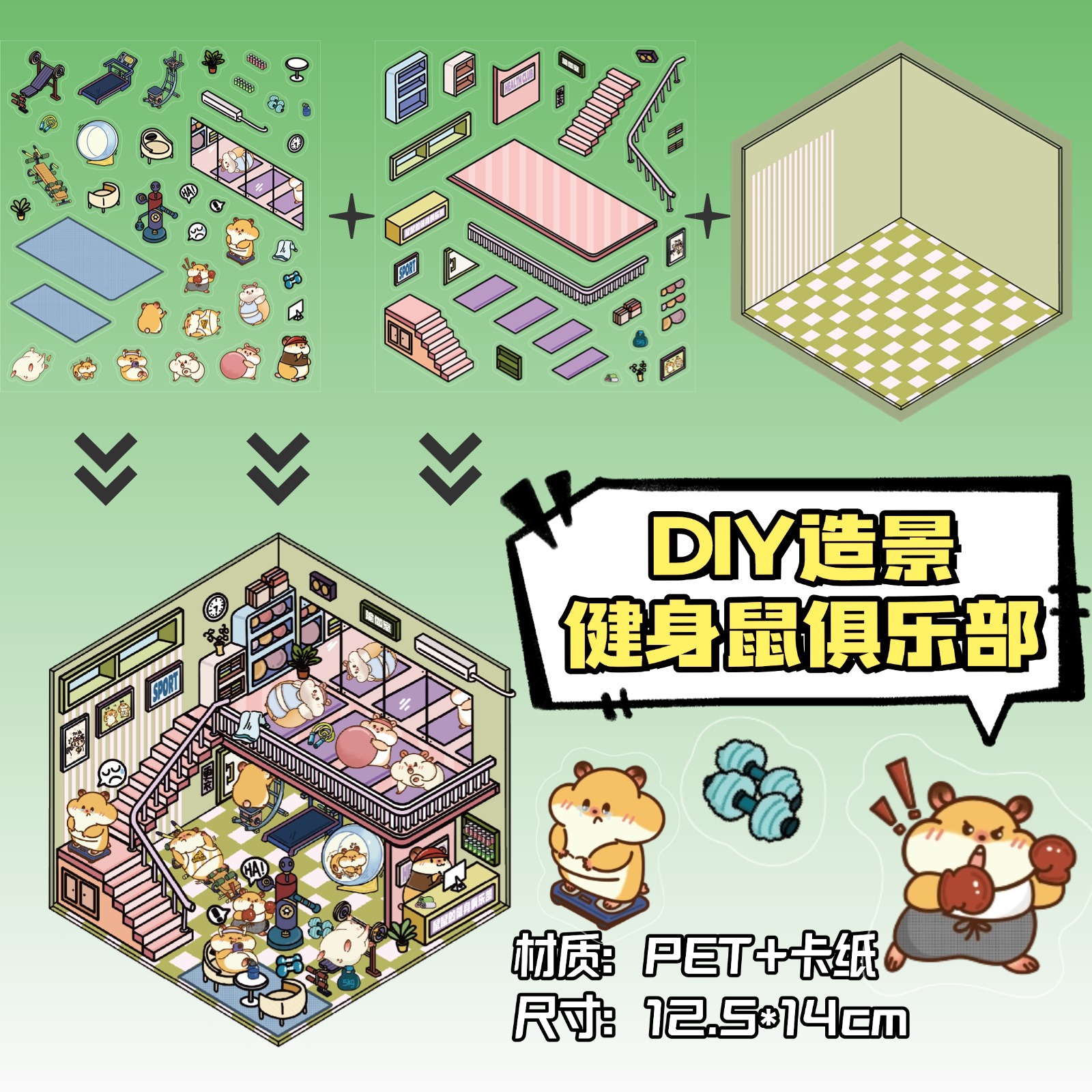 • ZJXL007 피트니스 마우스 클럽(PET 스티커 2개 + 장면 카드 1개 포함)