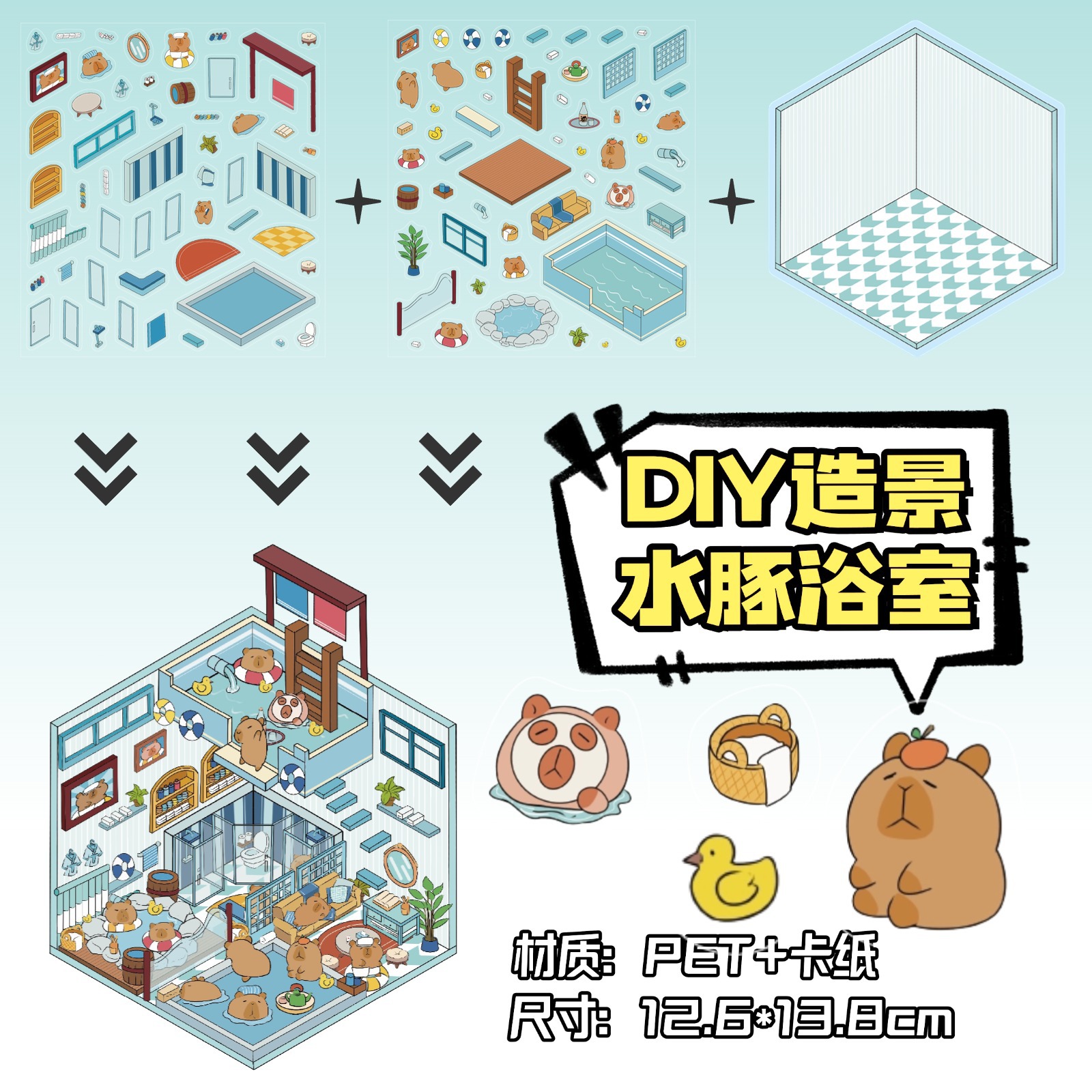• ZJXL045 카피바라 욕실 (PET 스티커 2장 + 배경 카드 1장 포함)